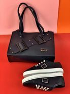 للنساء - حقيبة سوداء مع حذاء بحلقات معدنية