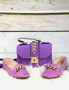 للنساء - حقيبة وحذاء باللون الأرجواني مع عقدة زخرفية