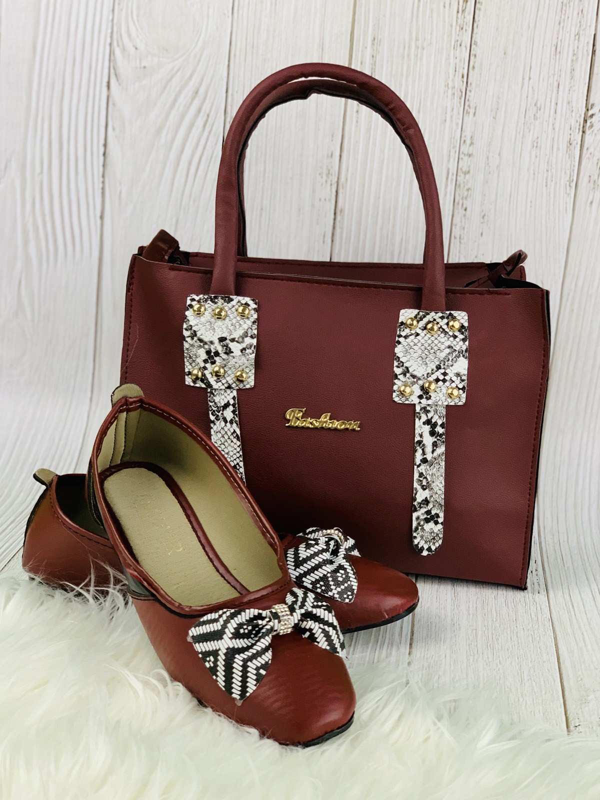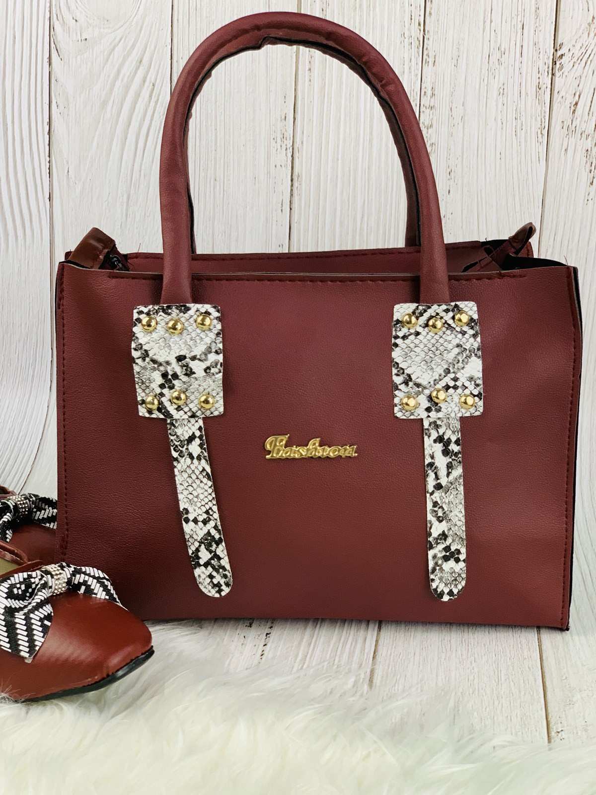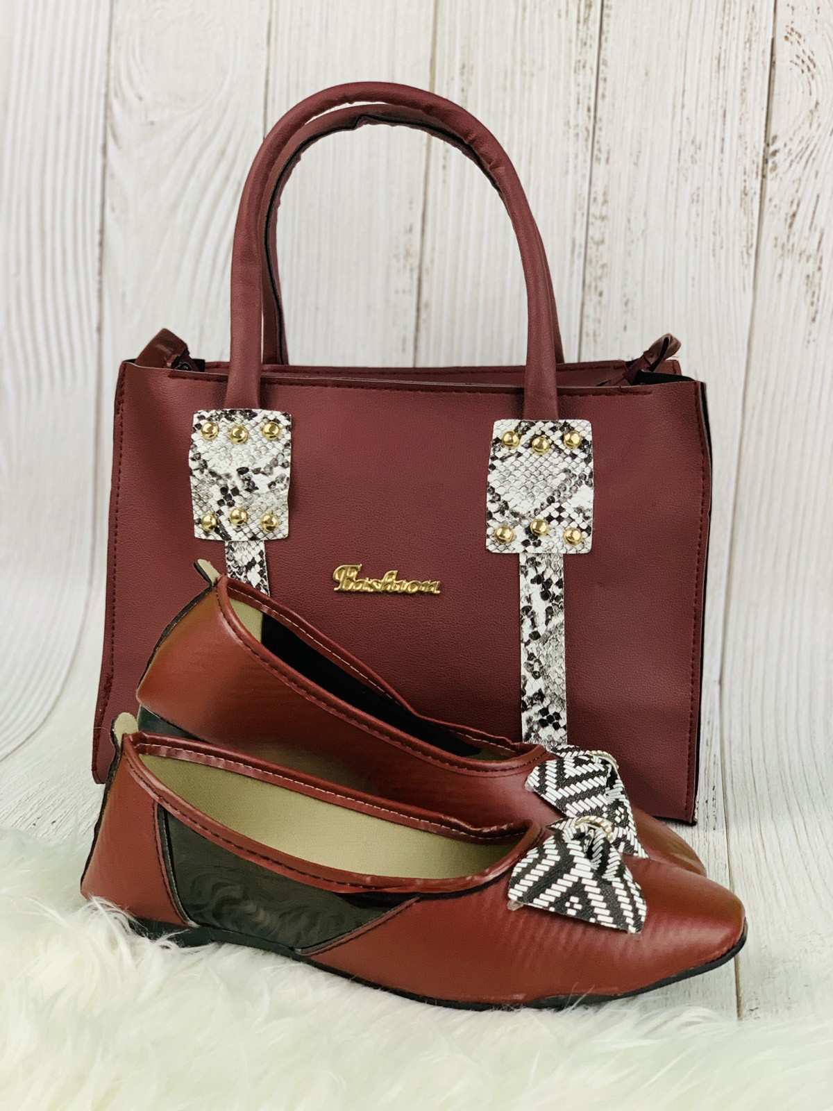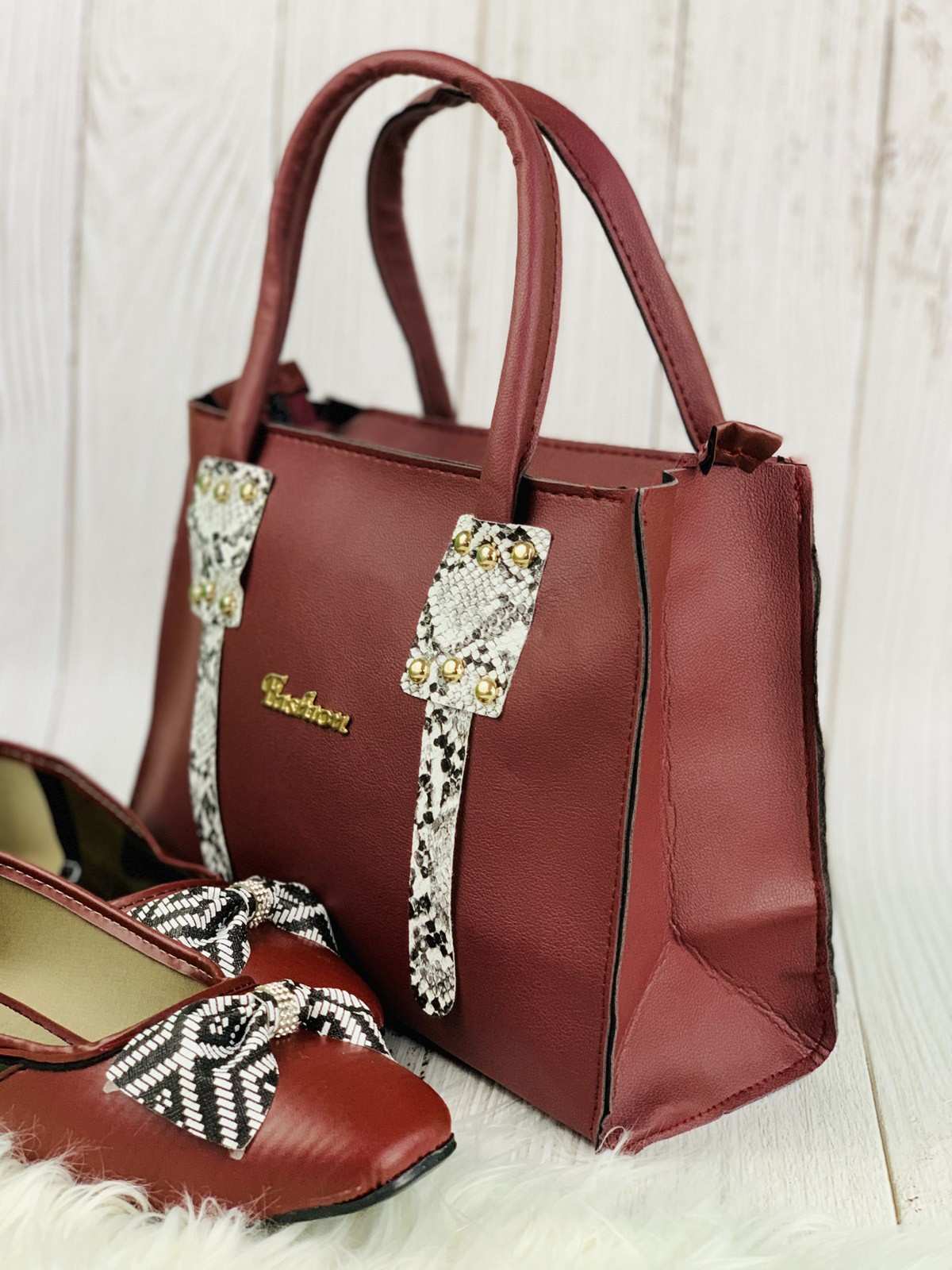 للنساء - حقيبة حمراء وحذاء بنمط الثعبان