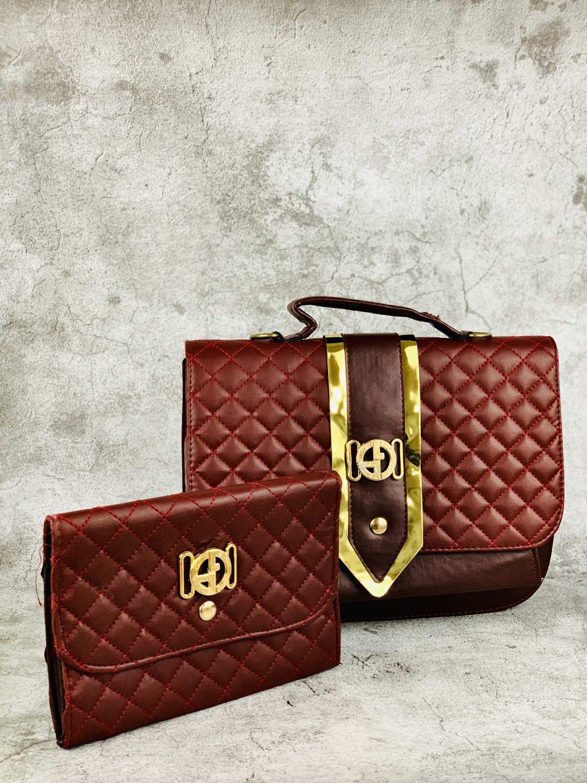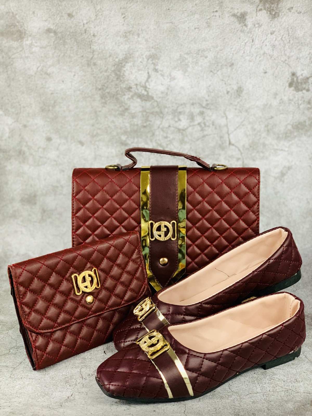 للنساء - حقيبة وأحذية ومحفظة بنية مختومة