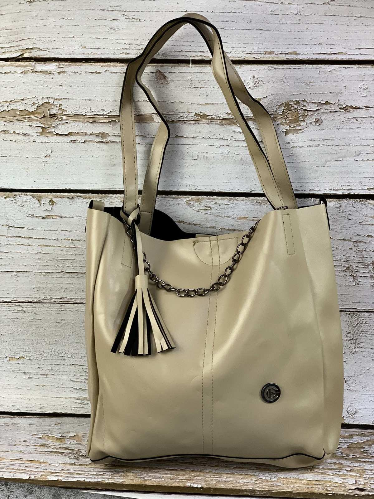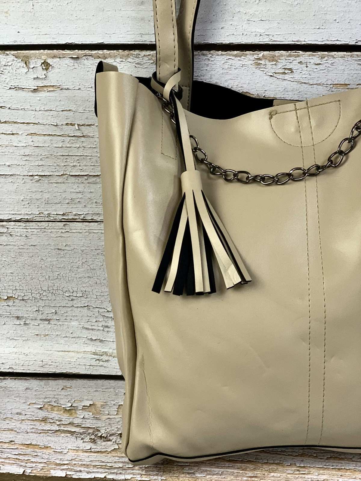 للنساء - حقيبة باللون البيج مع أحزمة جلدية