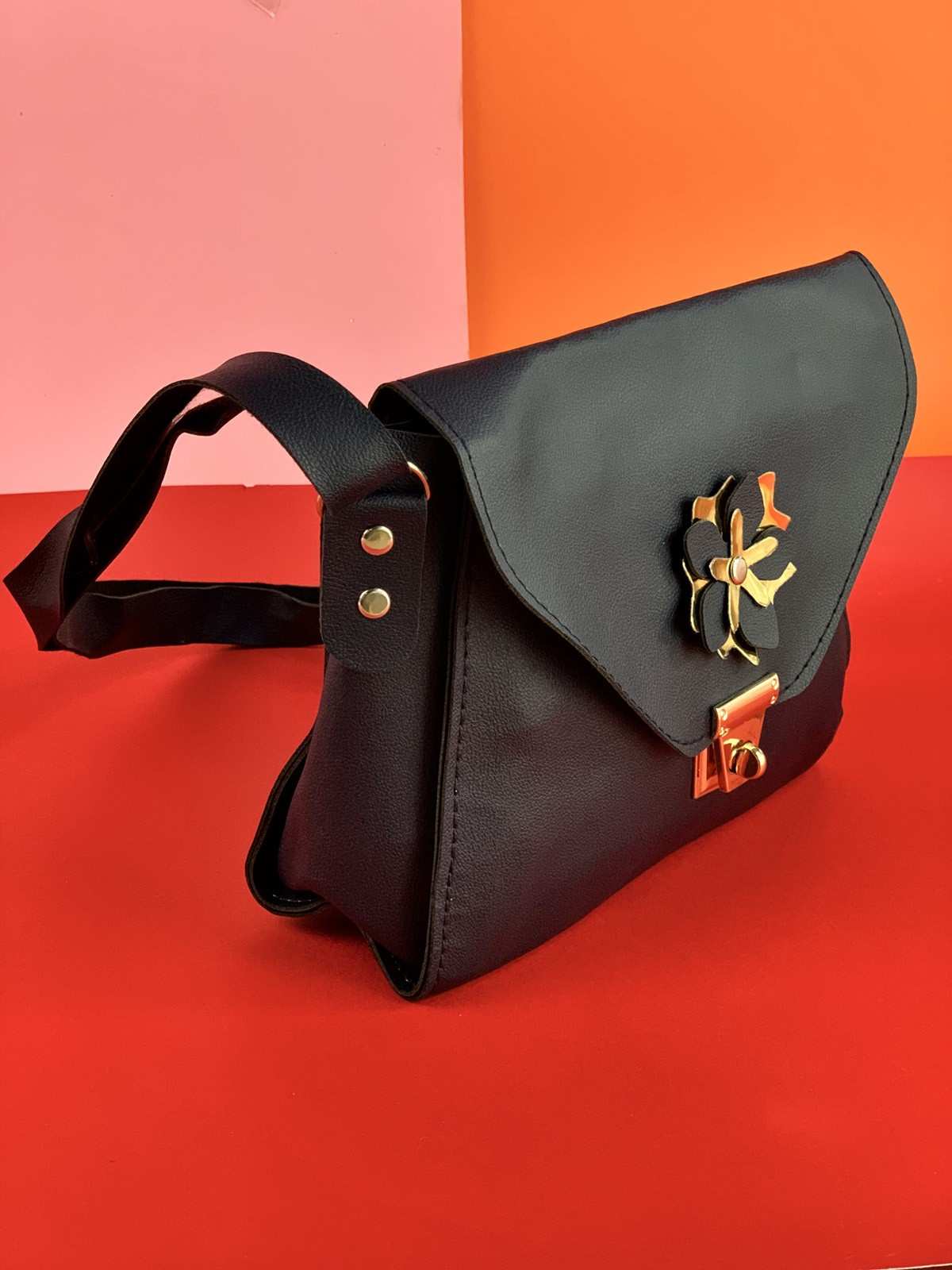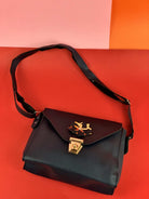 للنساء - حقيبة سوداء بعقدة جلدية ذهبية
