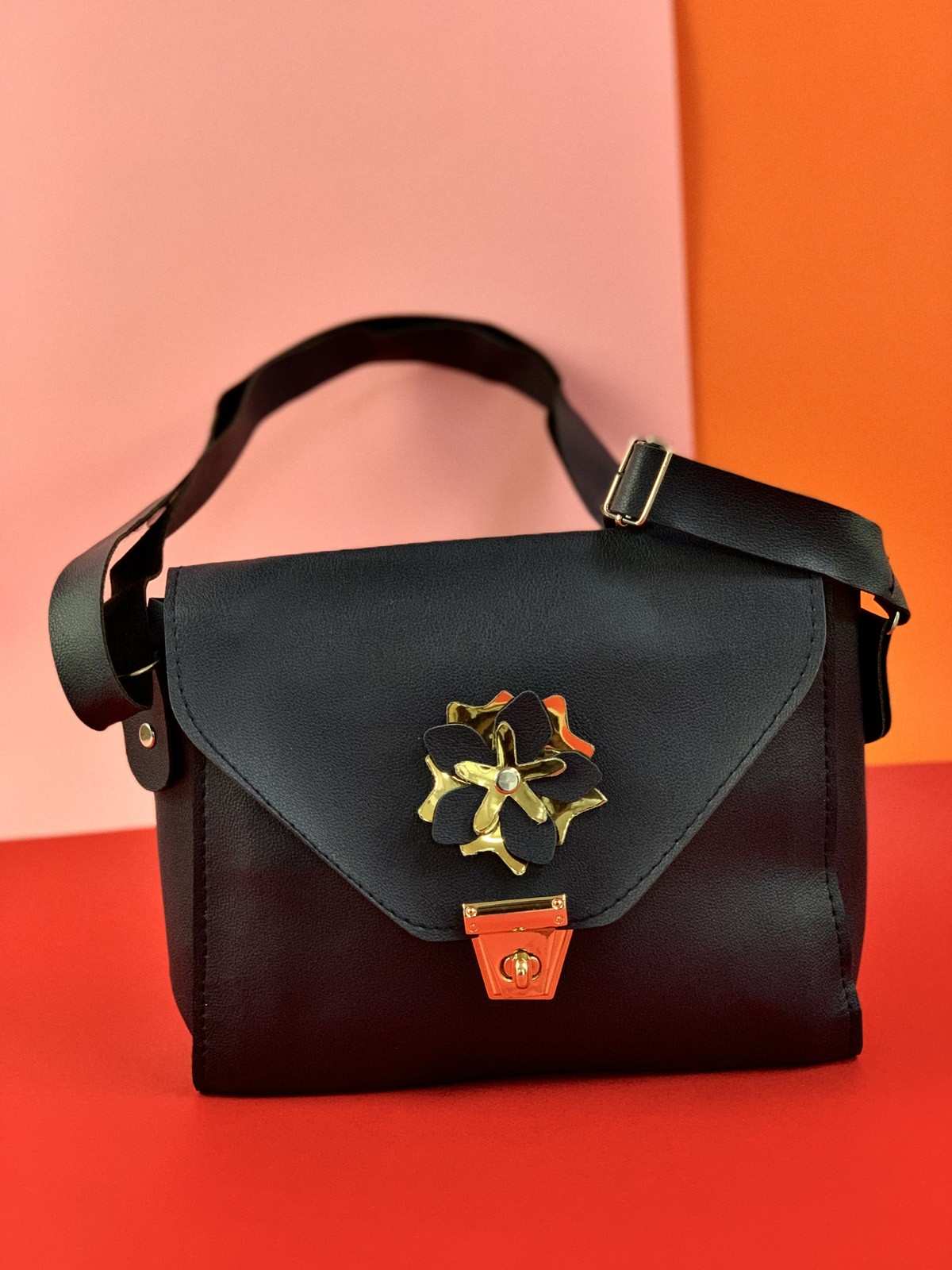 حقيبة سوداء مع عقدة جلدية ذهبية