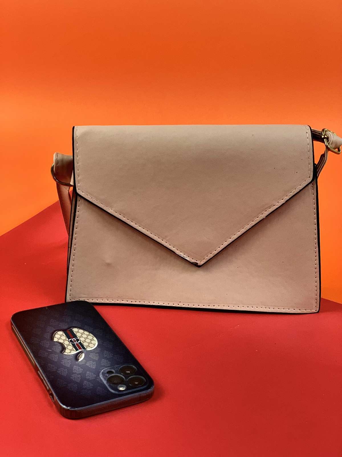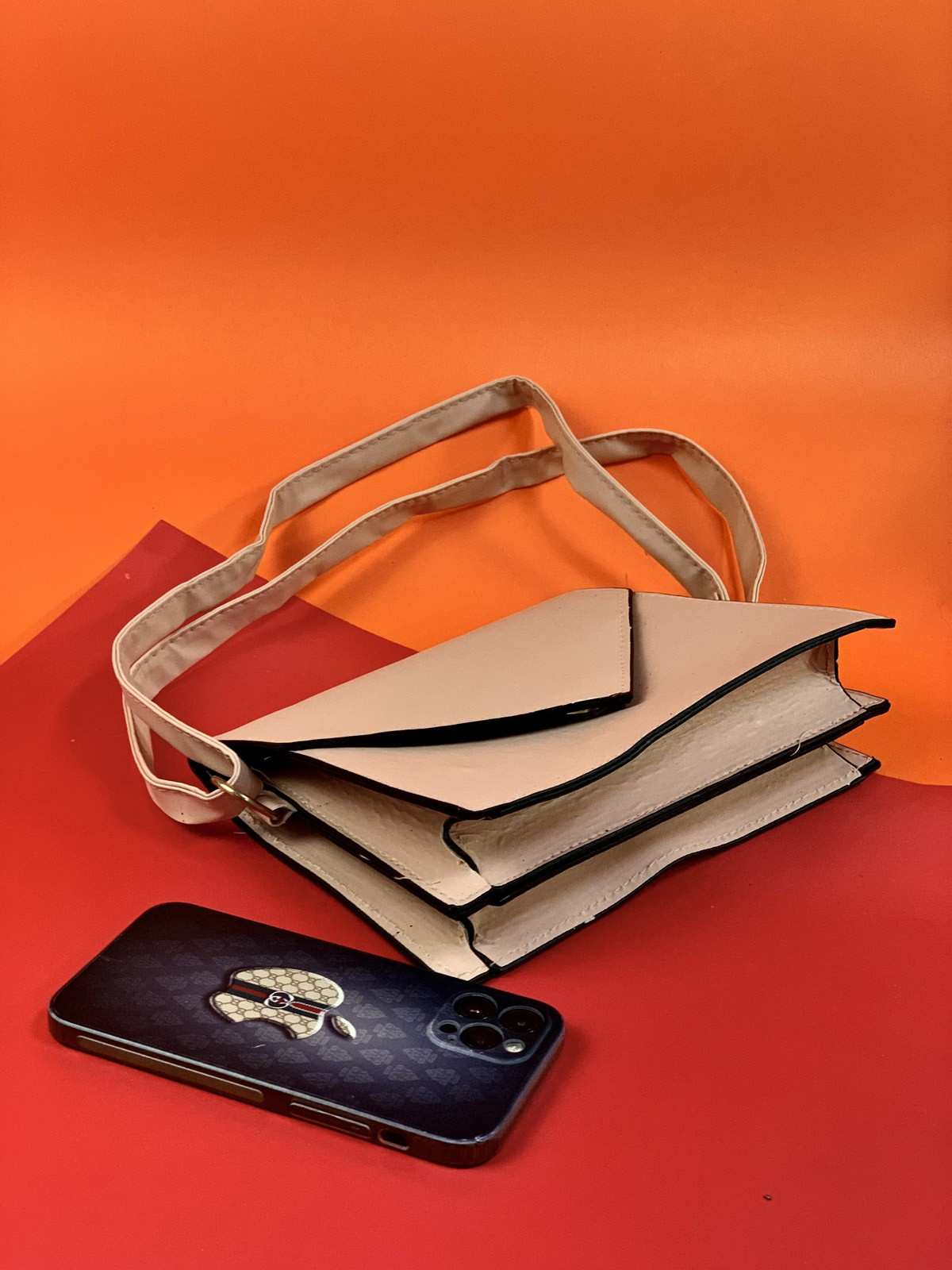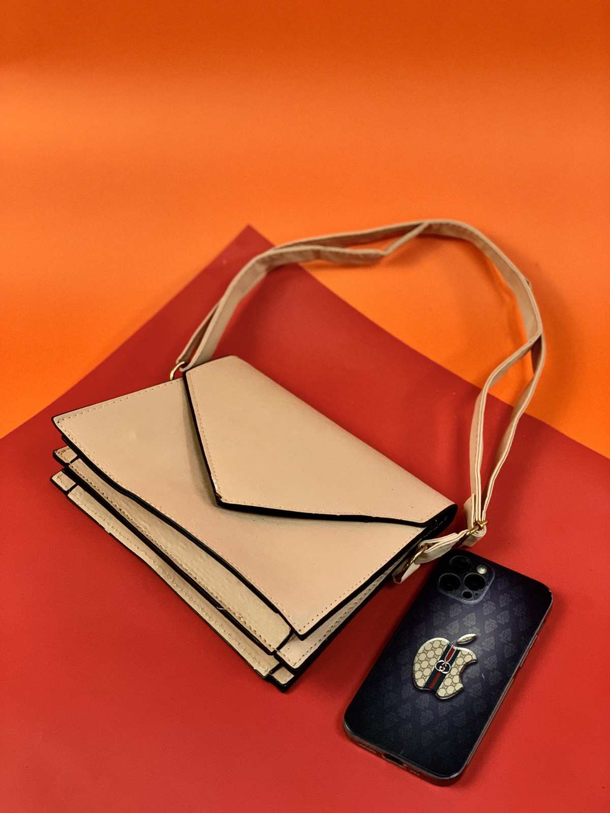 للنساء - حقيبة كريمية خفيفة بفتحة مثلثة