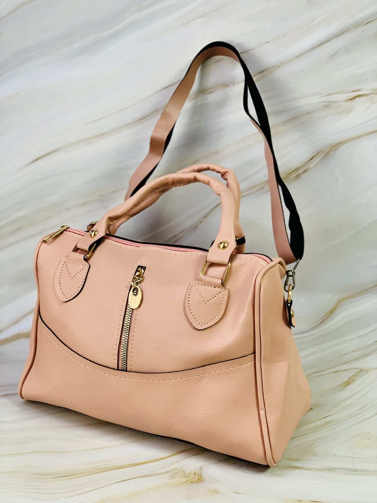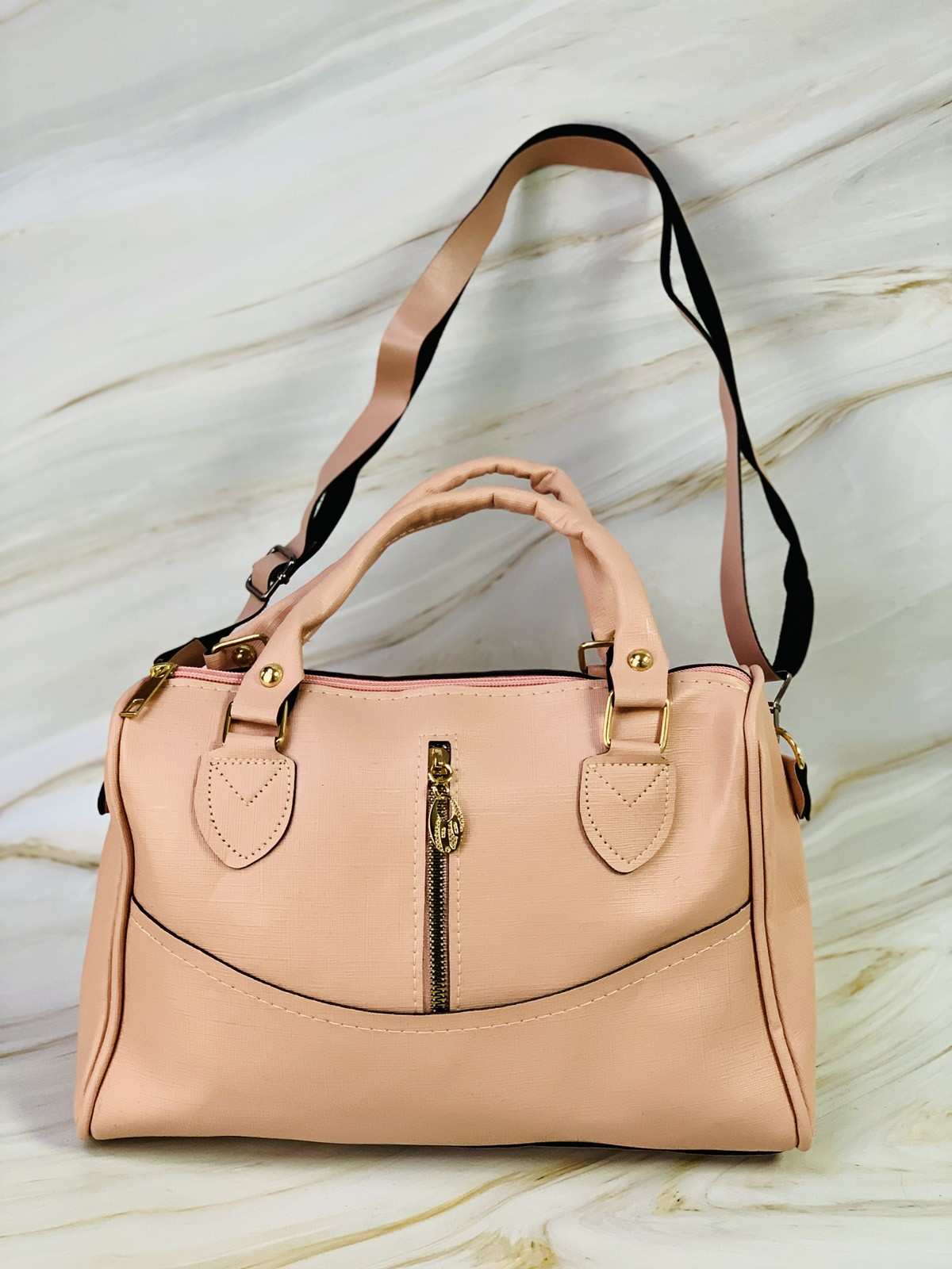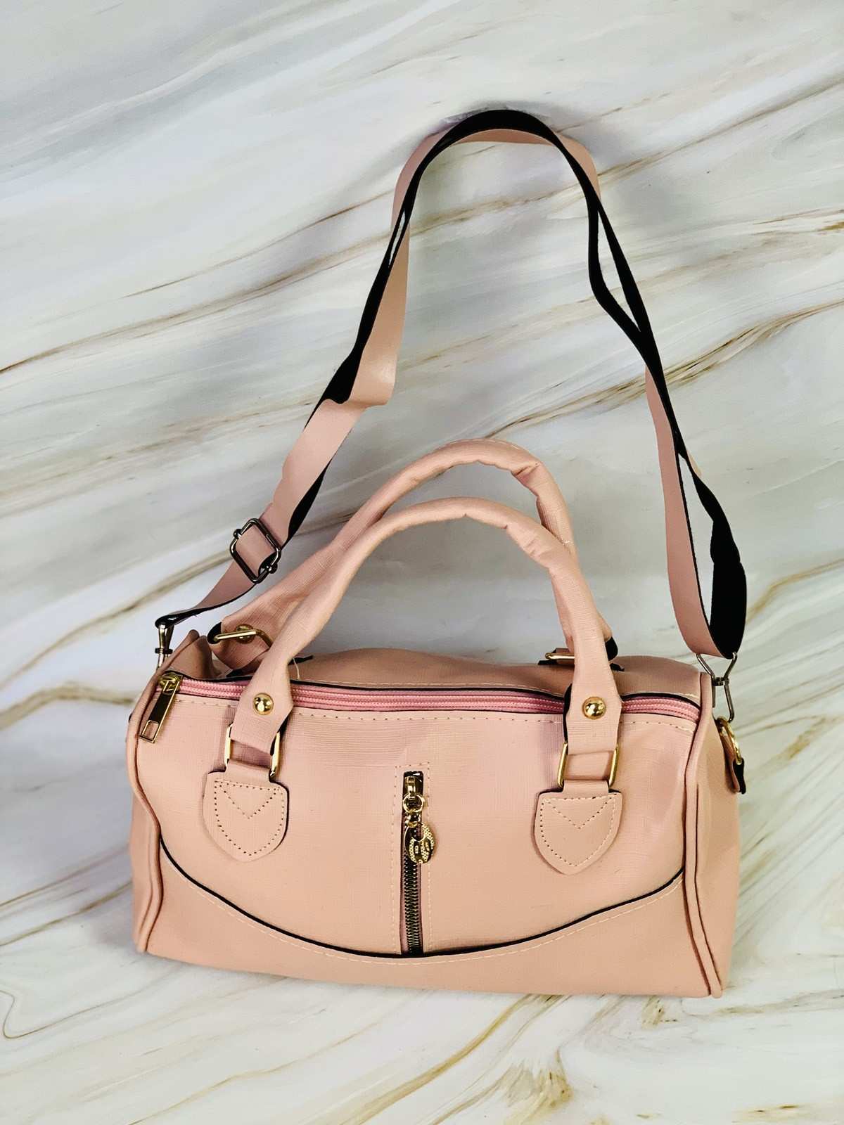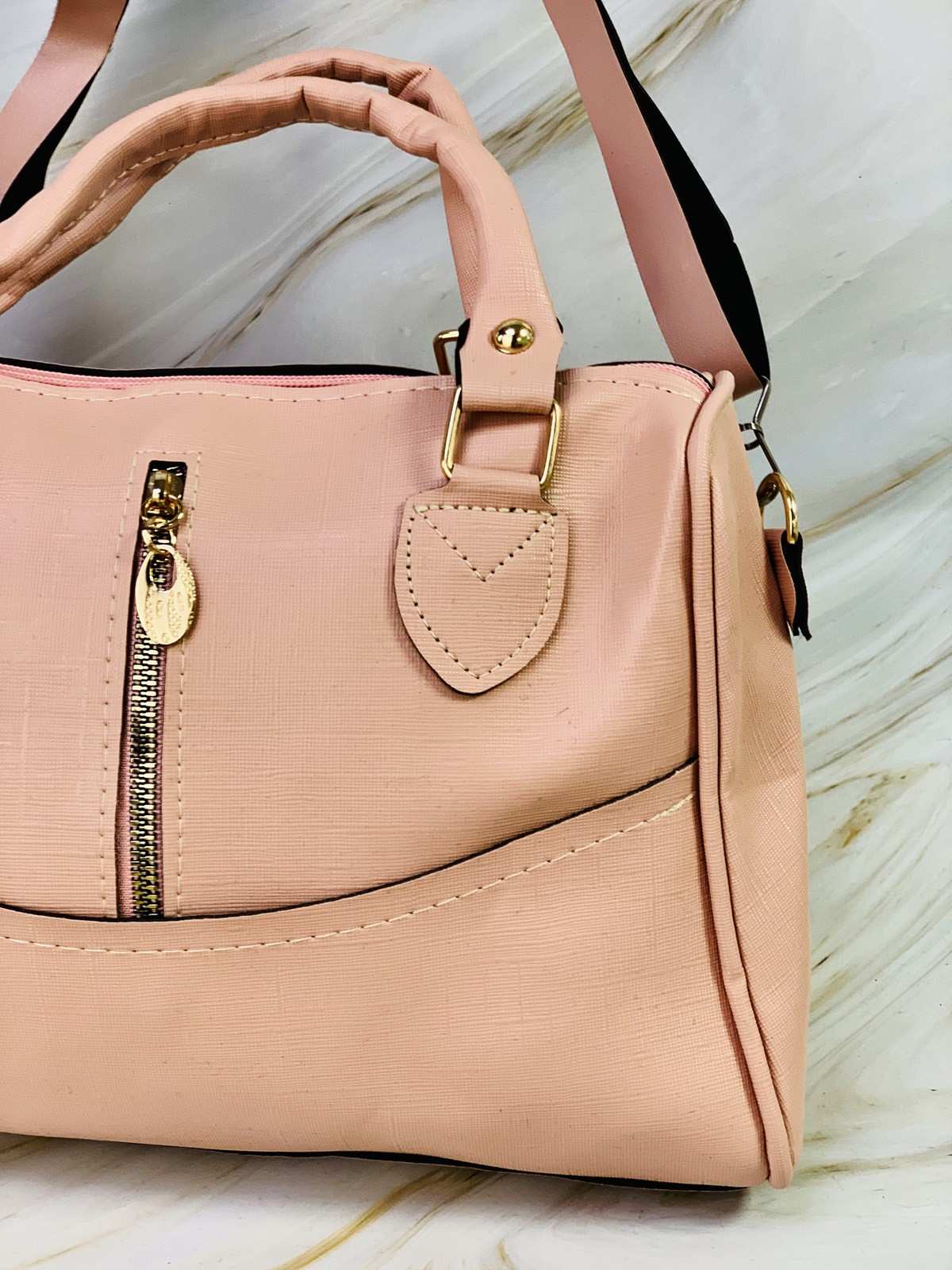 حقيبة وردية بسحابات ذهبية