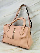 للنساء - حقيبة وردية بسحابات ذهبية