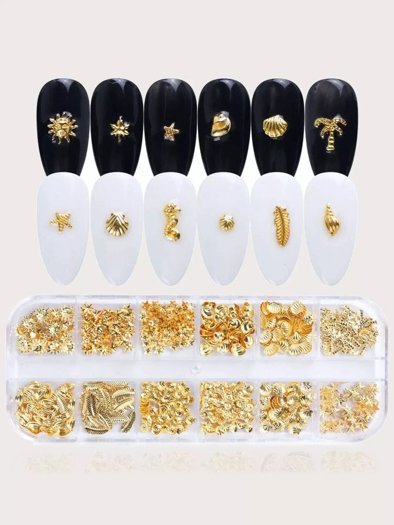 1 صندوق من زخارف الأظافر المعدنية العشوائية