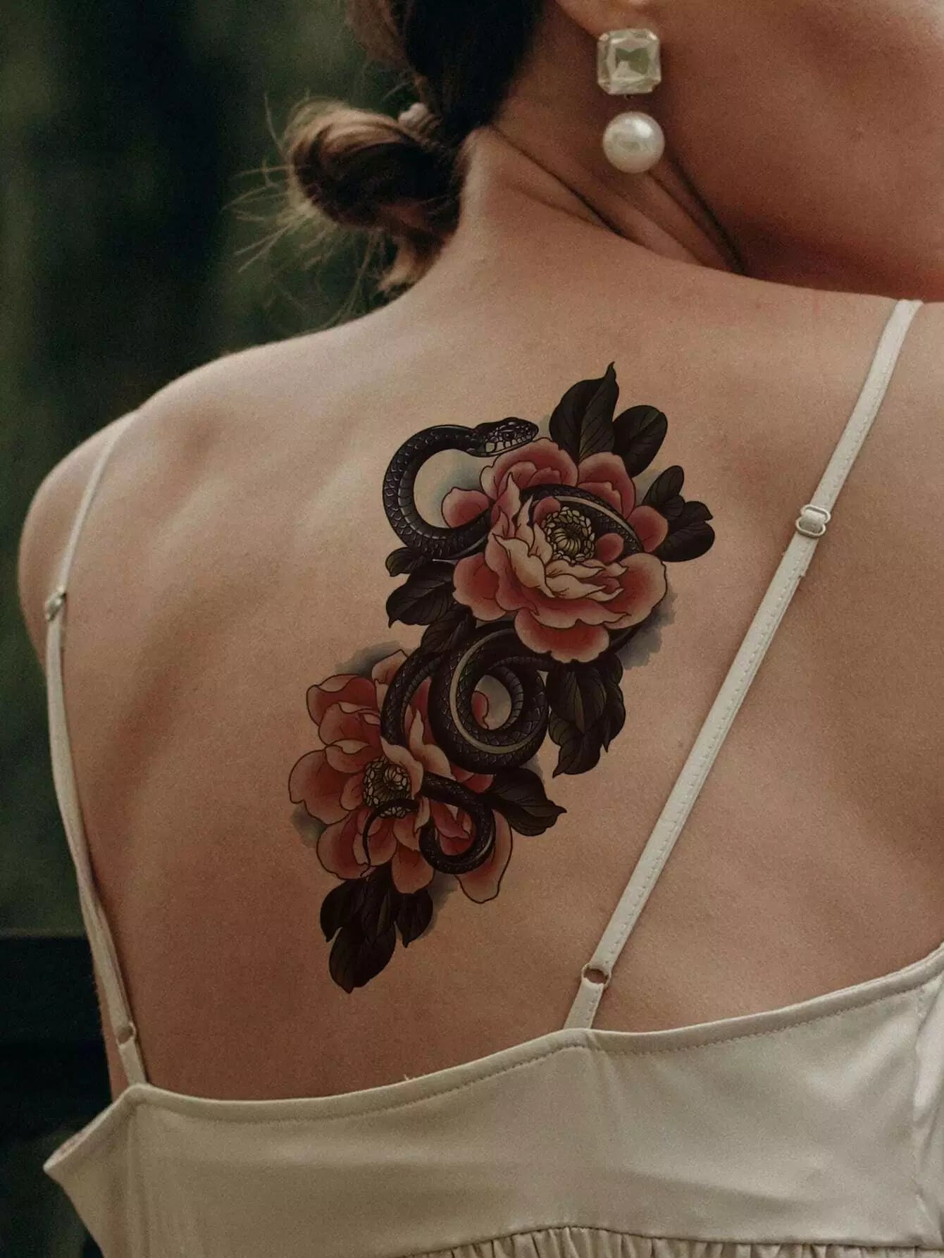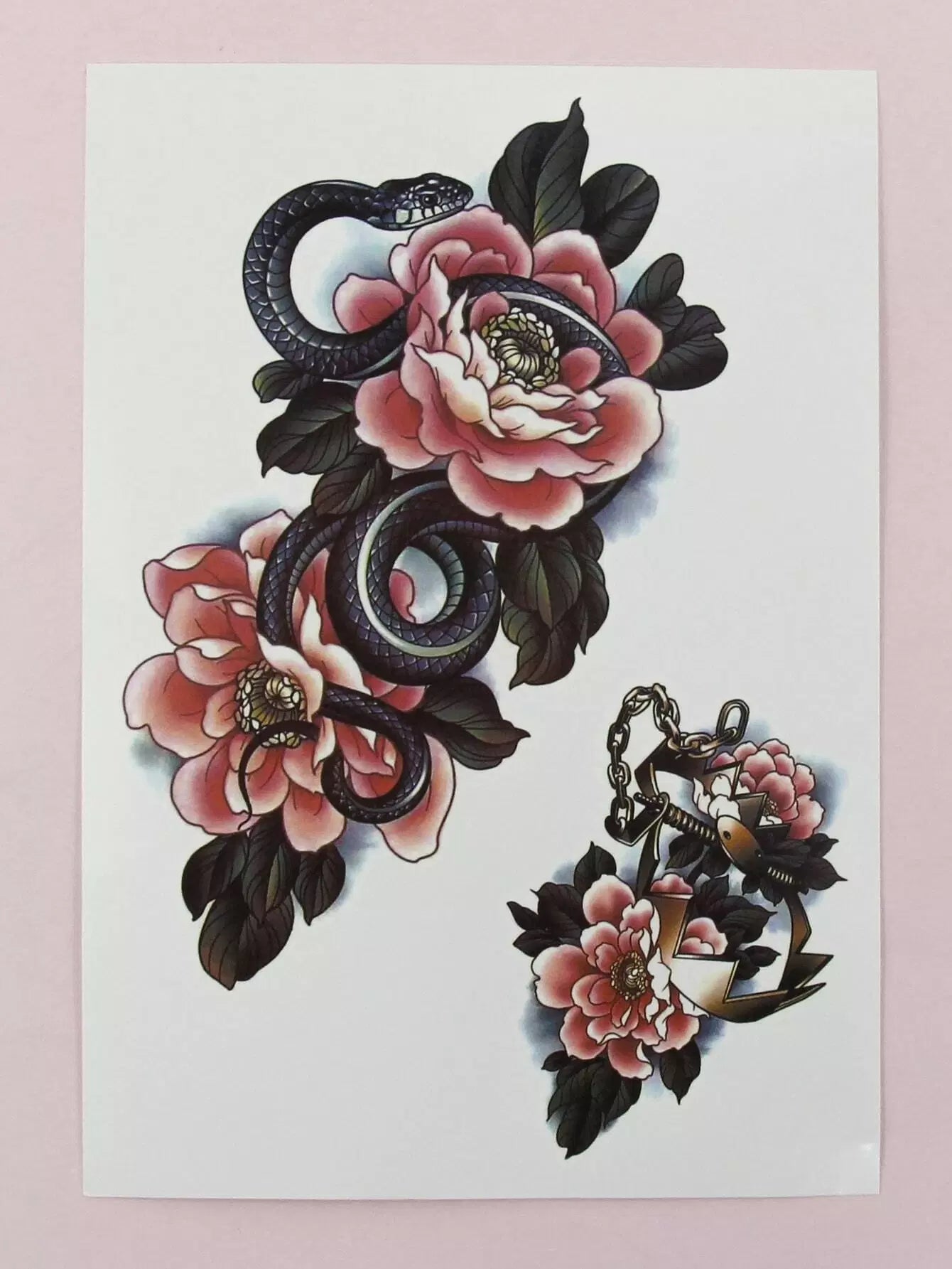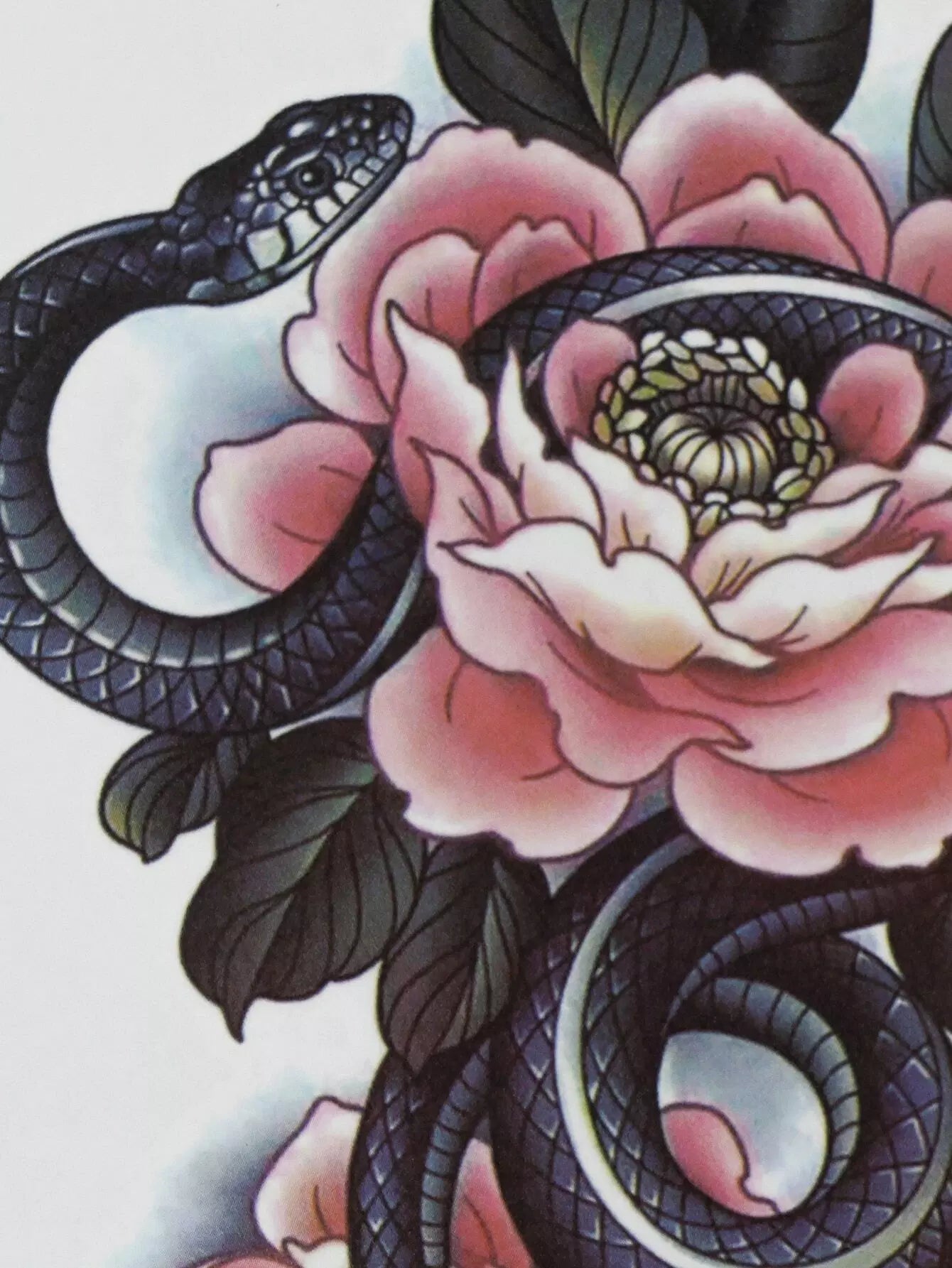 1 ورقة ملصق وشم بنمط زهرة وثعبان