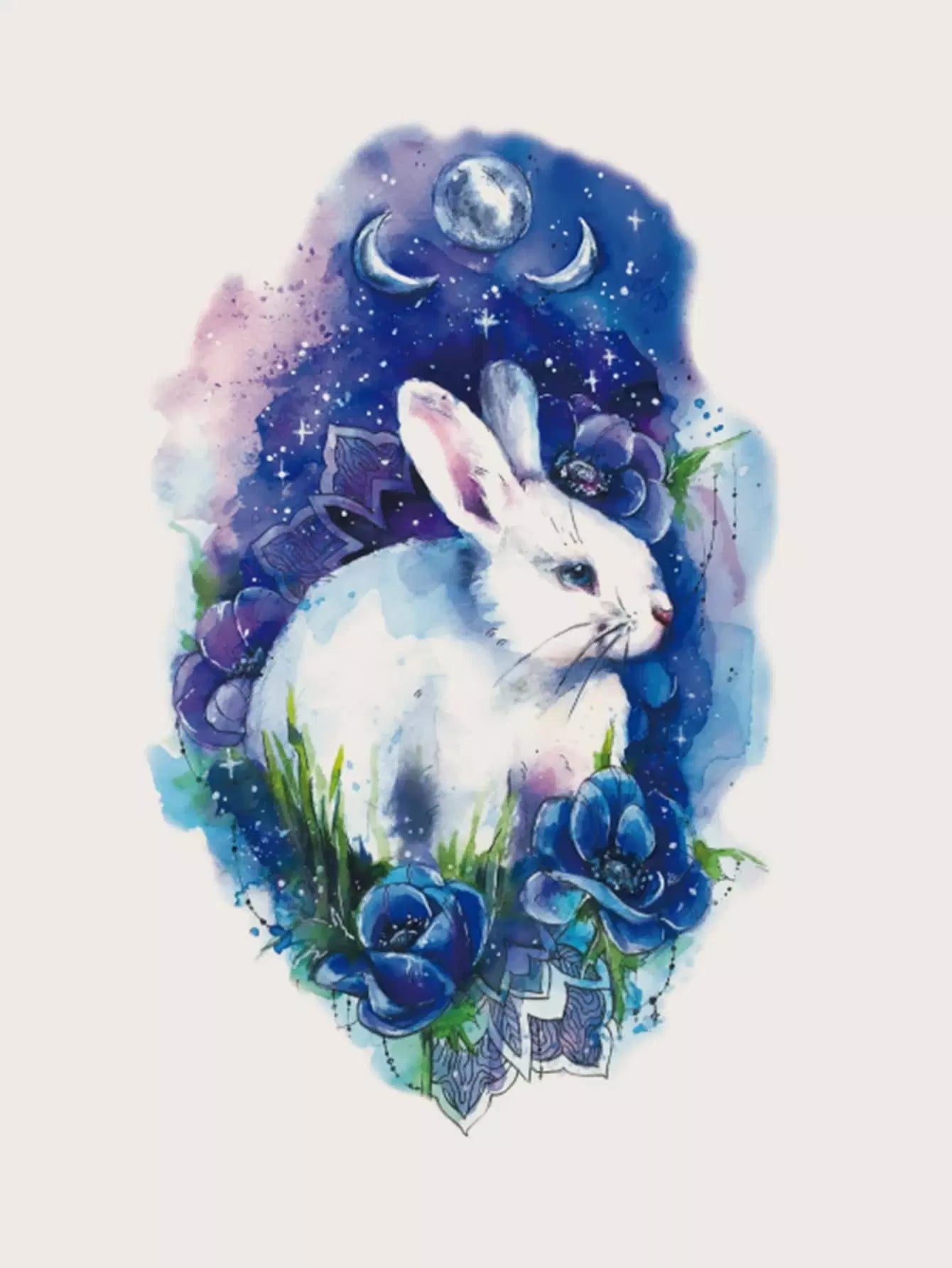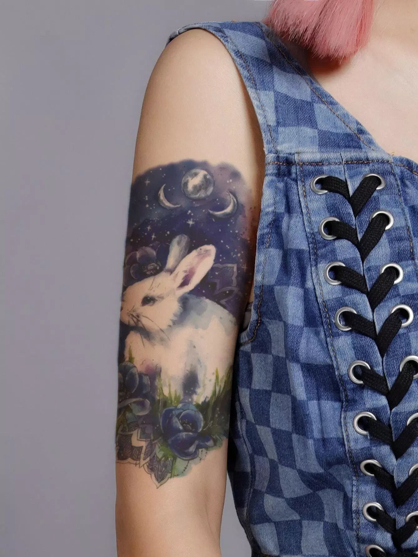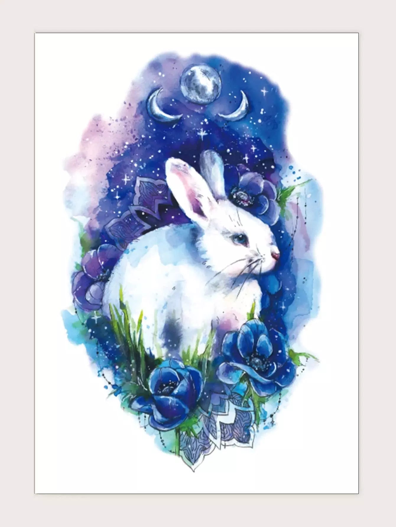 ملصق وشم مطبوع عليه أرنب من ورقة واحدة