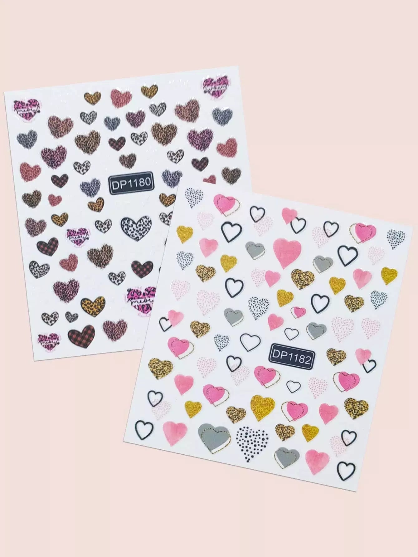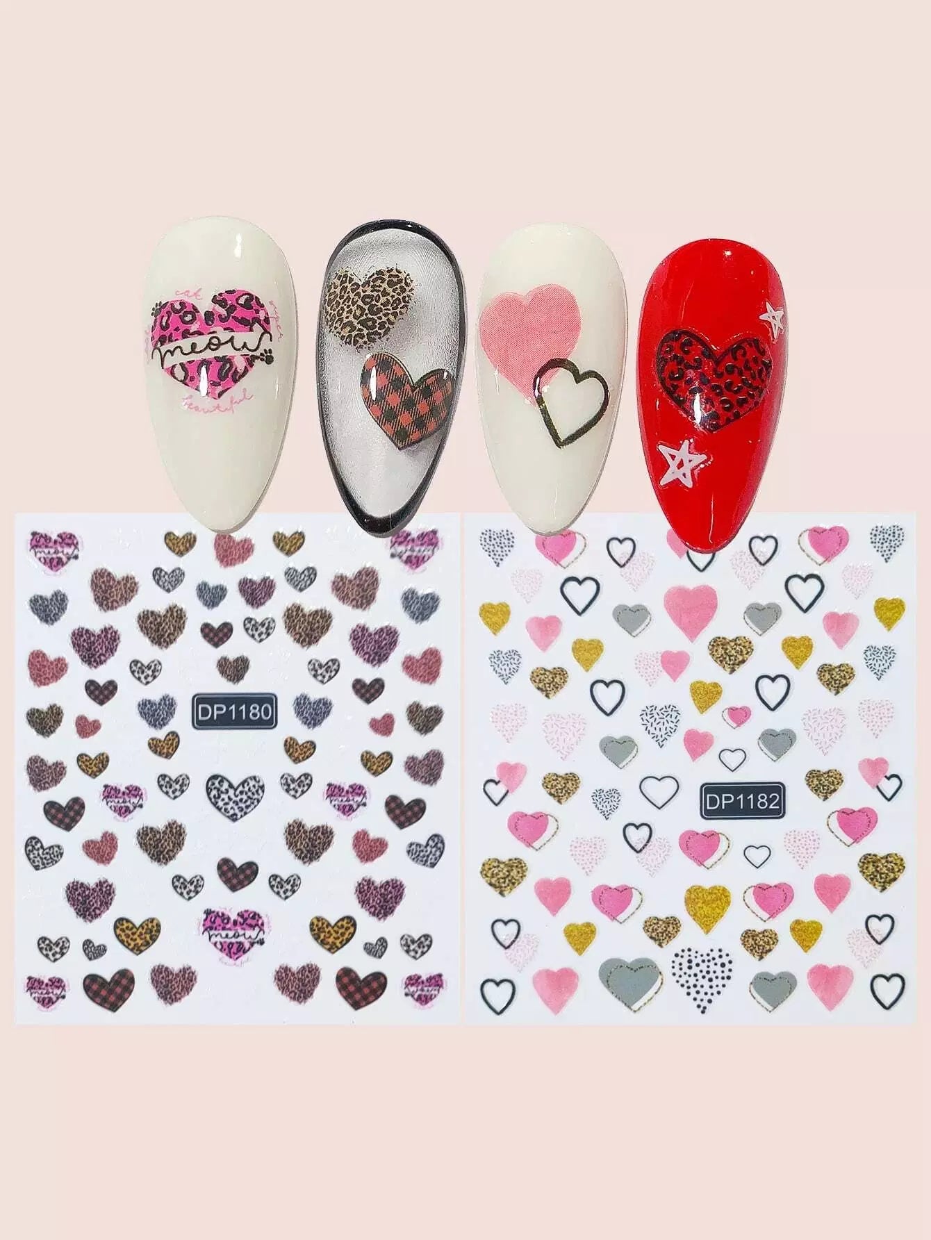 ملصق أظافر على شكل قلب مكون من ورقتين