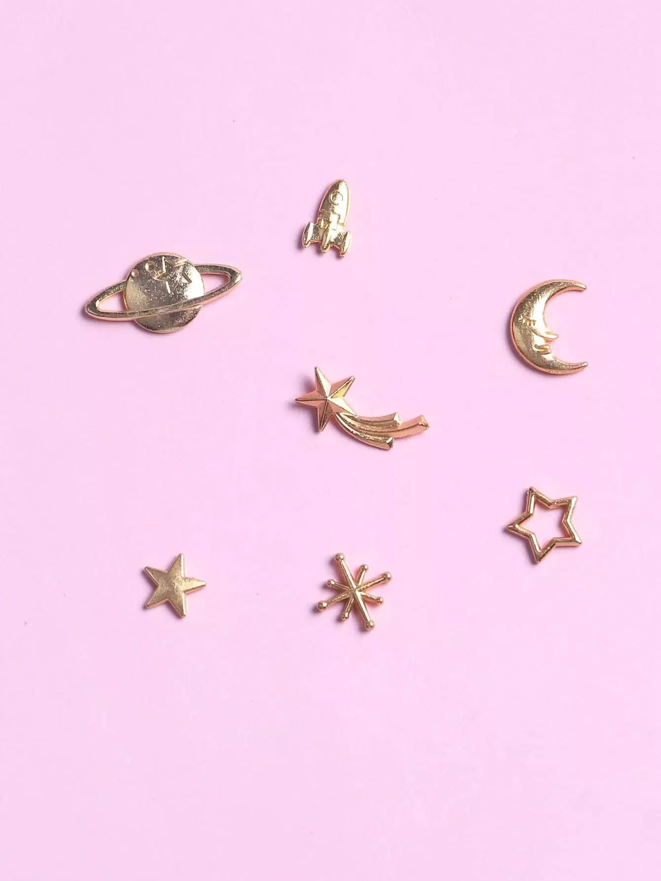 7 قطع من زخارف فن الأظافر على شكل كوكب