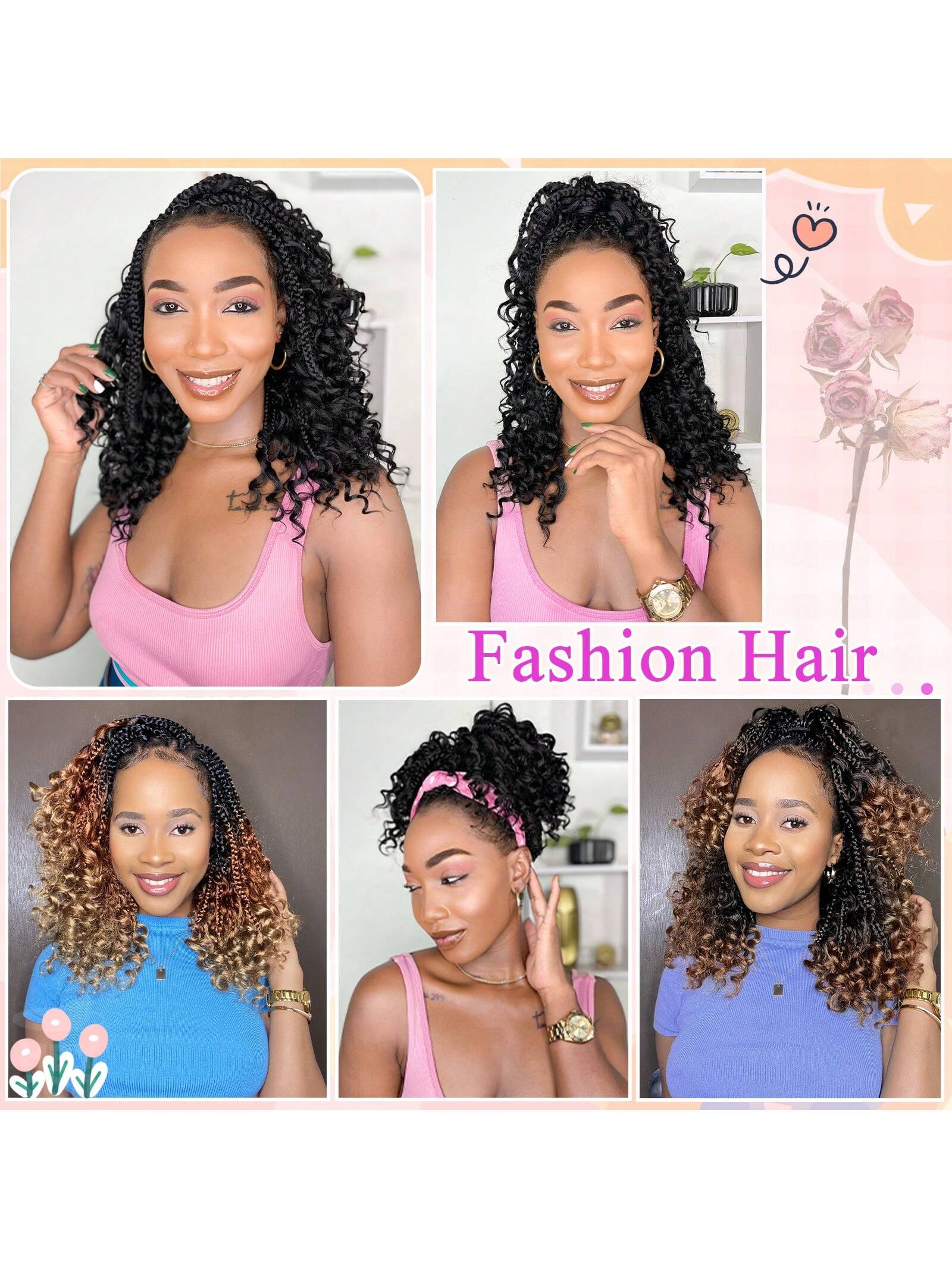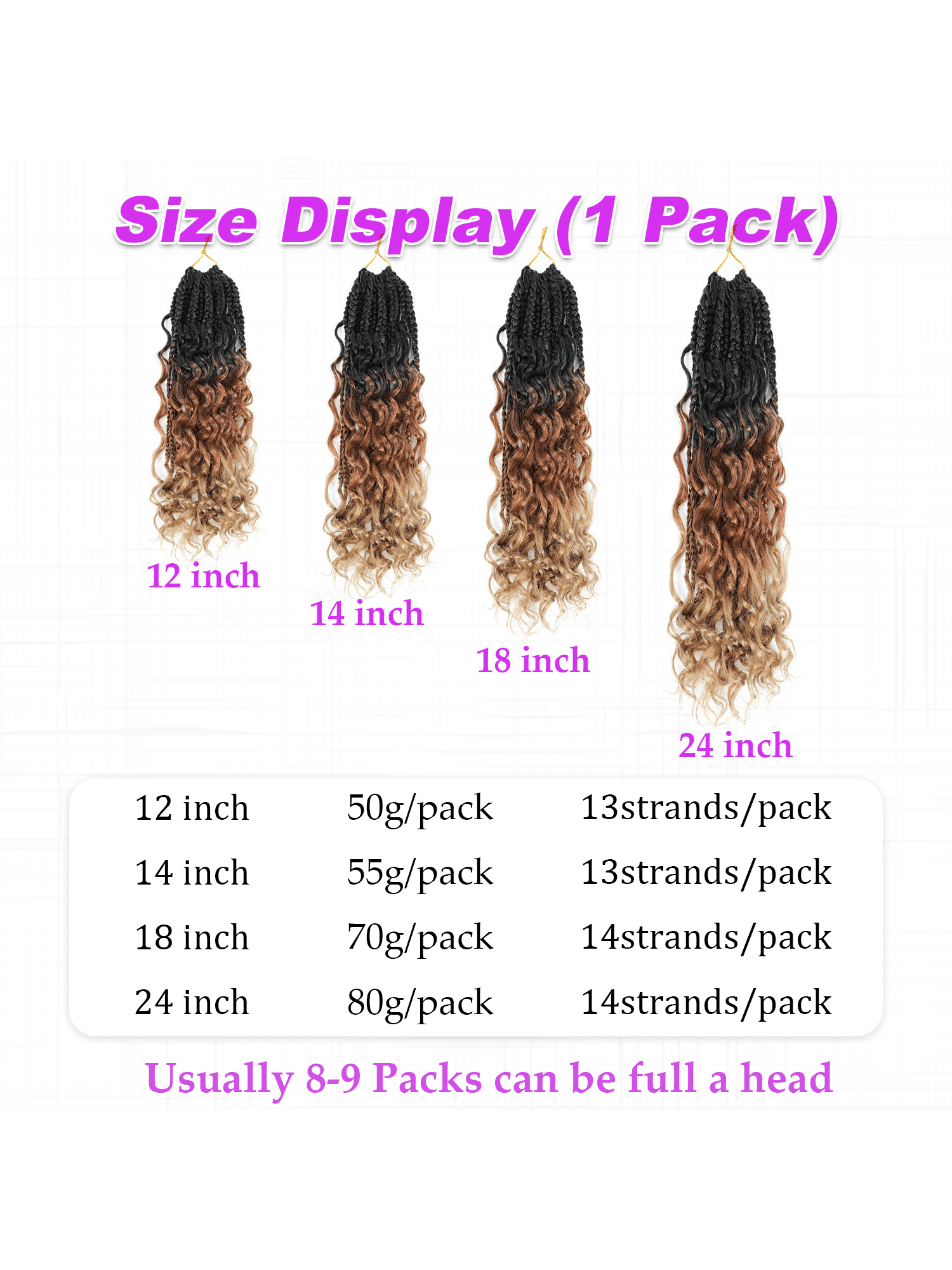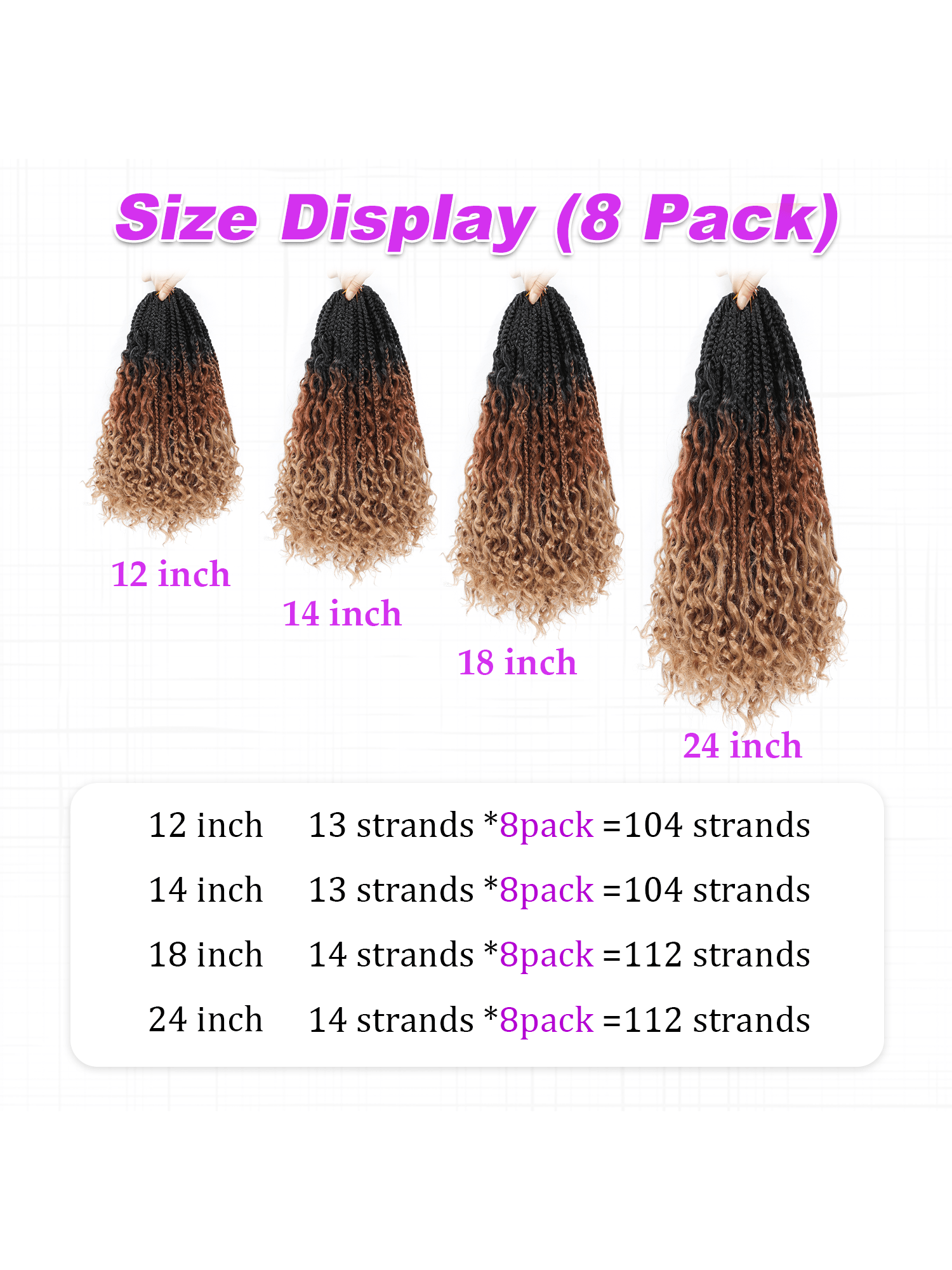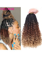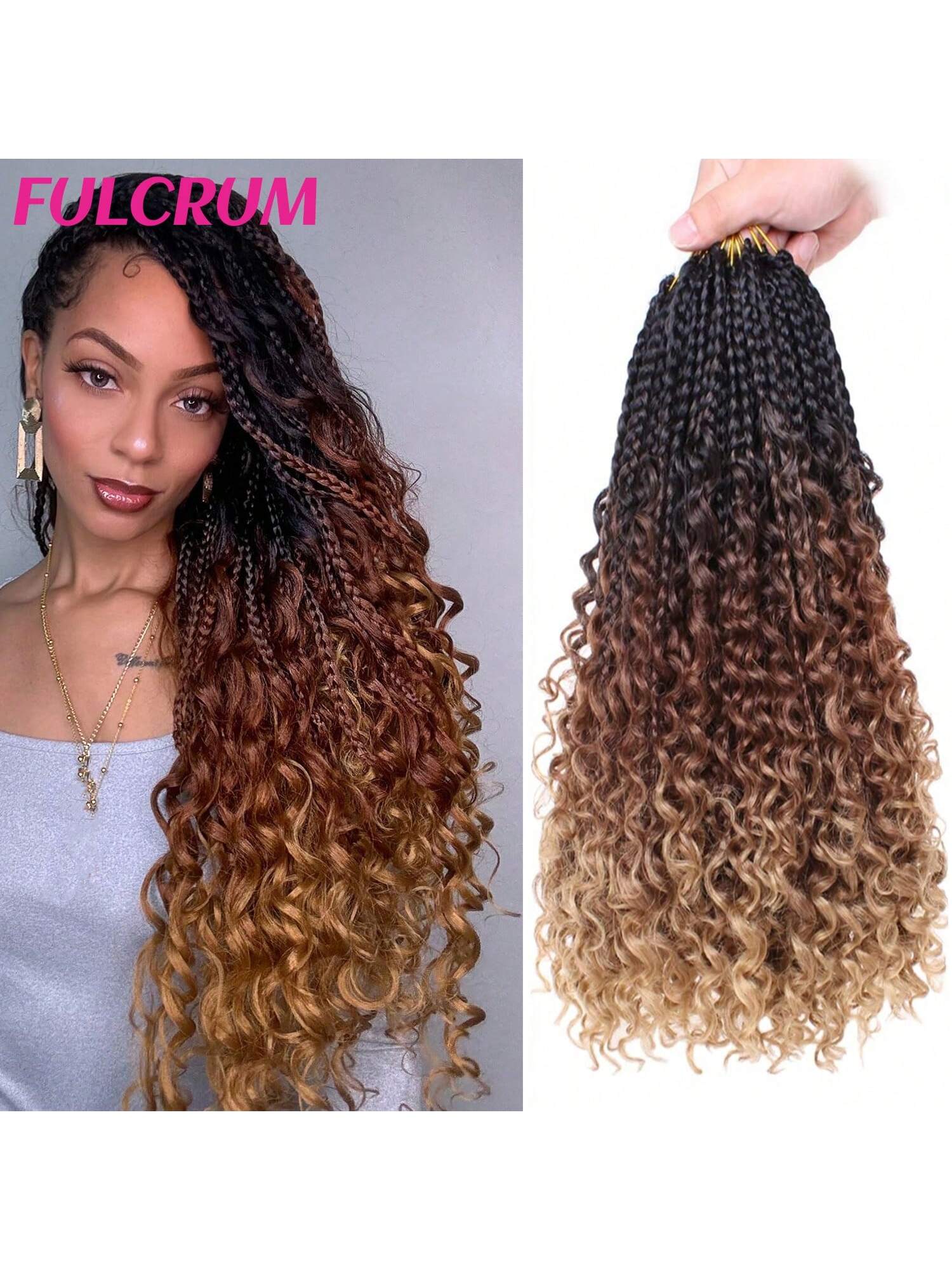 شعر كروشيه من فولكروم، ضفائر بوكس بوهيمية بأطوال 12/14/18/22/24 بوصة، مع أطراف مجعدة