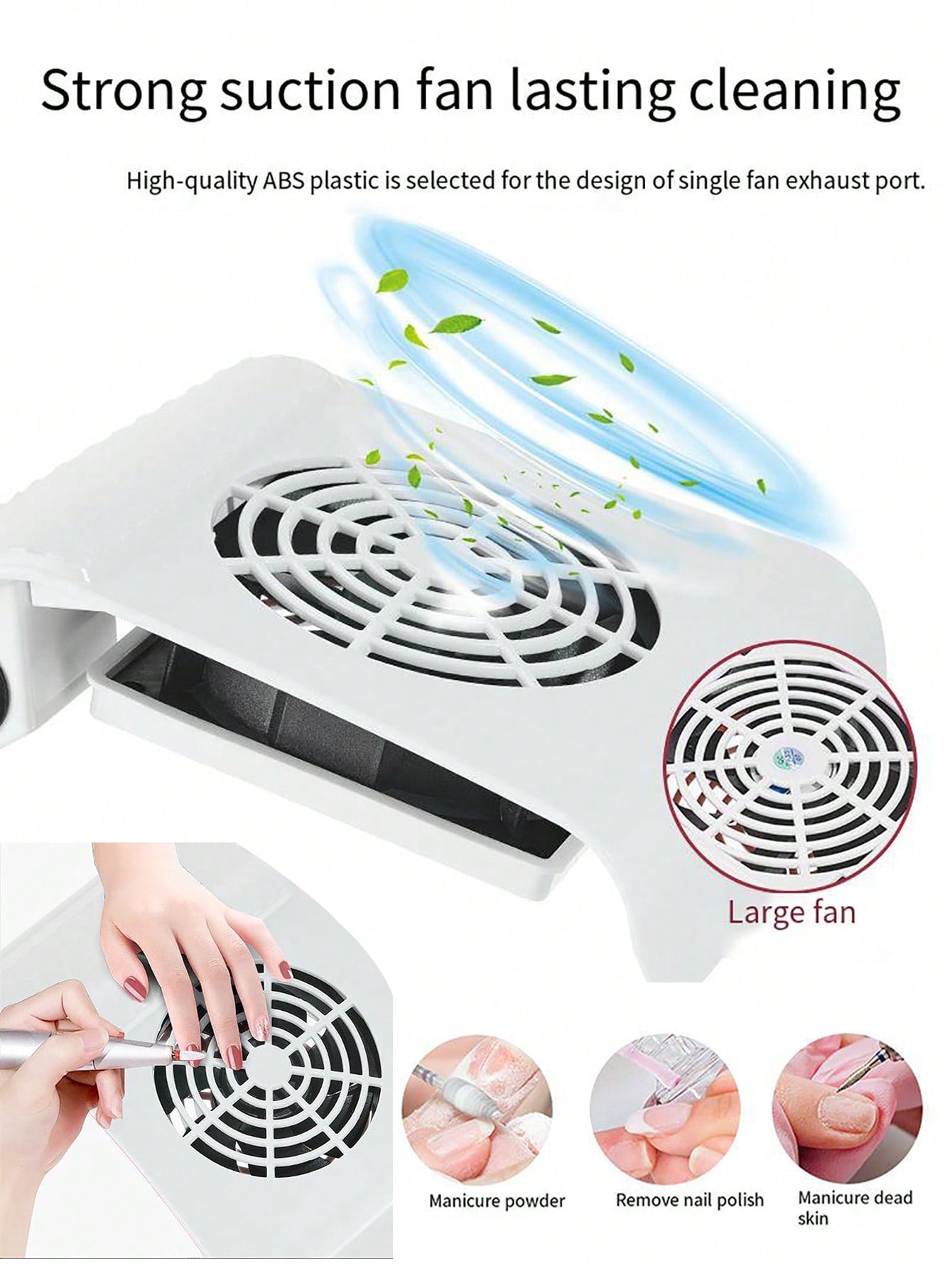 مكنسة كهربائية لجمع غبار الأظافر، مزودة بمسند لليد، منخفضة الضوضاء وعالية الطاقة.
