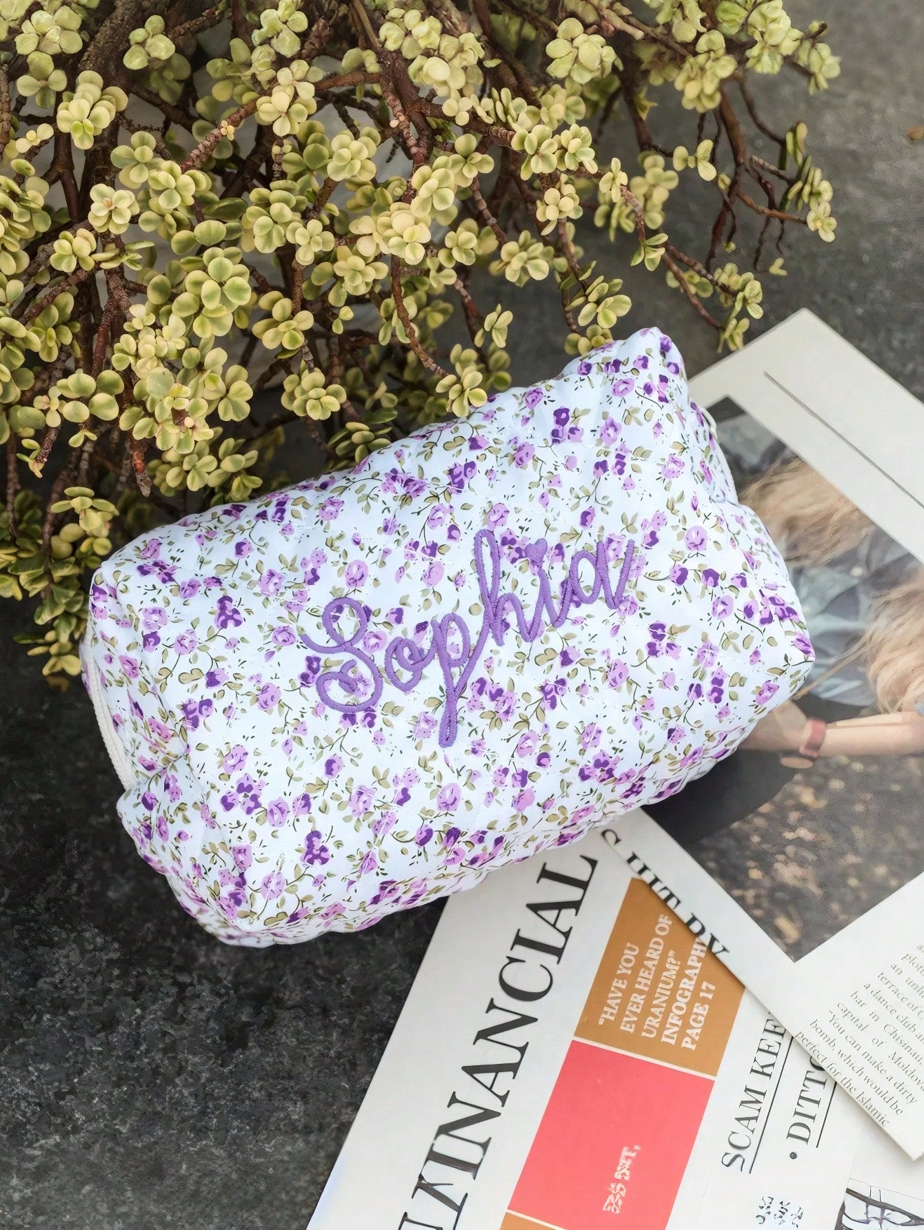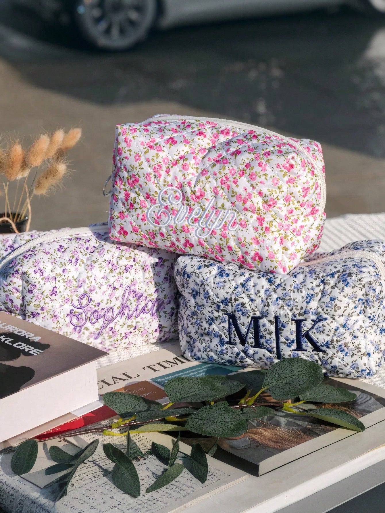 حقيبة مكياج مزينة بالزهور قابلة للتخصيص - حقيبة مستحضرات تجميل مبطنة مصنوعة يدويًا