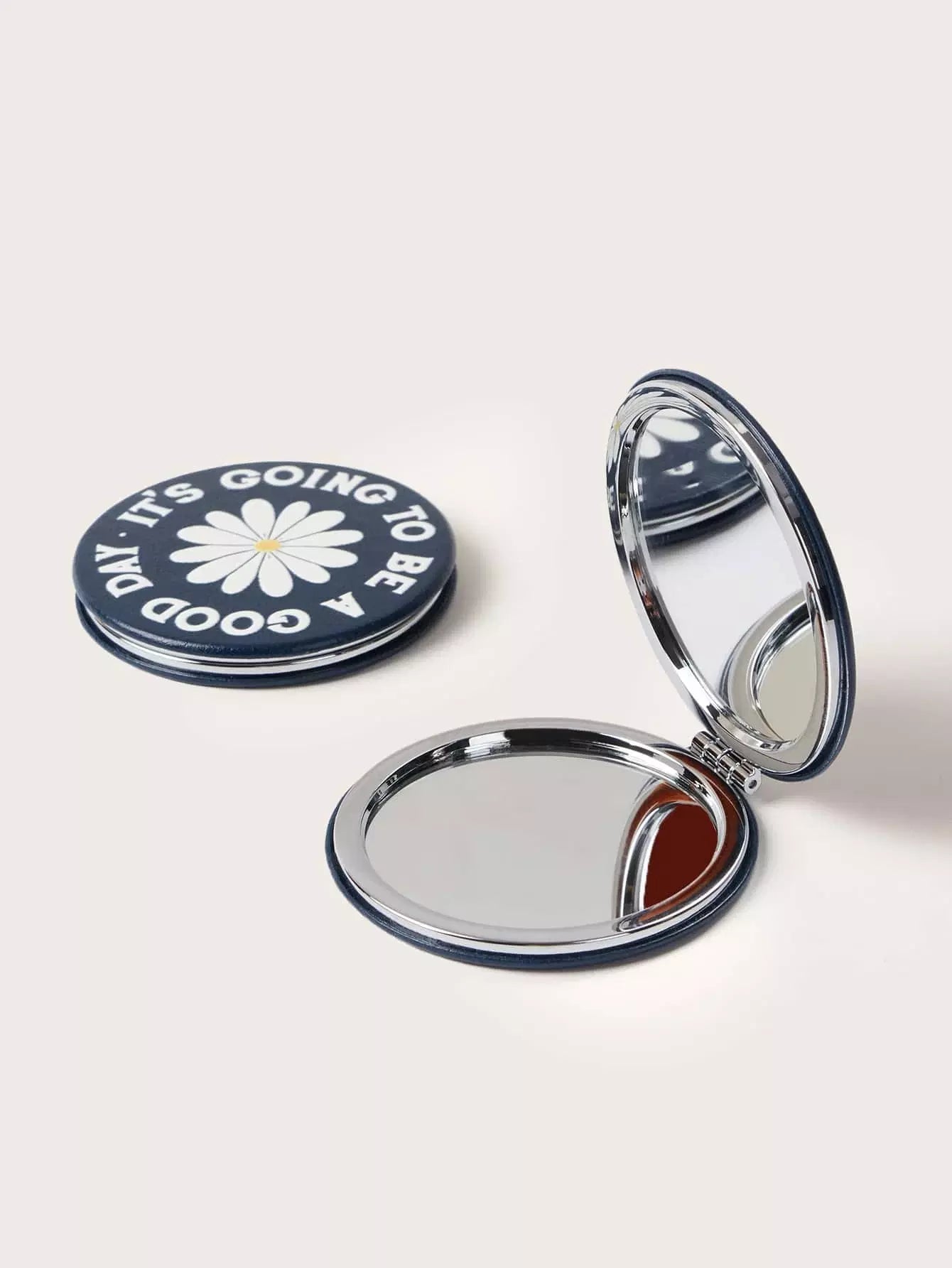مرآة مطبوعة بالشعار وزهرة الأقحوان