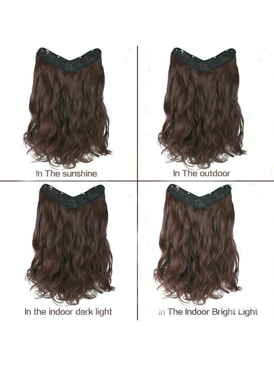 وصلات شعر صناعية مموجة كبيرة على شكل حرف V، غير مرئية، مناسبة للبشرة البيضاء، بأطوال 16/20/24/28 بوصة، 4 مشابك تثبيت