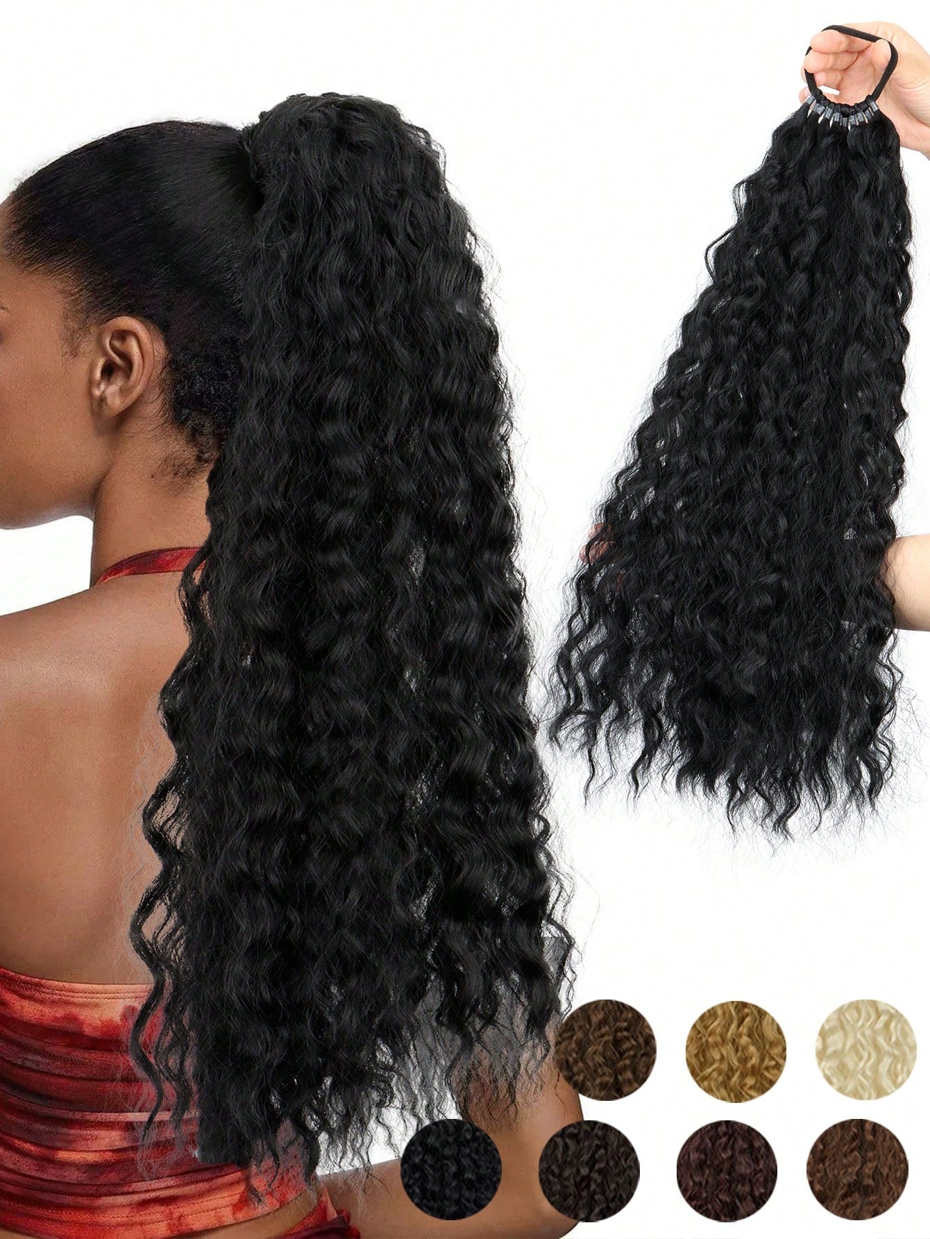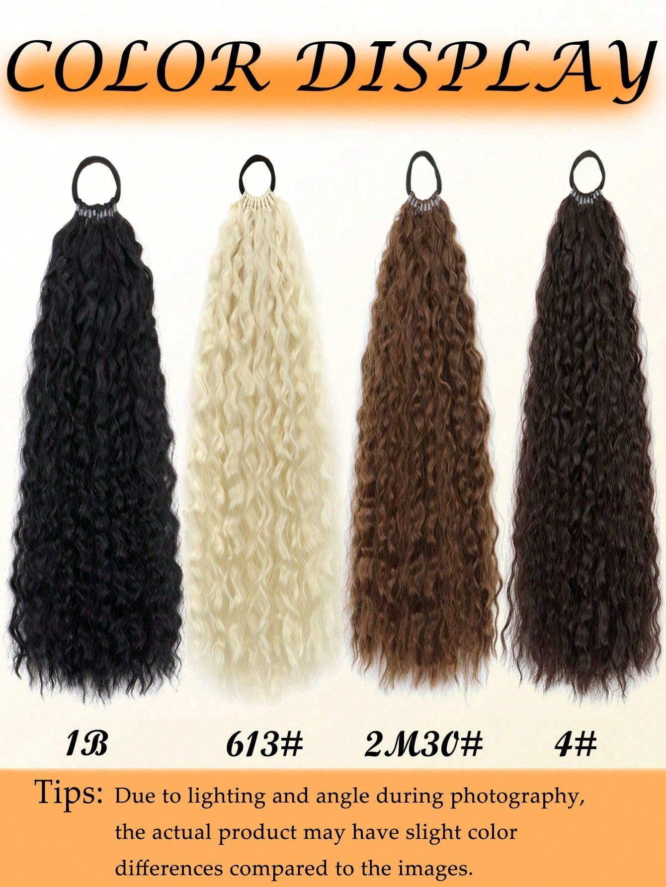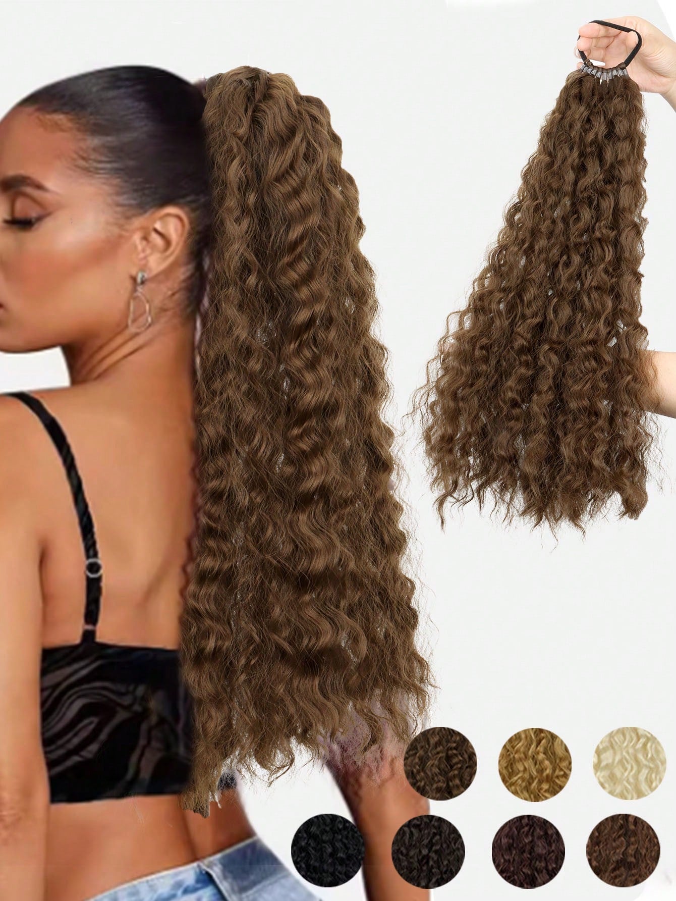 وصلة شعر أفرو مجعدة للنساء - شعر صناعي طويل مجعد ملفوف بطول 20 بوصة