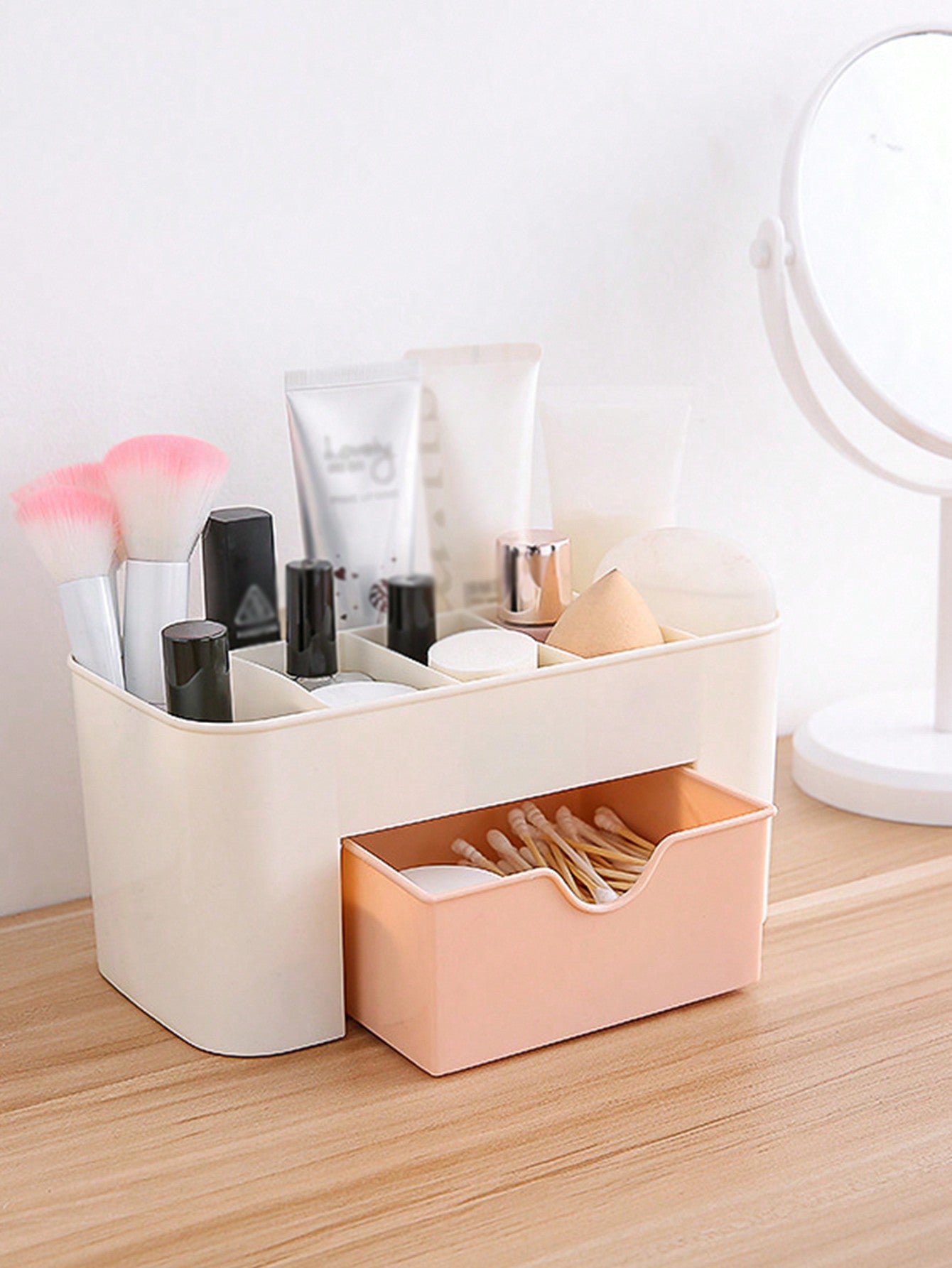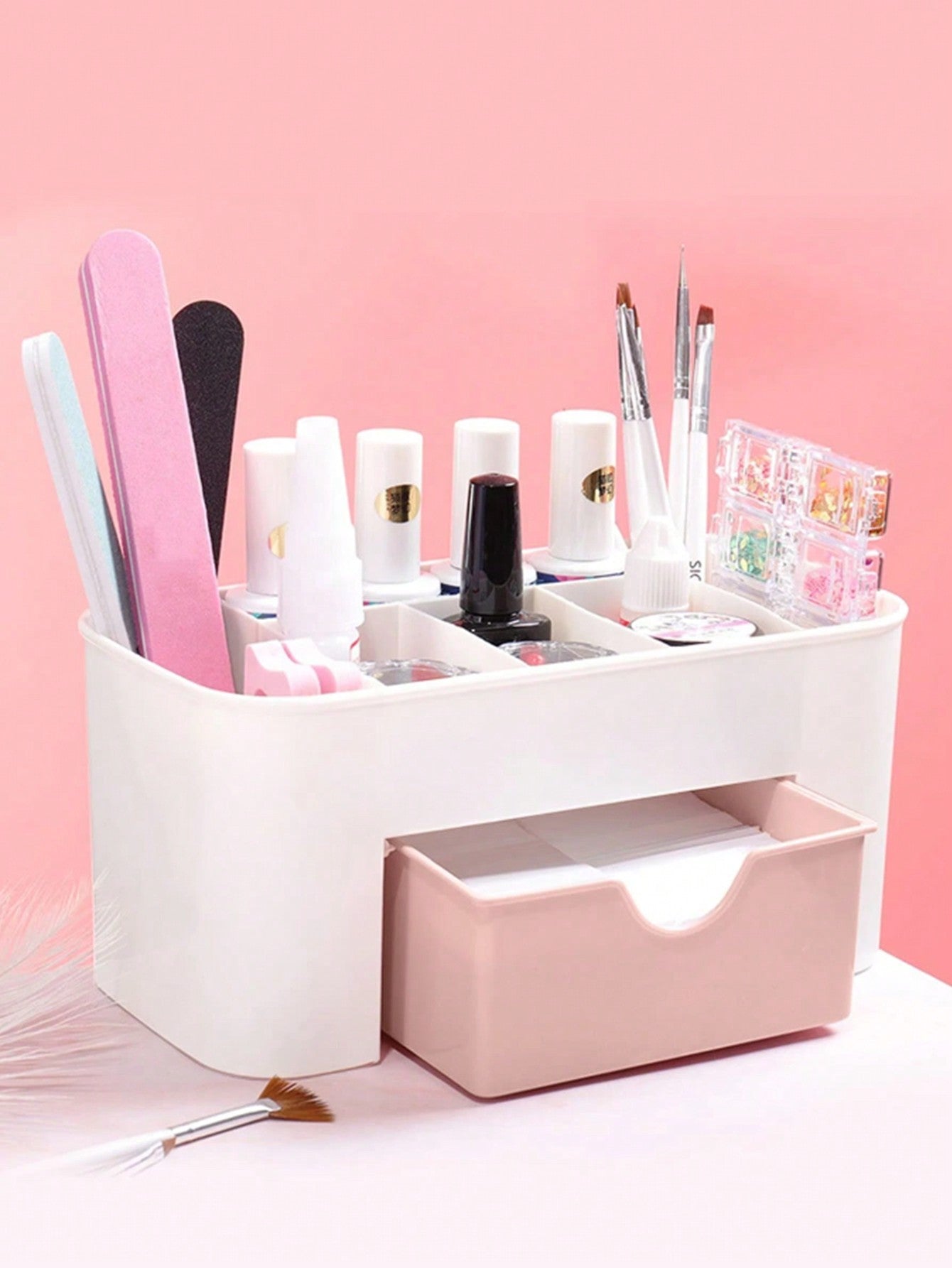صندوق تخزين واحد بأدراج وردية اللون لأدوات الأظافر - مجوهرات