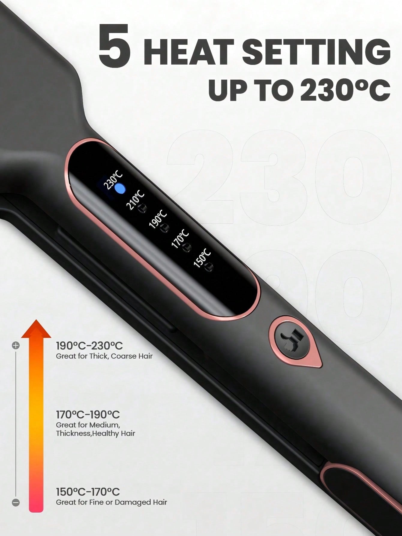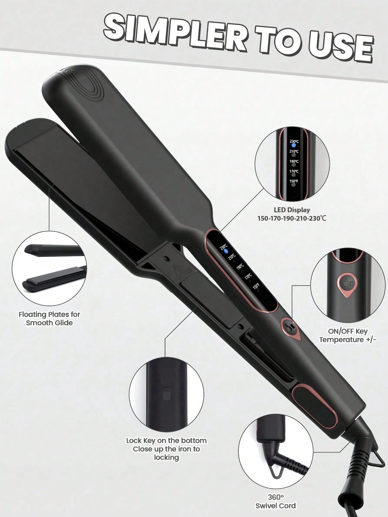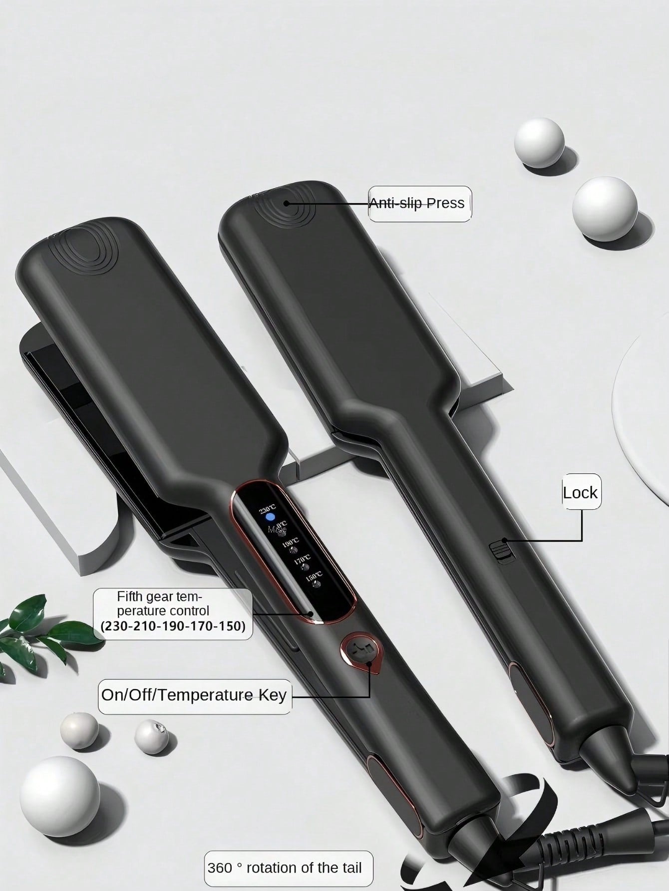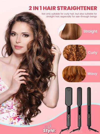 مكواة شعر تيتانيوم 2 في 1 لتمليس الشعر وتجعيده - درجة حرارة ثابتة بتقنية PTC