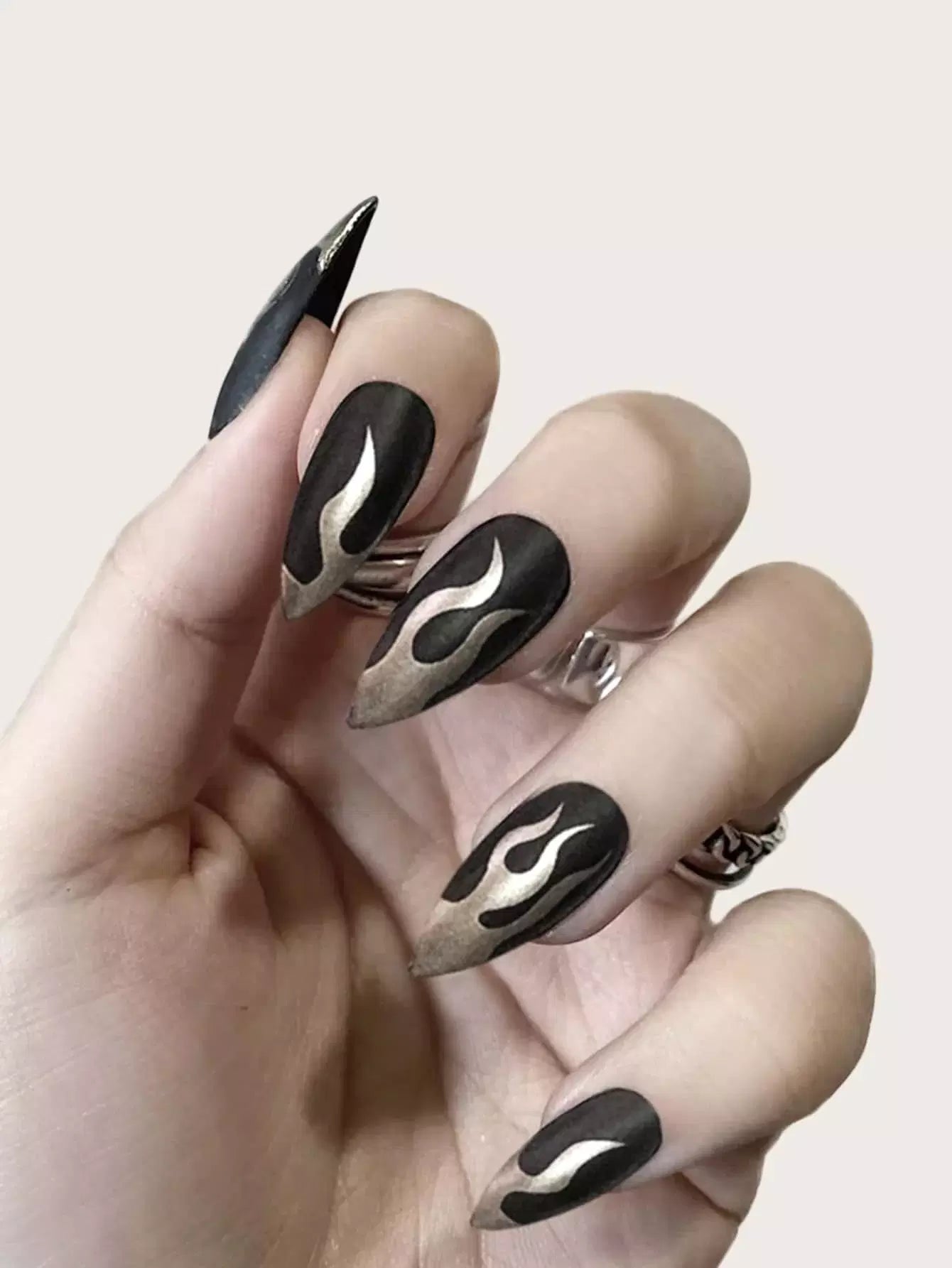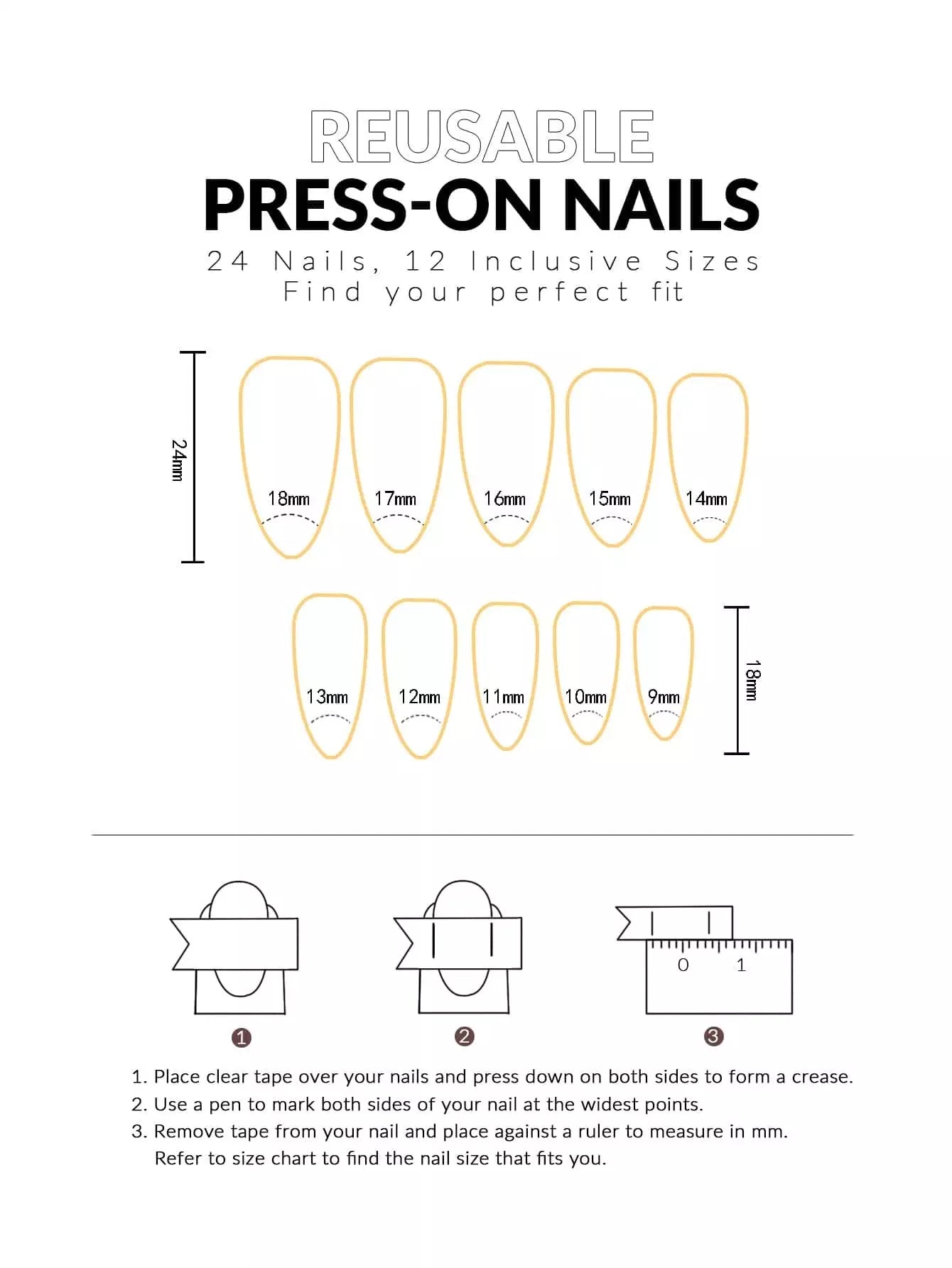 24 قطعة من أظافر صناعية مطبوعة بشعلة وشريط لاصق مزدوج الجوانب