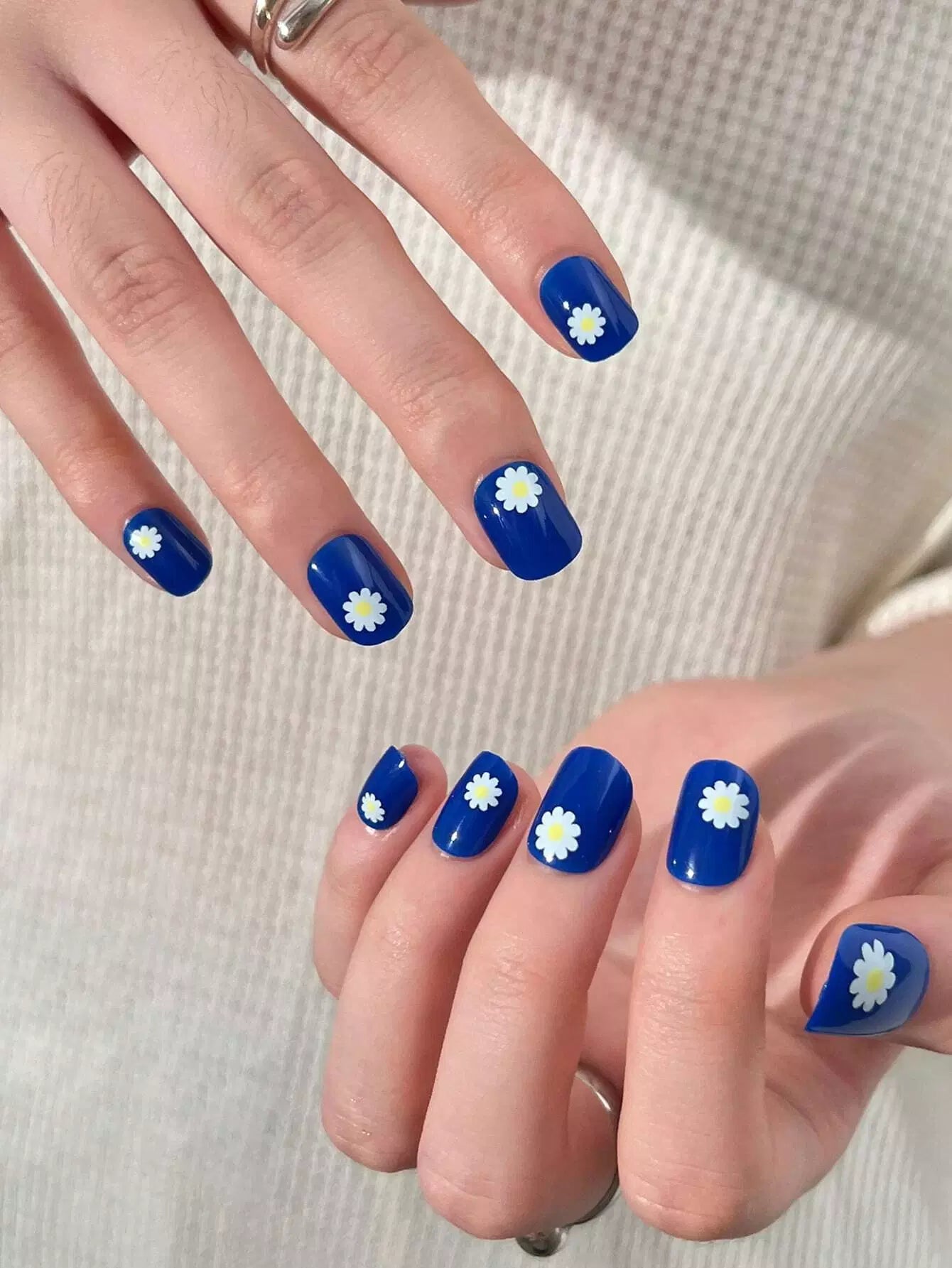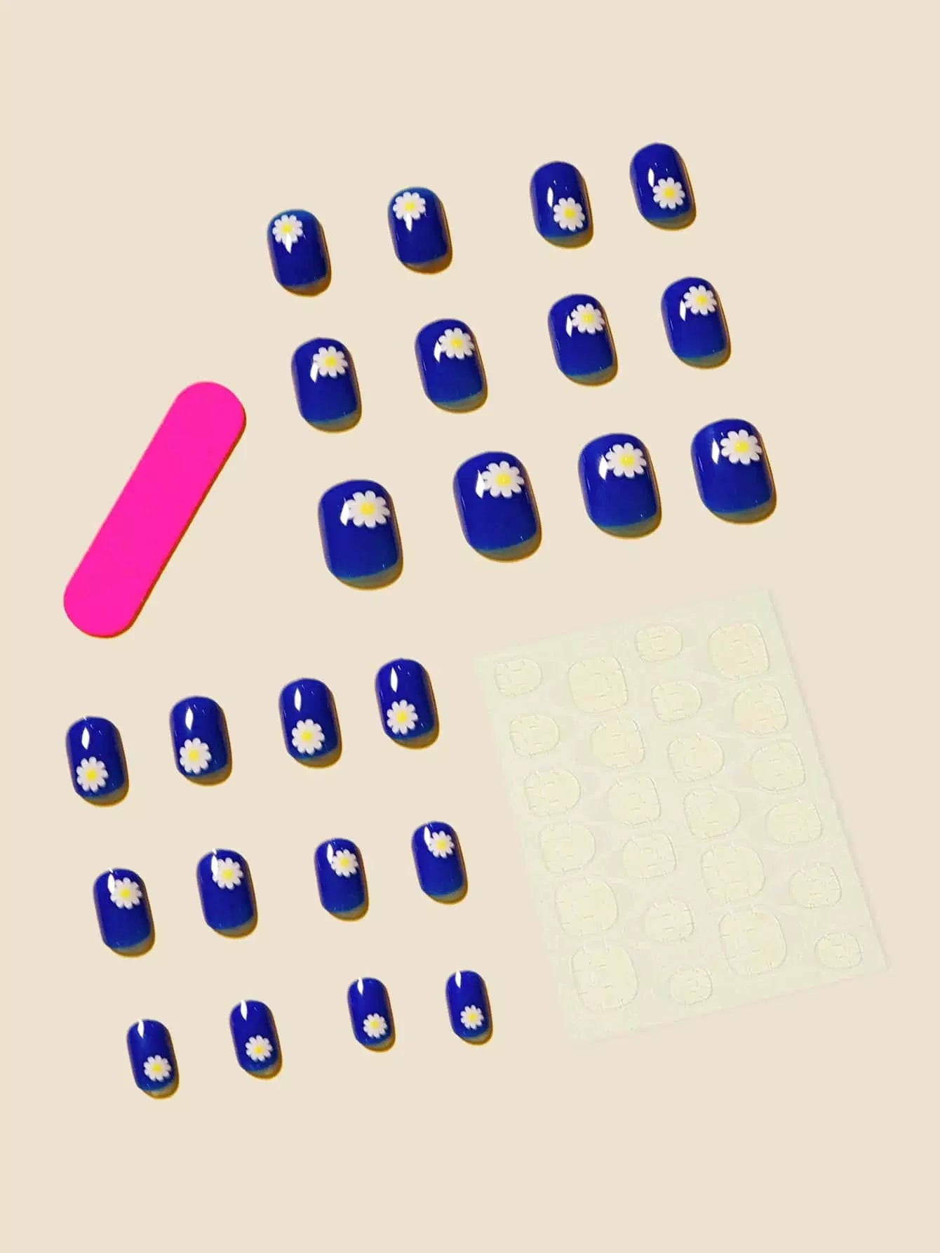 24 قطعة أظافر مزيفة بنقشة زهور و1 شريط لاصق و1 قطعة مبرد أظافر