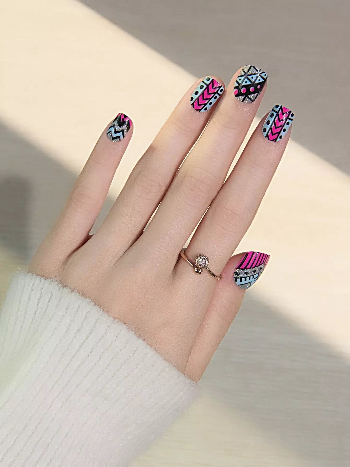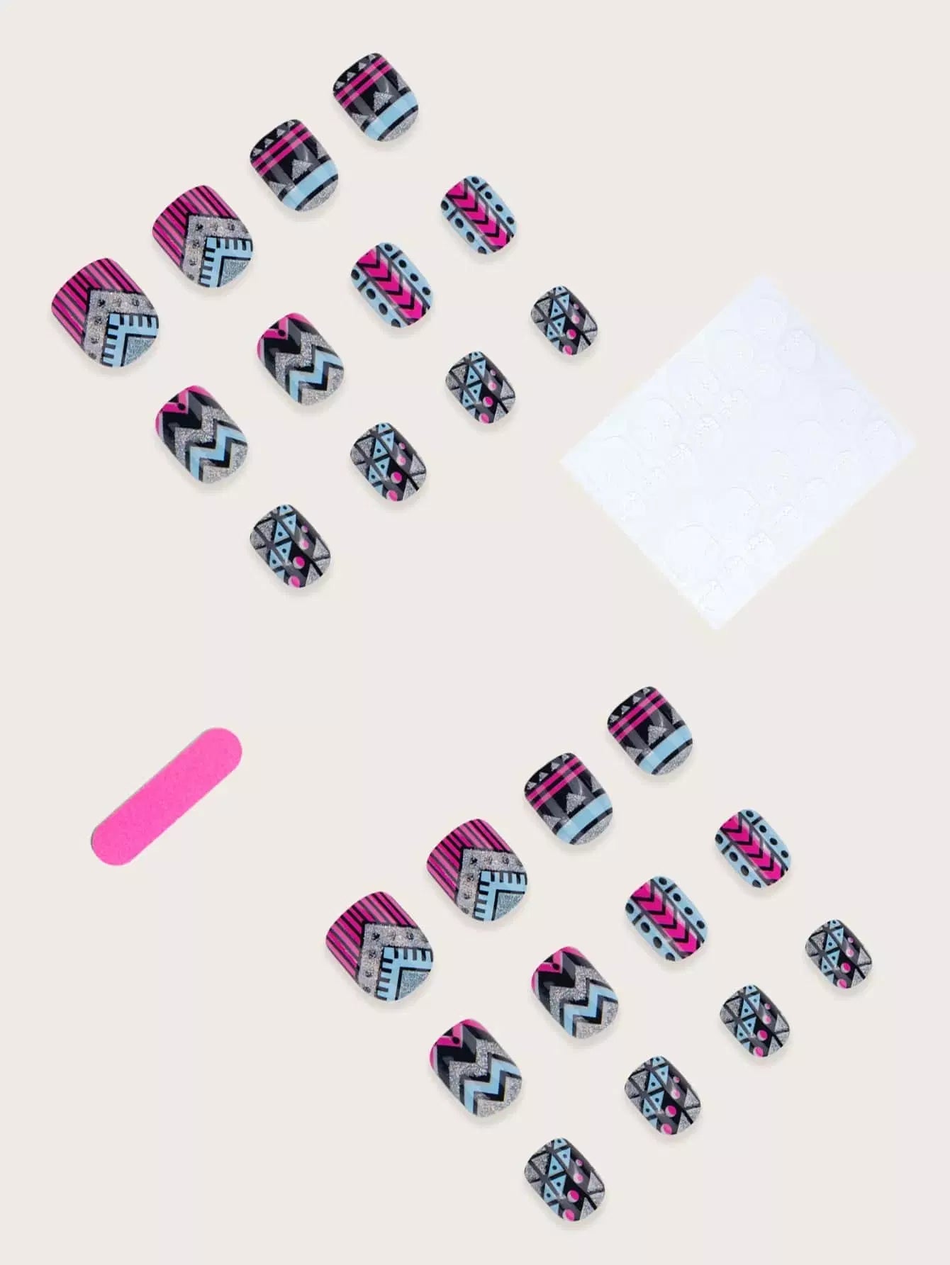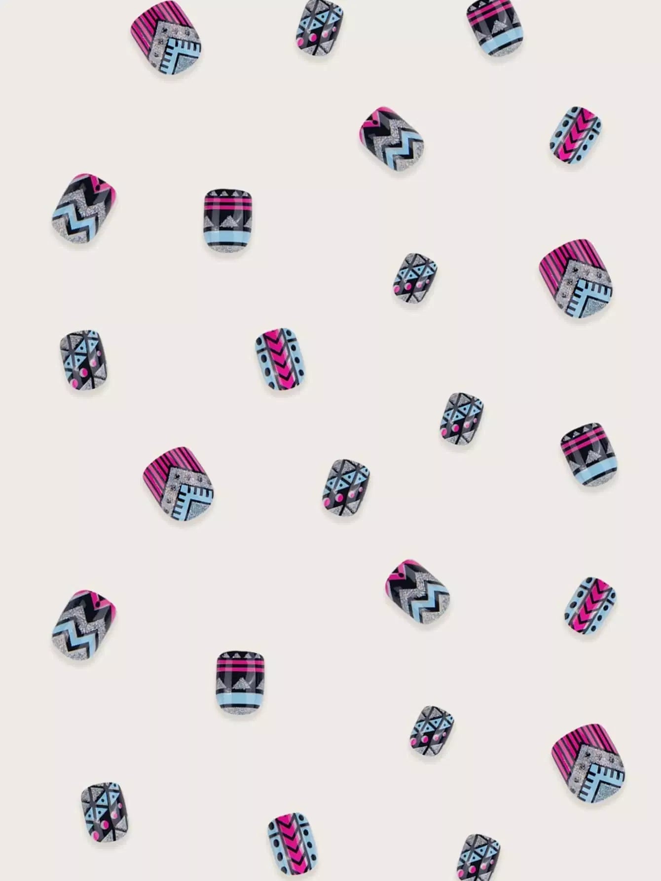 24 قطعة أظافر صناعية جرافيك جرافيك و1 شريط لاصق و1 قطعة مبرد أظافر