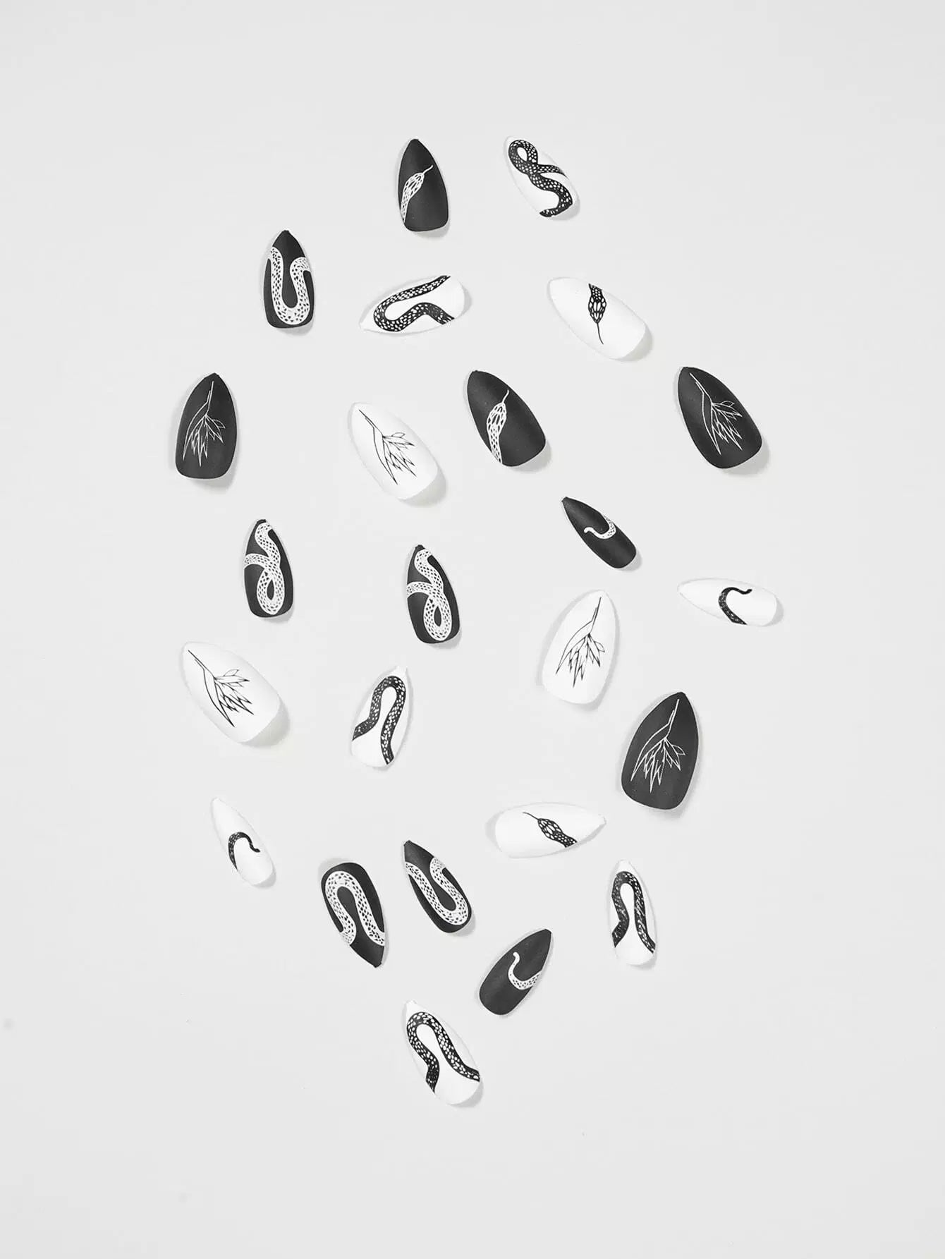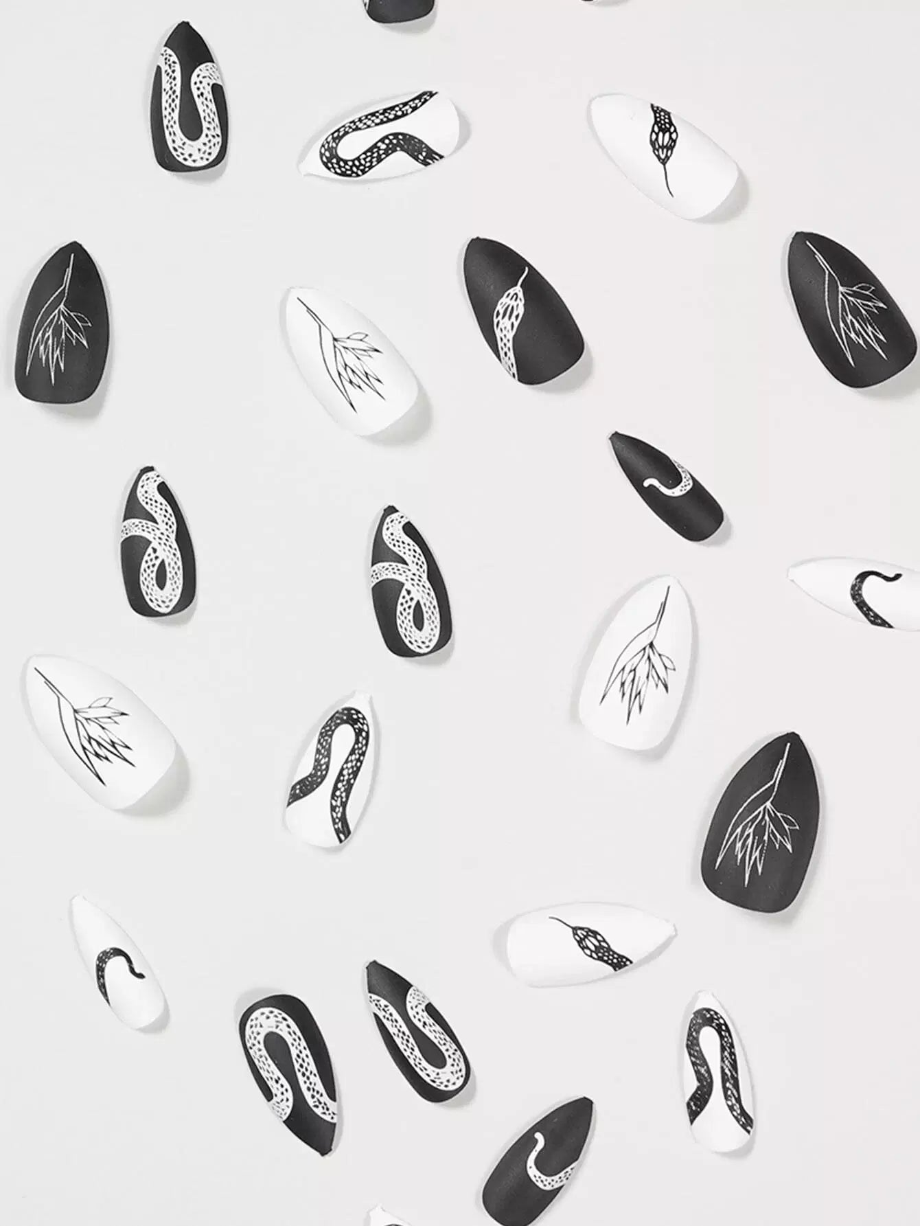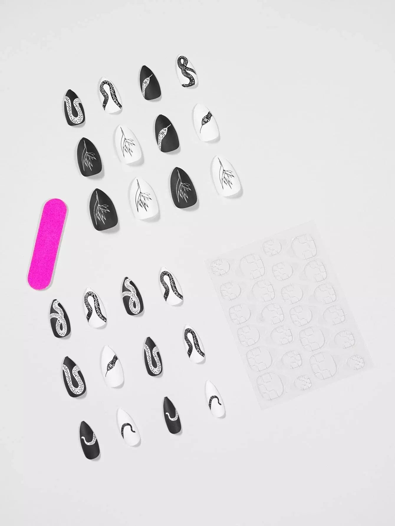 للنساء - 24 قطعة من الأظافر المزيفة بطباعة أوراق الشجر وشريط واحد وقطعة واحدة من مبرد الأظافر