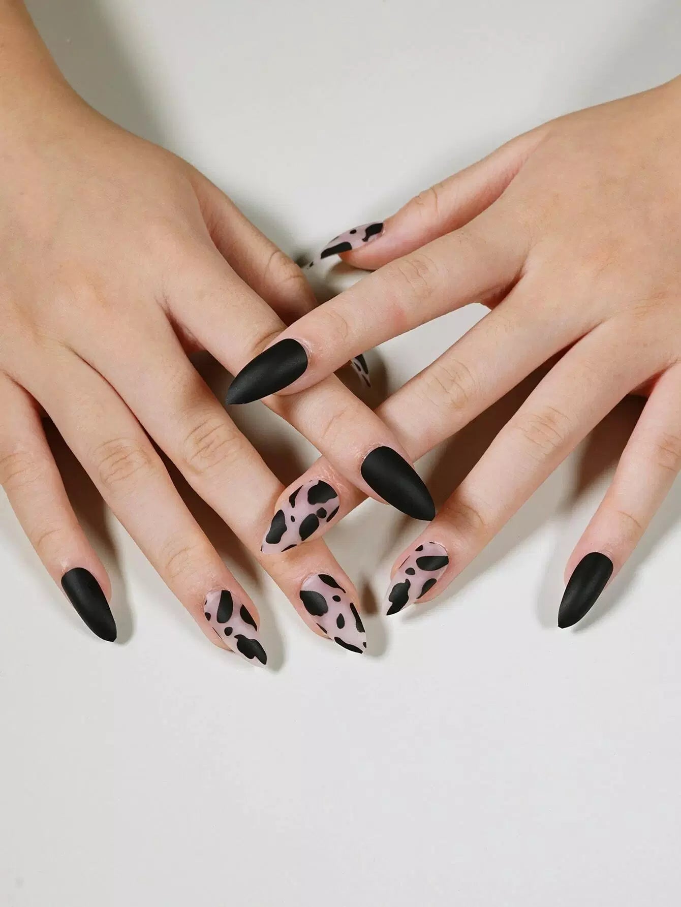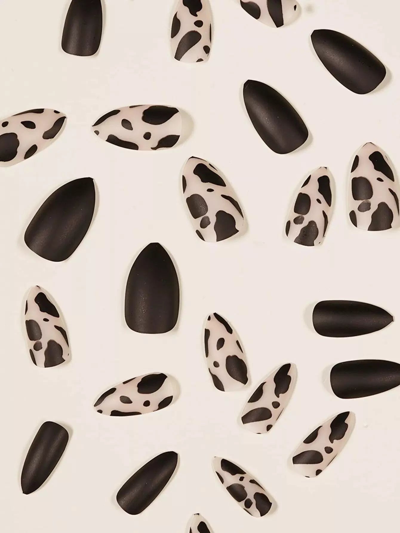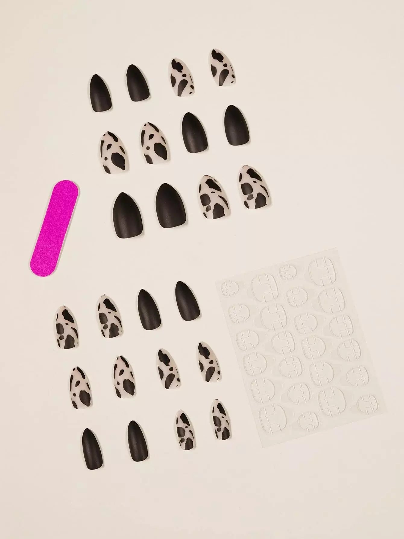 مجموعة أظافر صناعية مطبوعة بطبعات البقرة والسادة ومبرد أظافر