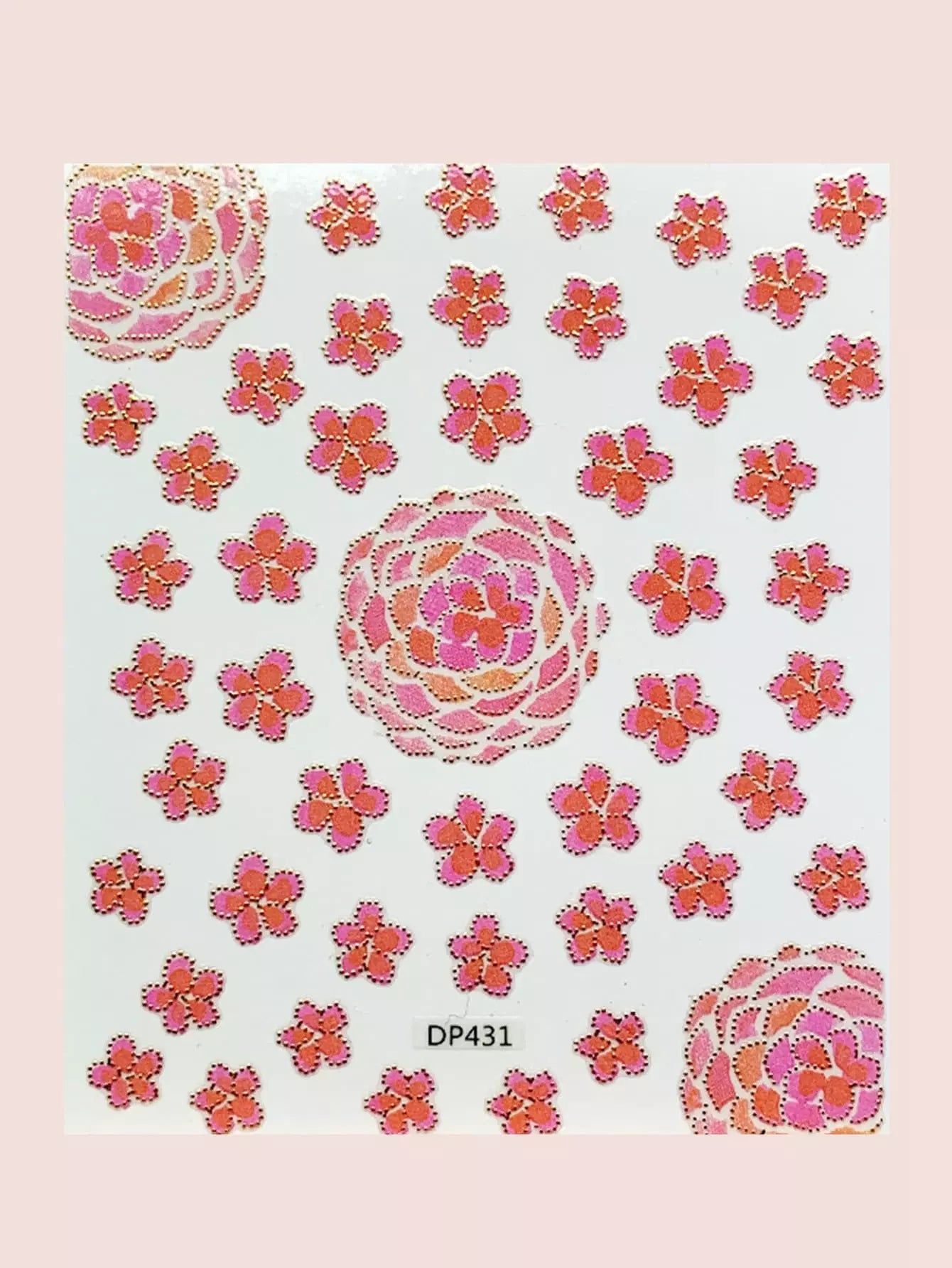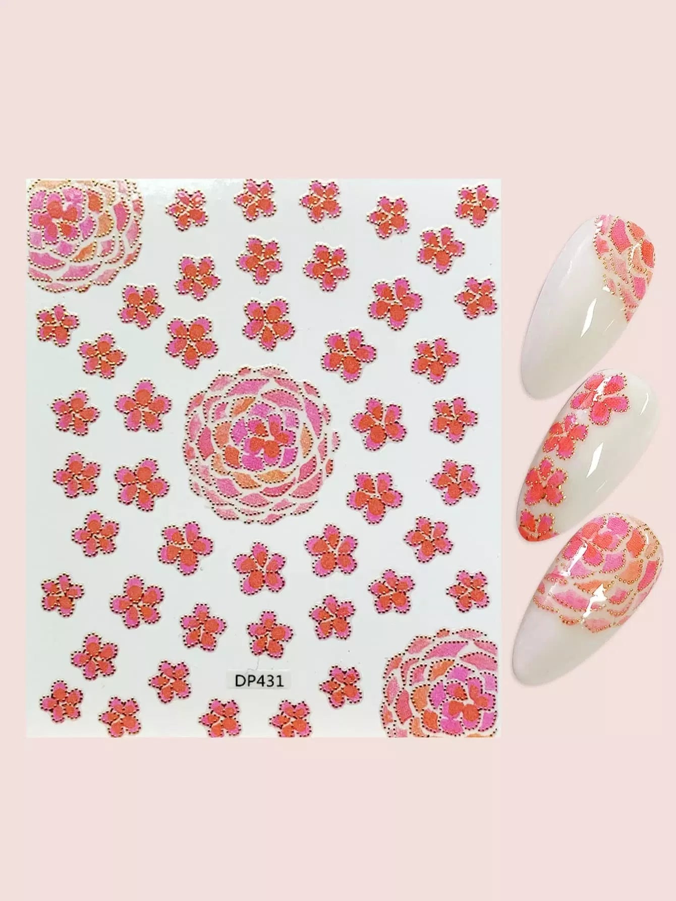 1 ورقة من ملصقات الأظافر بنمط الزهور