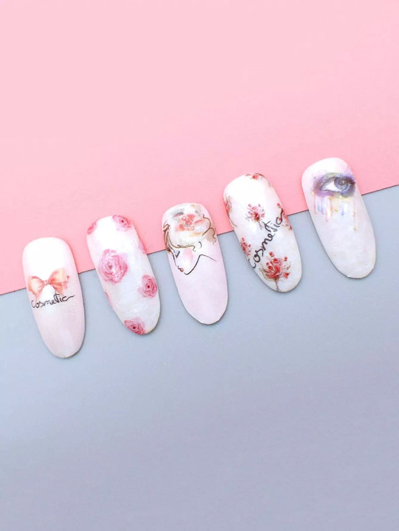24 قطعة ملصق فن الأظافر بنقشة الورود 24 قطعة