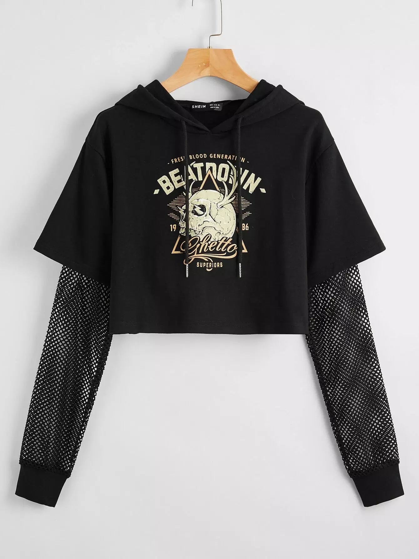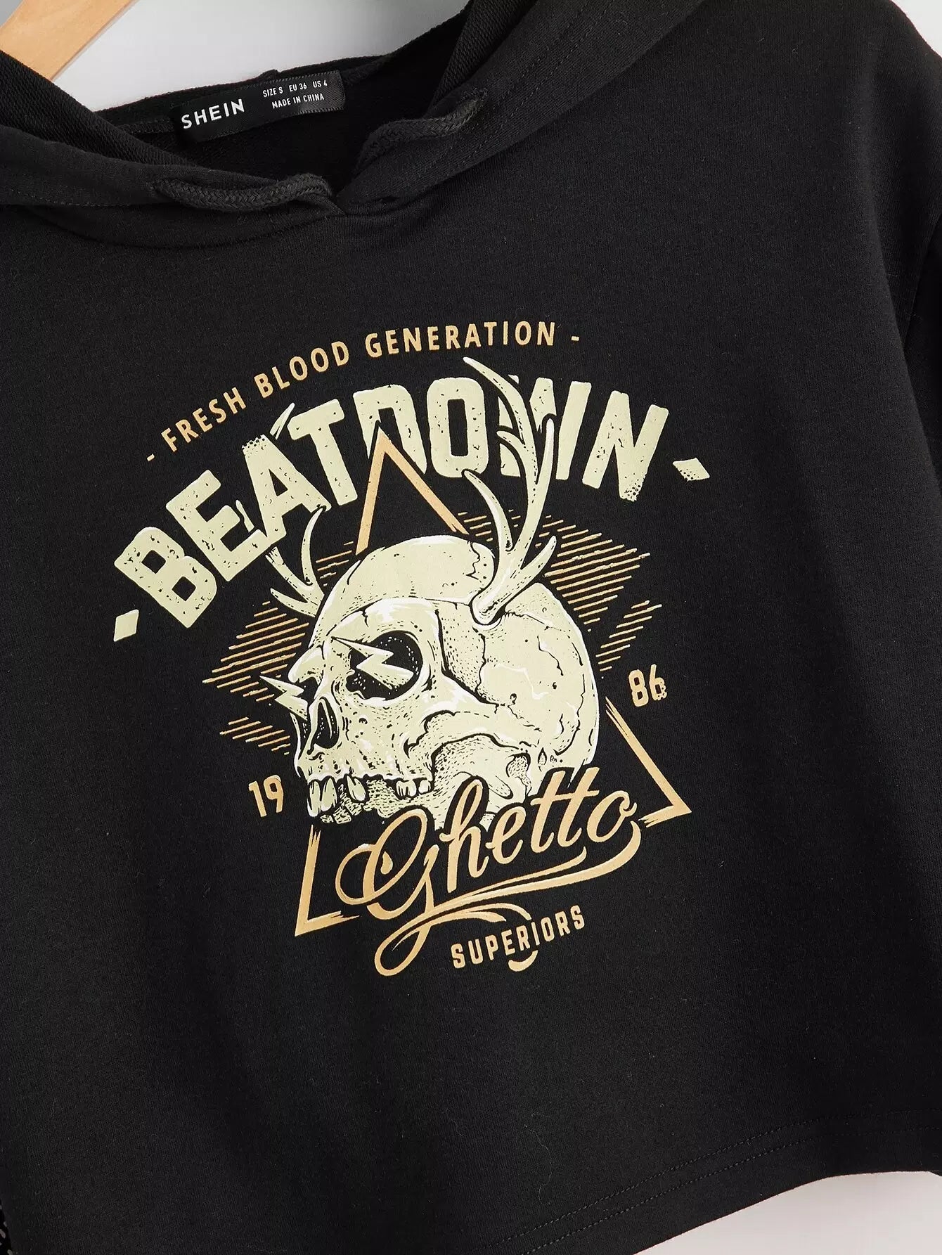 سويت شيرت 2 في 1 جمجمة وشعار جرافيك جرافيك 2 في 1