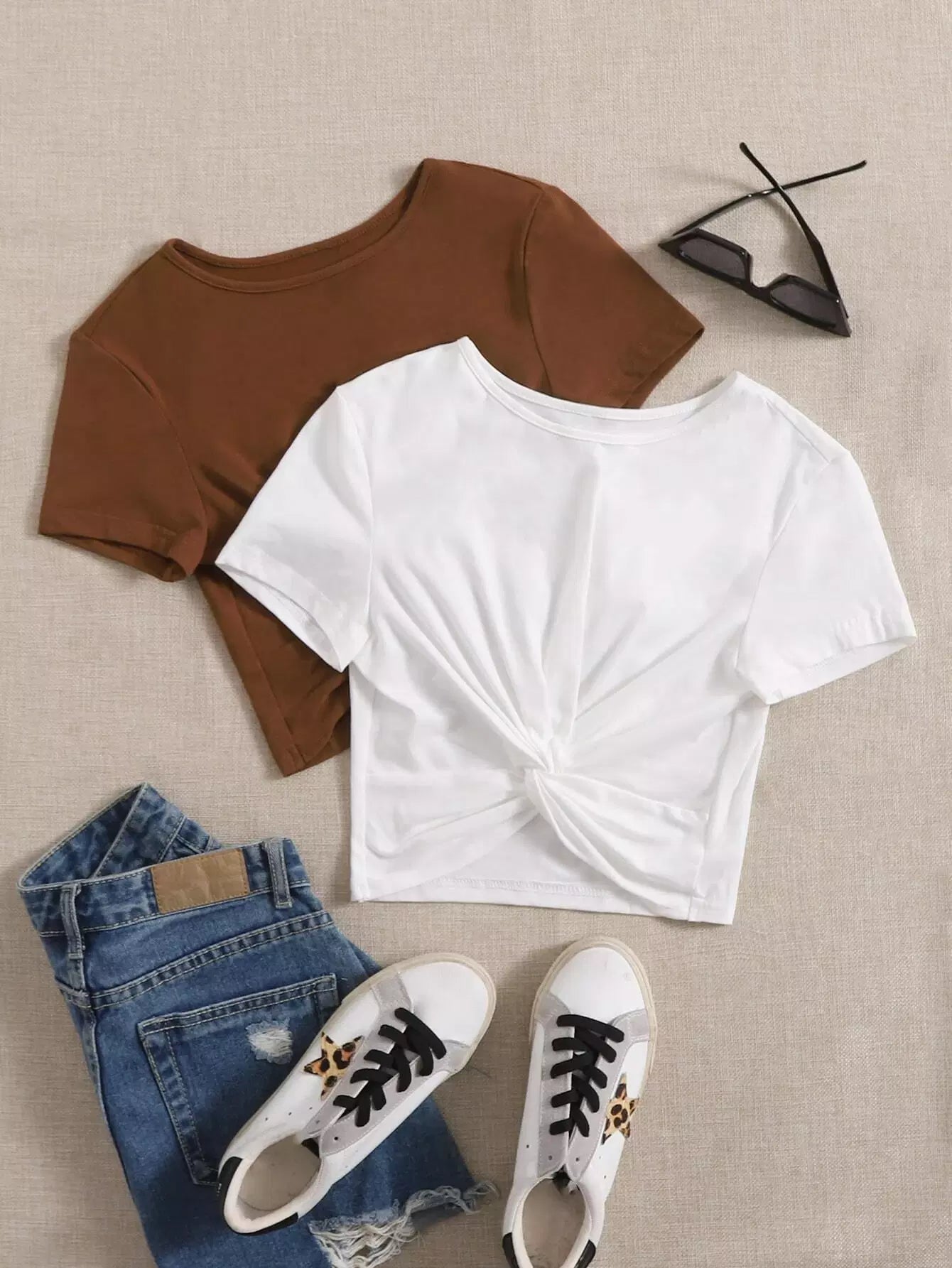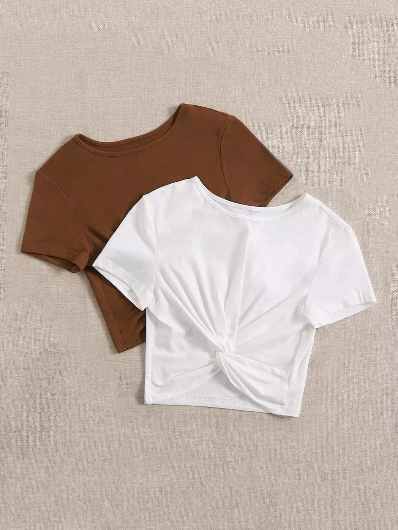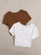 2 قطعة تي شيرت أمامي ملتوي سادة 2 قطعة