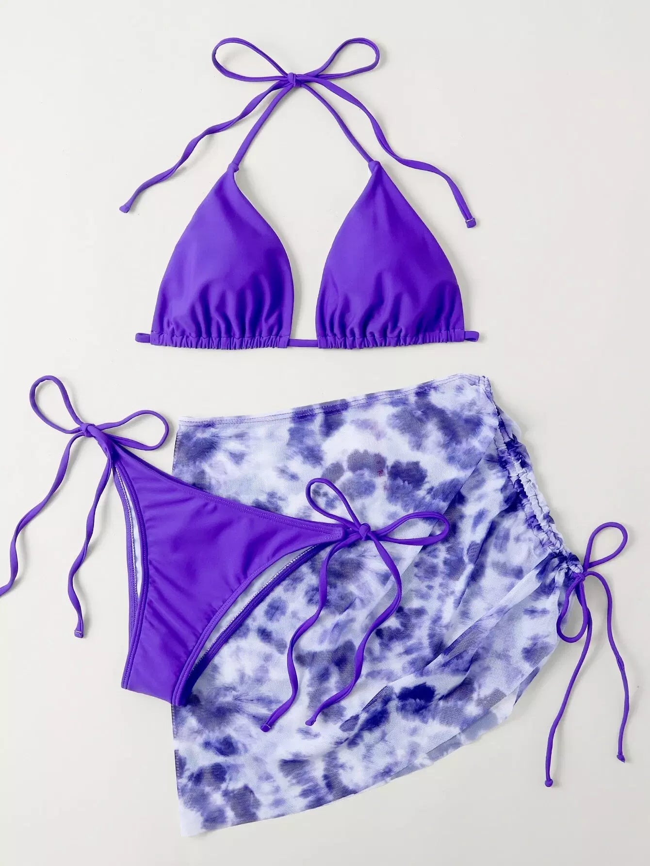 مجموعة من 2 قطع من ملابس السباحة بيكيني بصبغة التعادل بدون تنورة الشاطئ