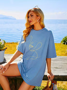 تي شيرت ذو أكتاف منسدلة جرافيك تجريدي الشكل منسدل الكتف