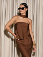 women AiiRZ Strapless Bardot Top With Scarf & Maxi Skirt SET