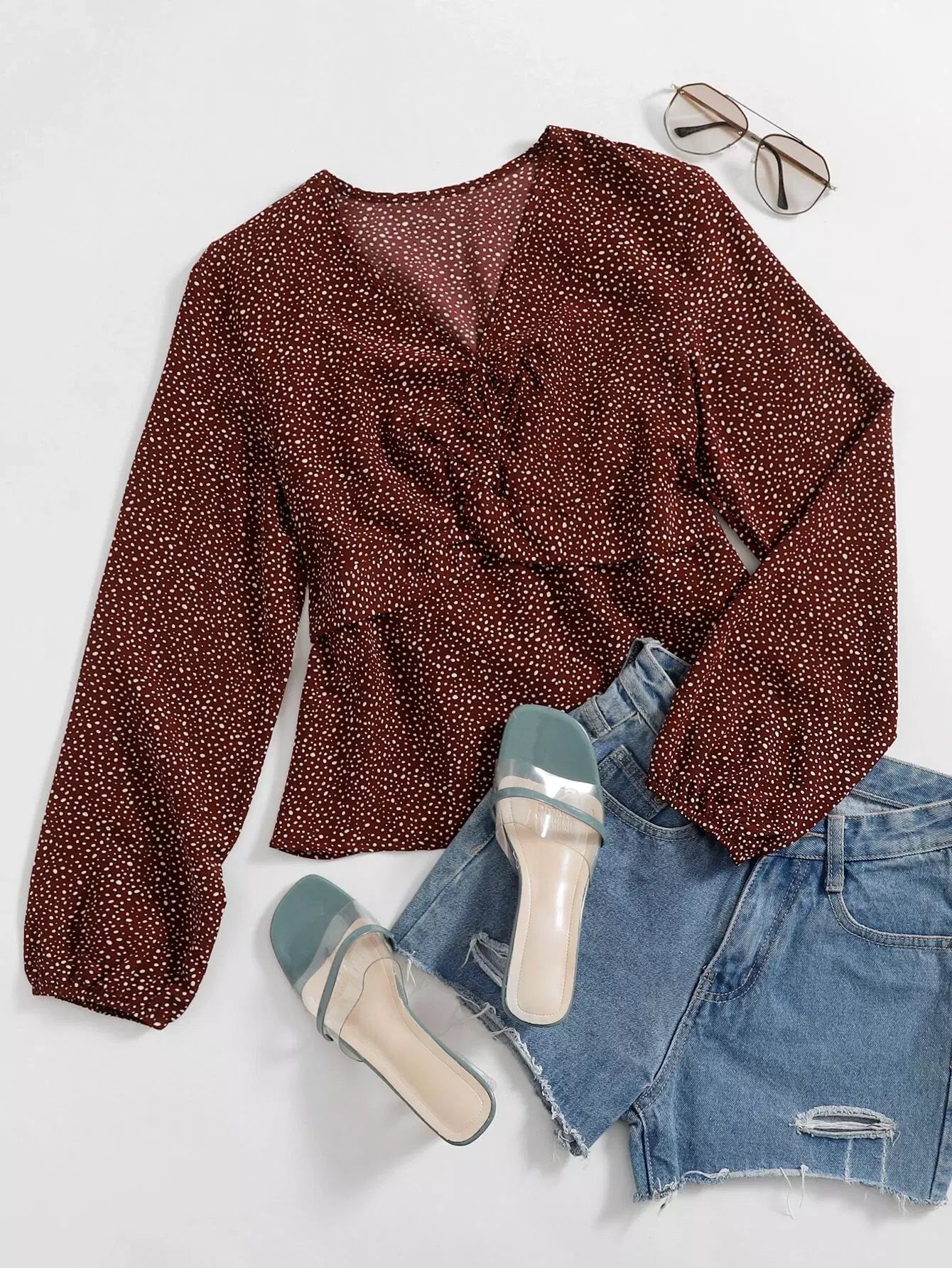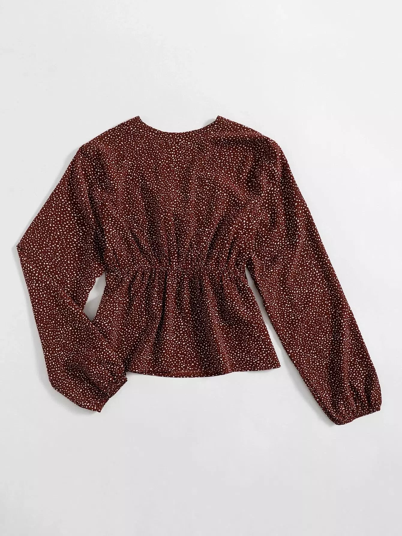 بلوزة ببلوم بطبعة كاملة مع ثنيات أمامية