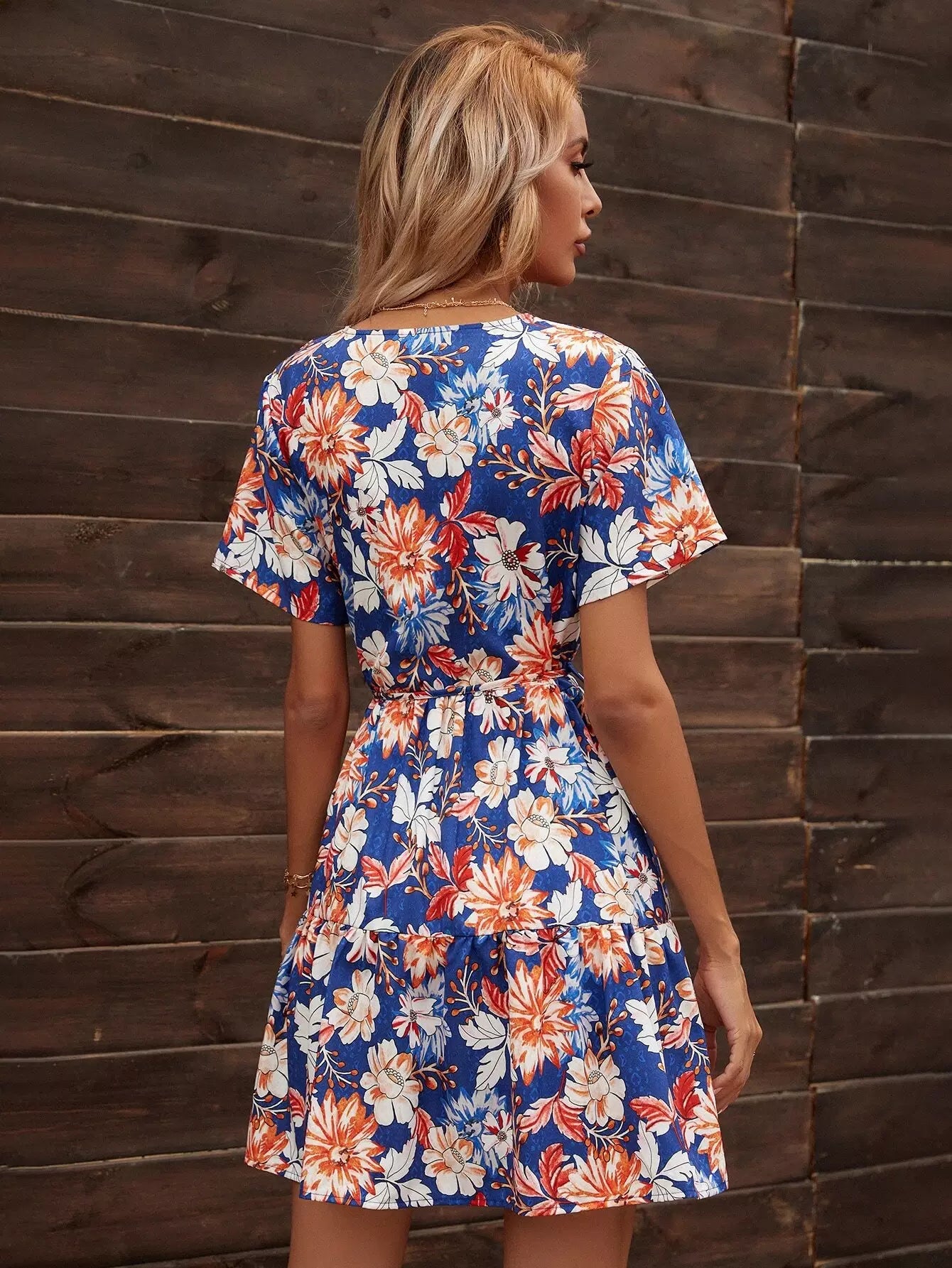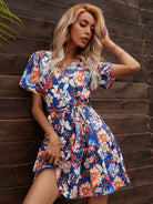فستان على شكل حرف A من الزهور بدون حزام