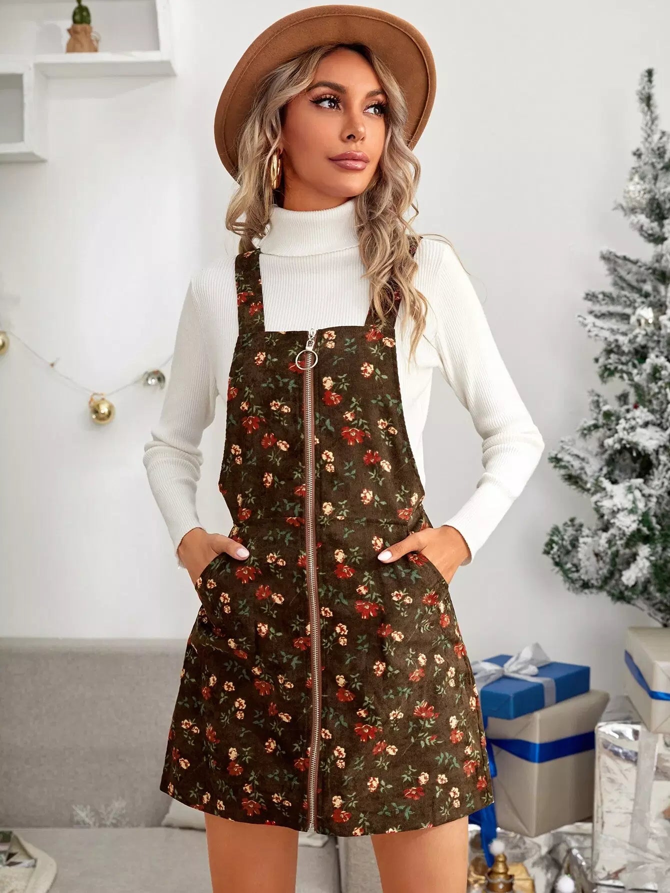 النساء - فستان سروال قصير بسحّاب ومزين بالزهور بالكامل