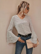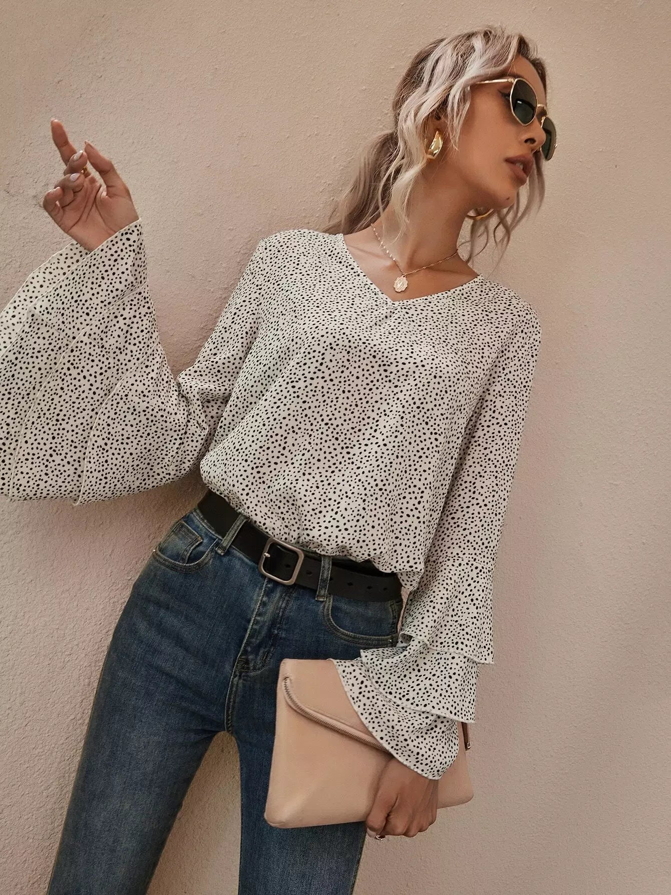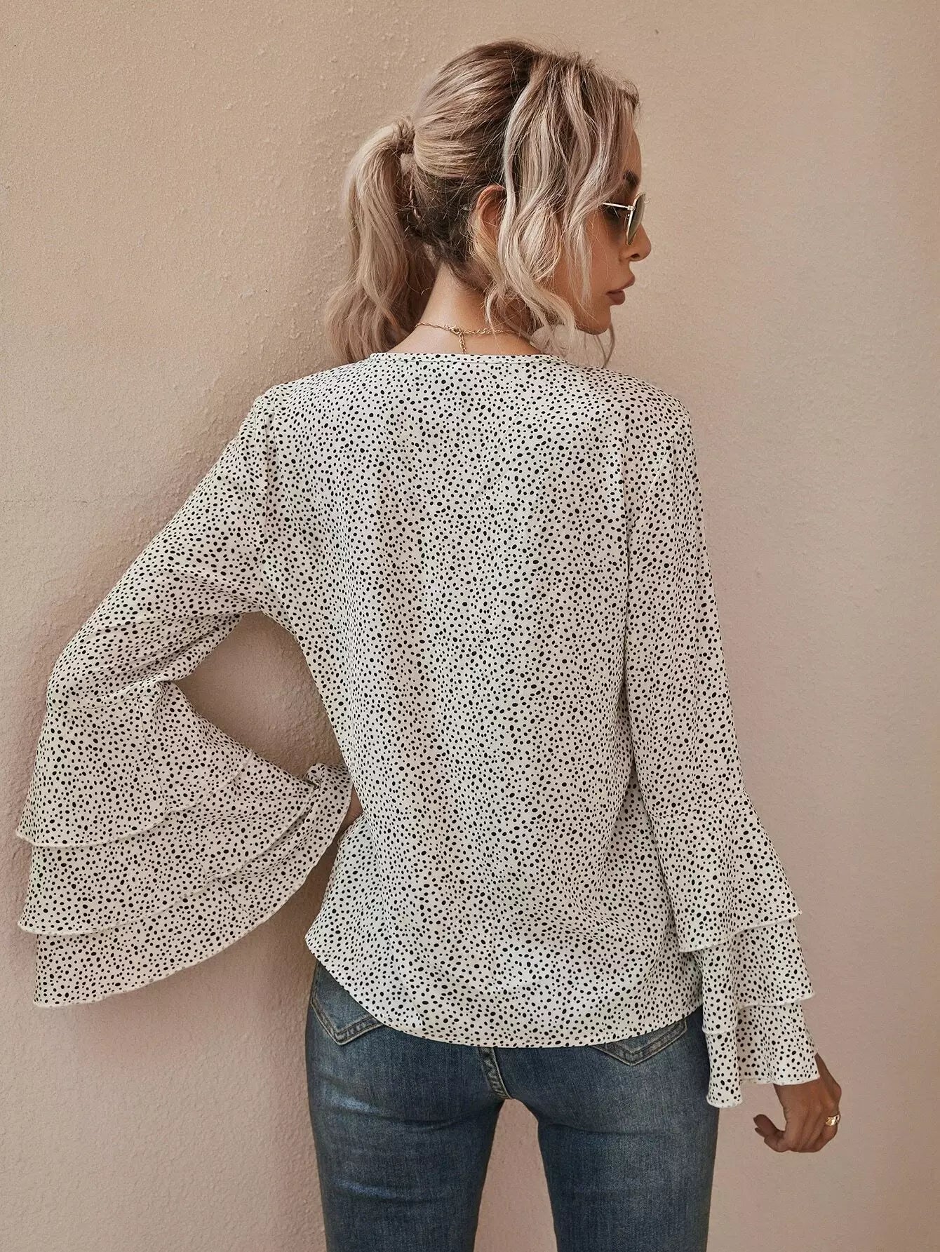 بلوزة بأكمام من طبقات مطبوعة بالكامل