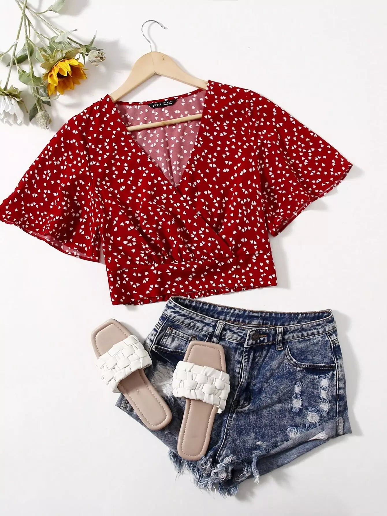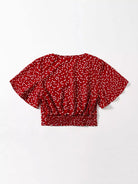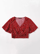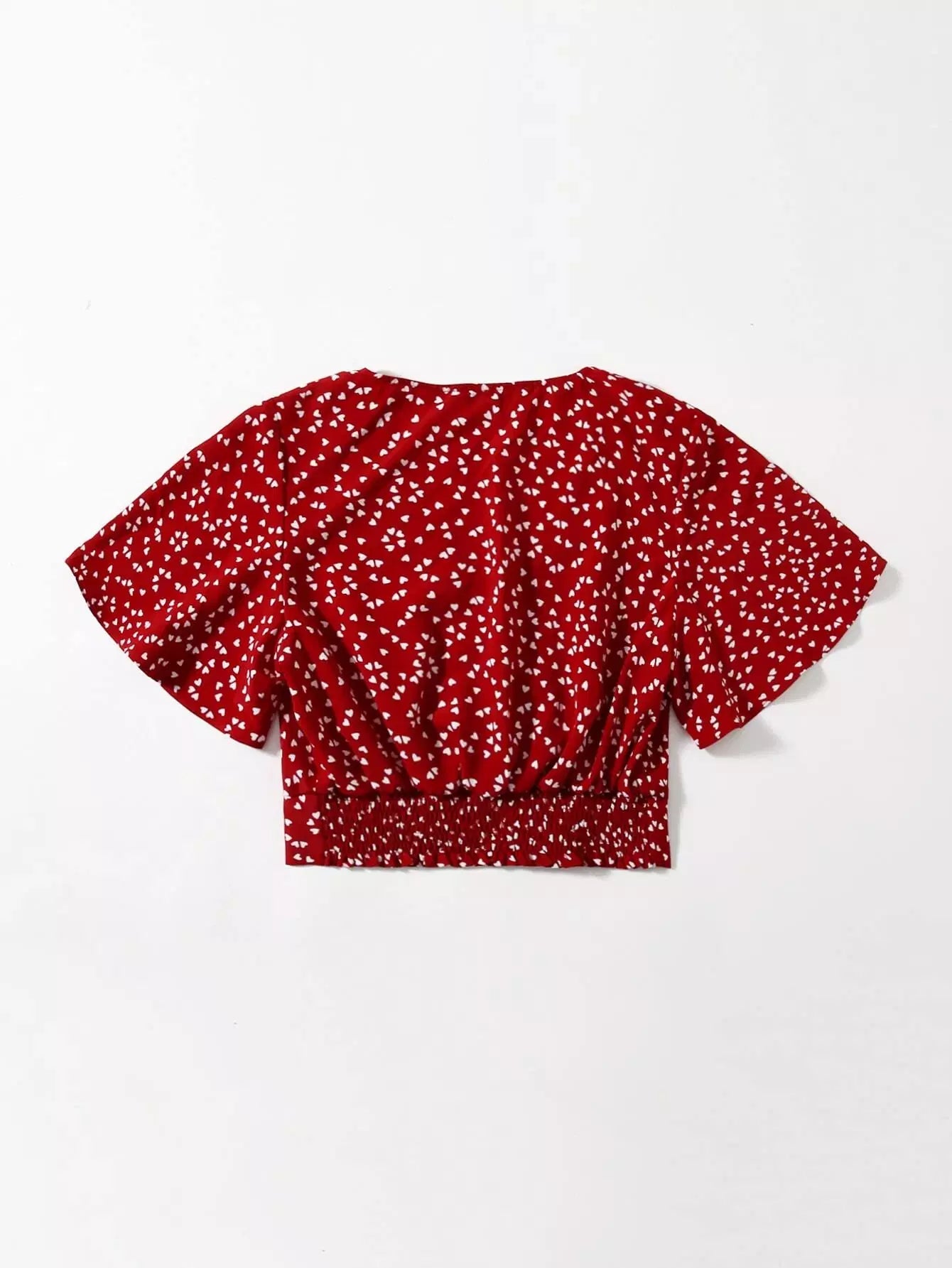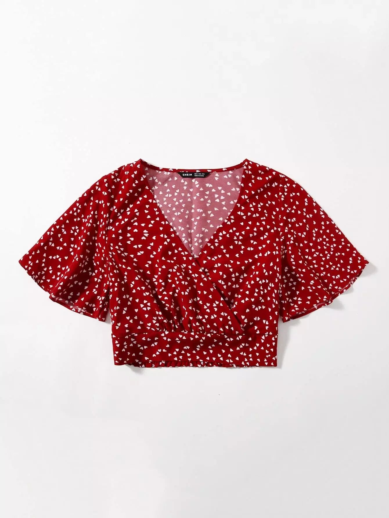 بلوزة بأكمام على شكل فراشة مطبوع عليها قلب