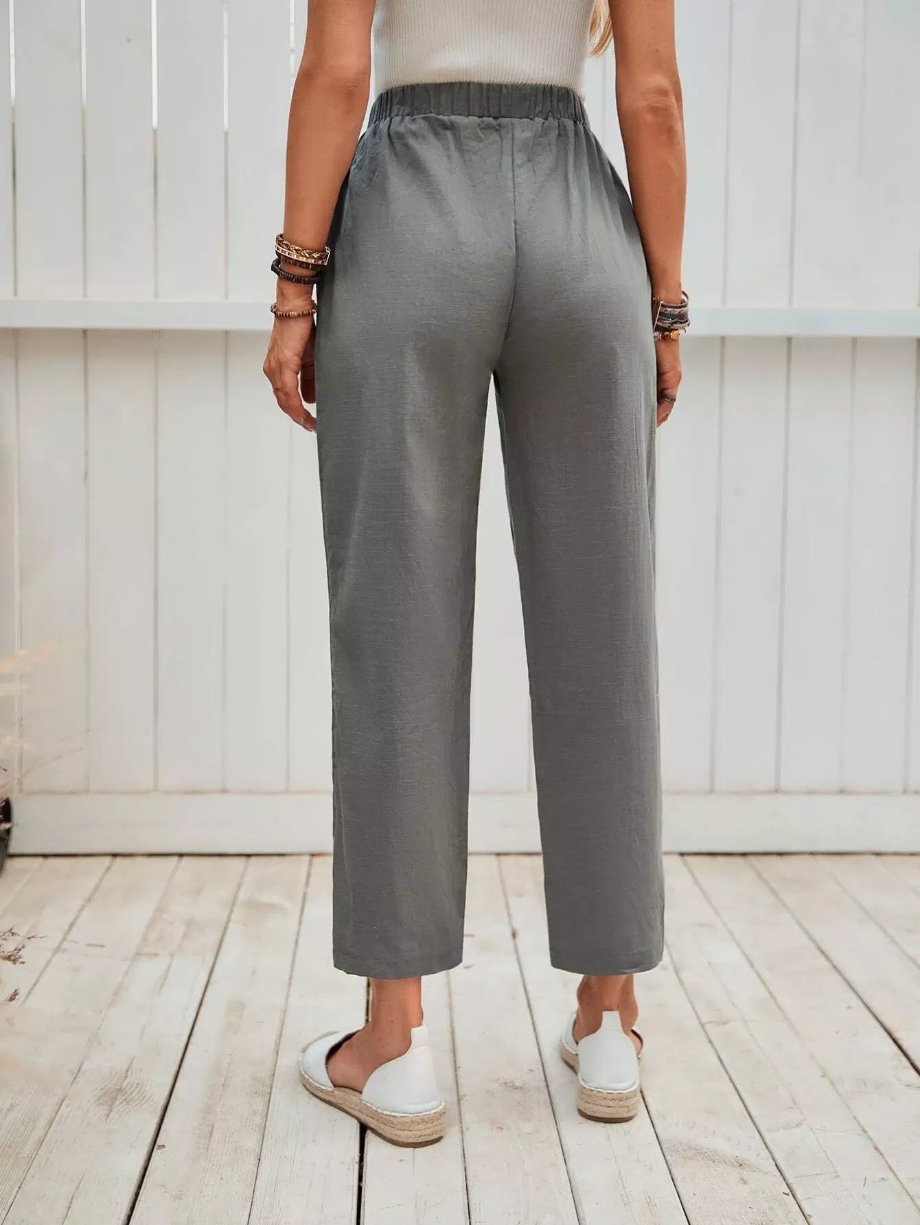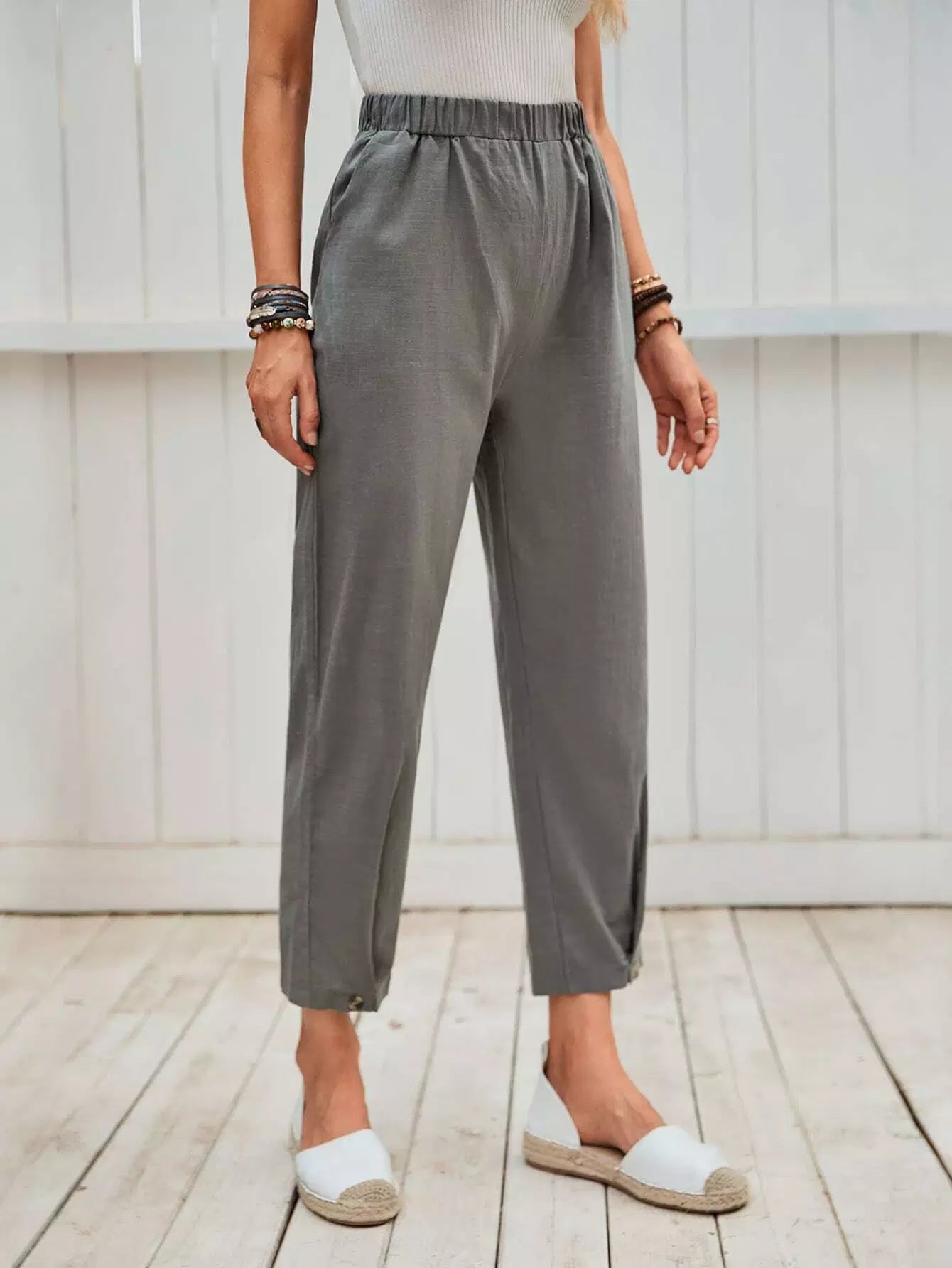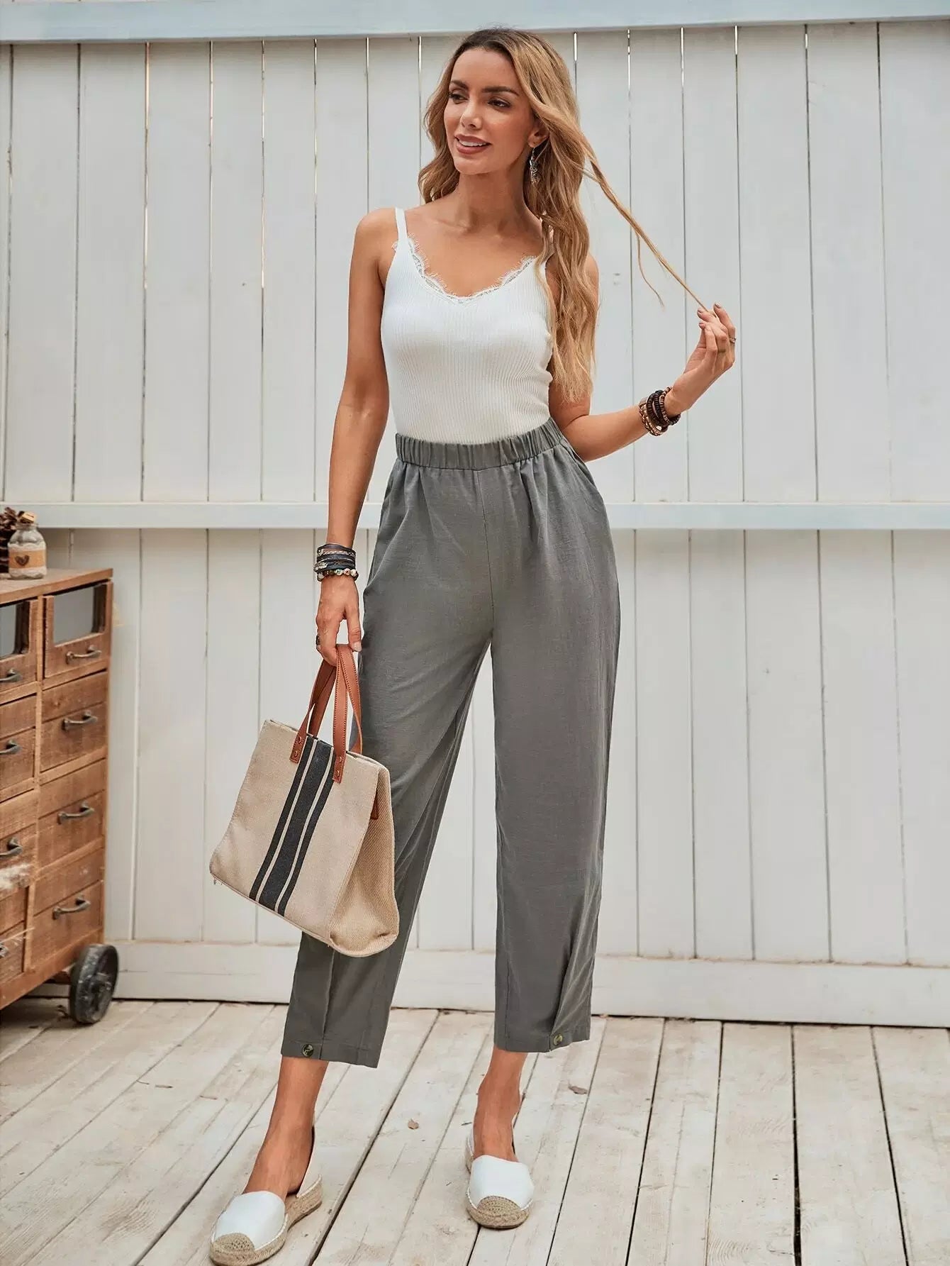 بنطلون بحاشية بأزرار بأرجل مستقيمة