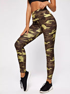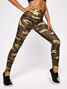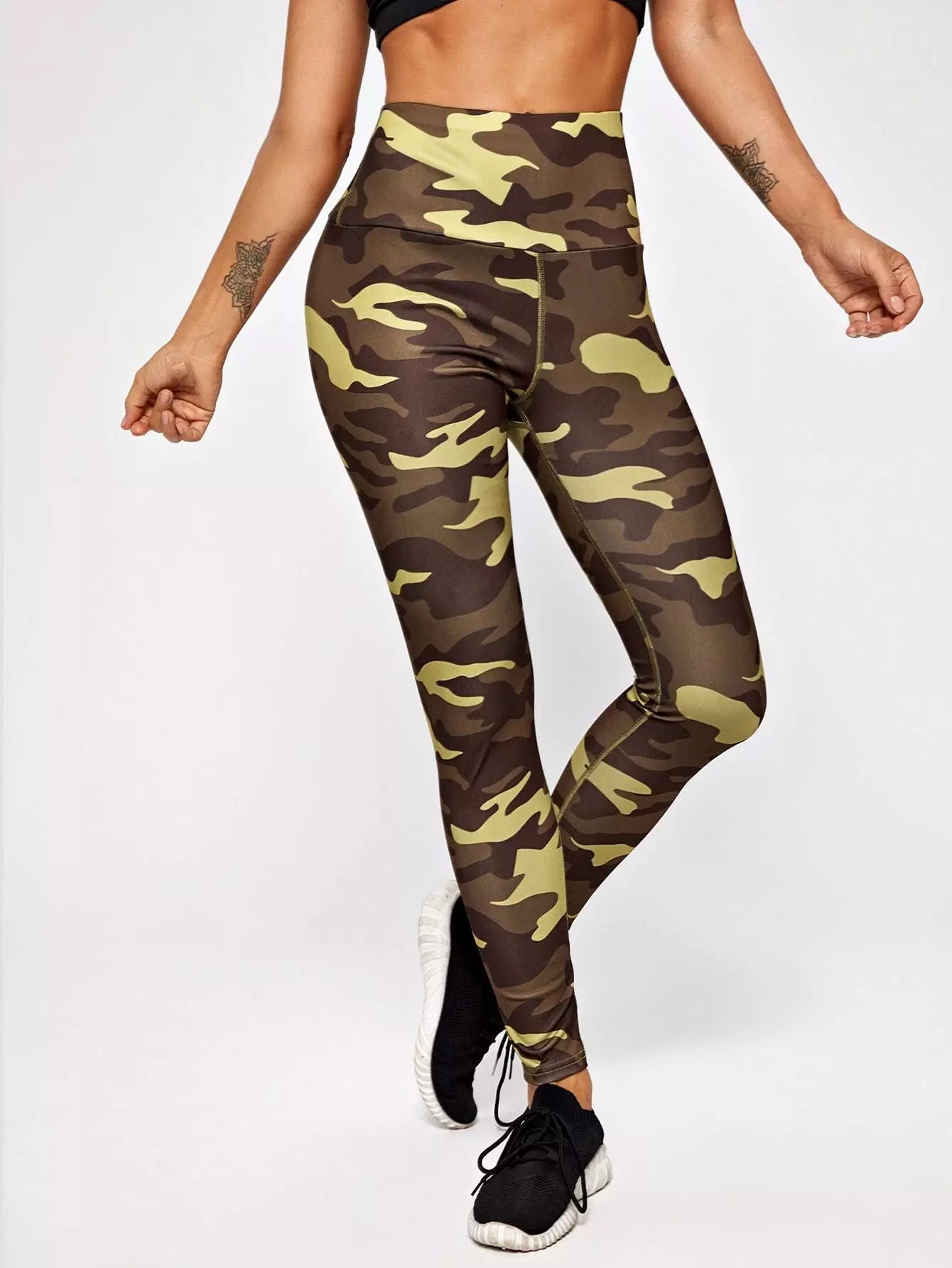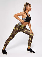 بنطال ضيق رياضي بحزام خصر عريض مطبوع بطبعة كامو