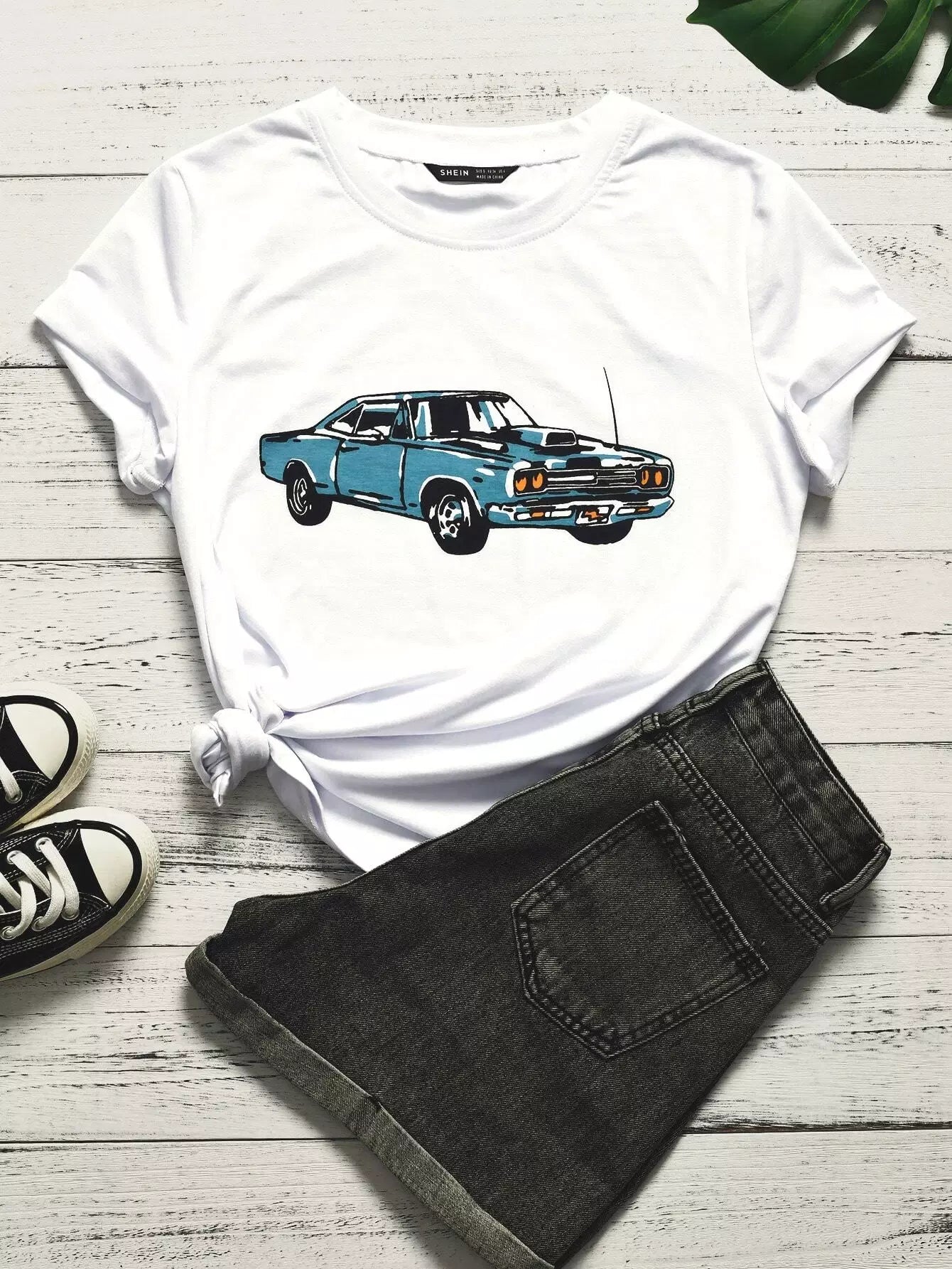 للنساء - تي شيرت بأكمام قصيرة وطبعة سيارة