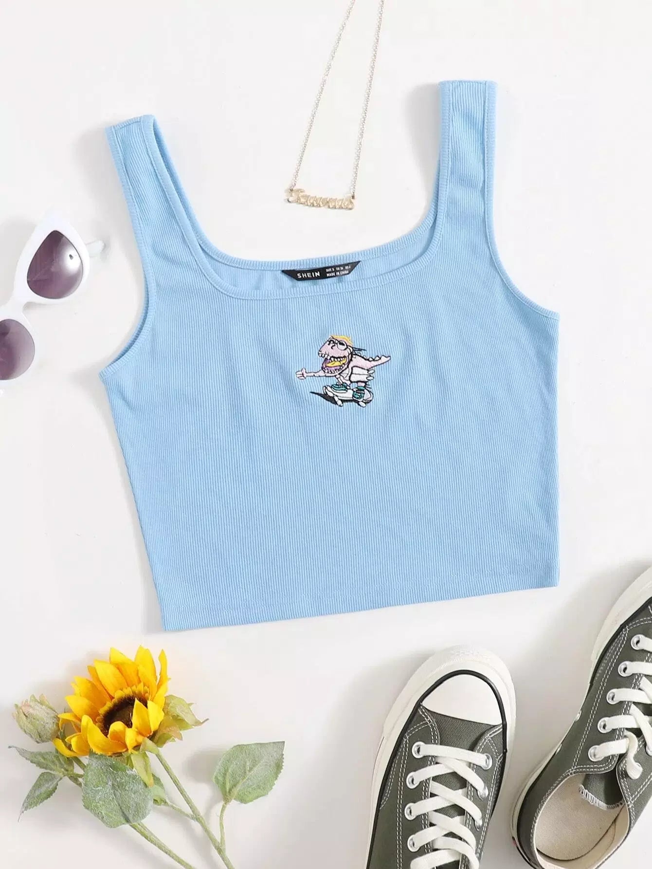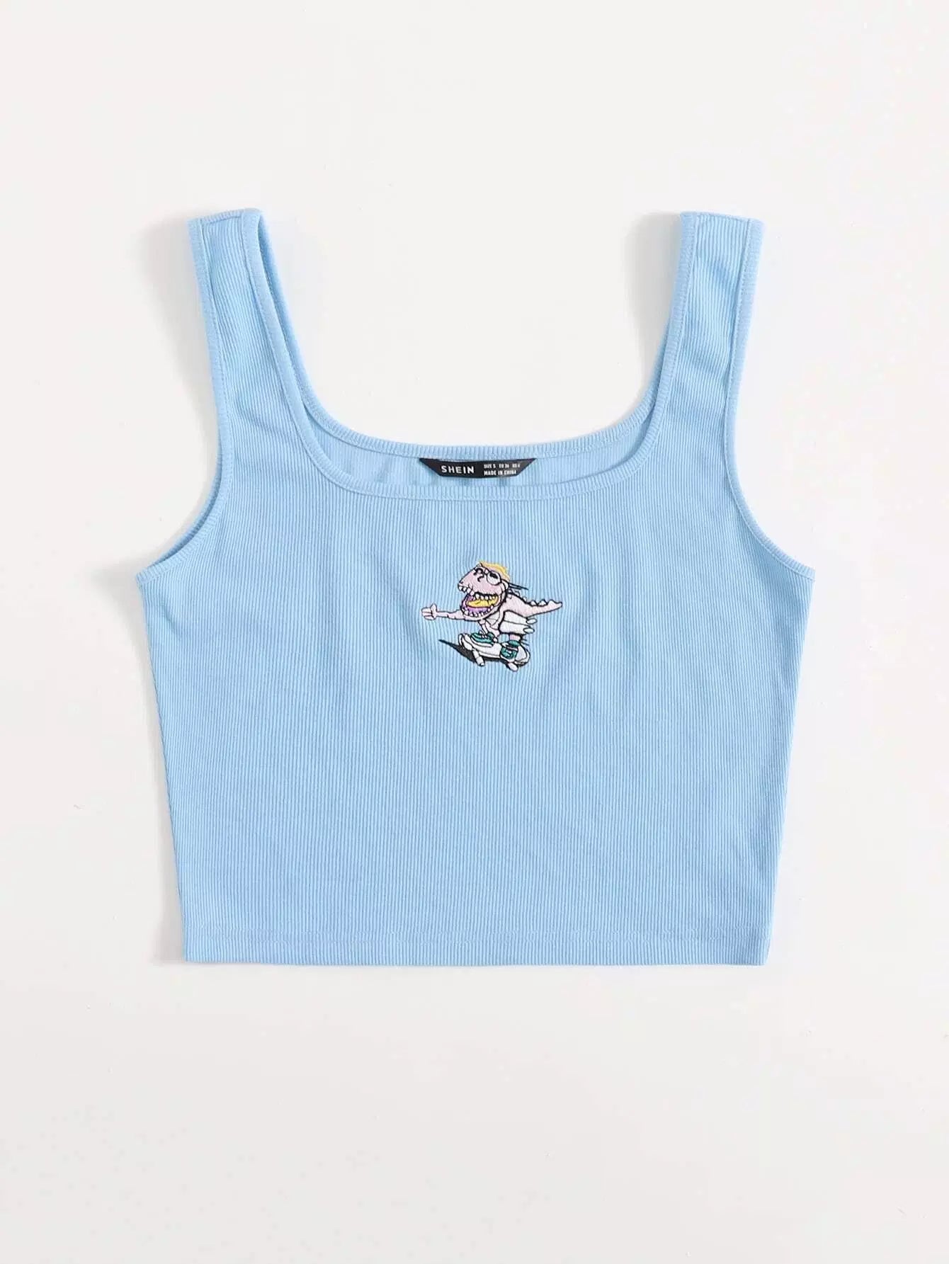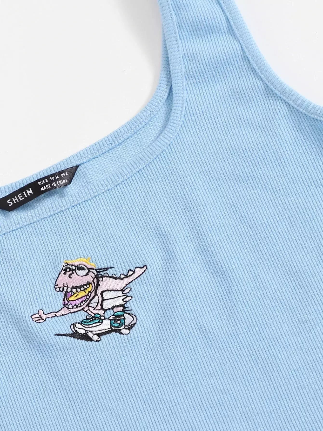 تانك بدون أكمام مطرز بتطريزات كرتونية على شكل ضلع محبوك