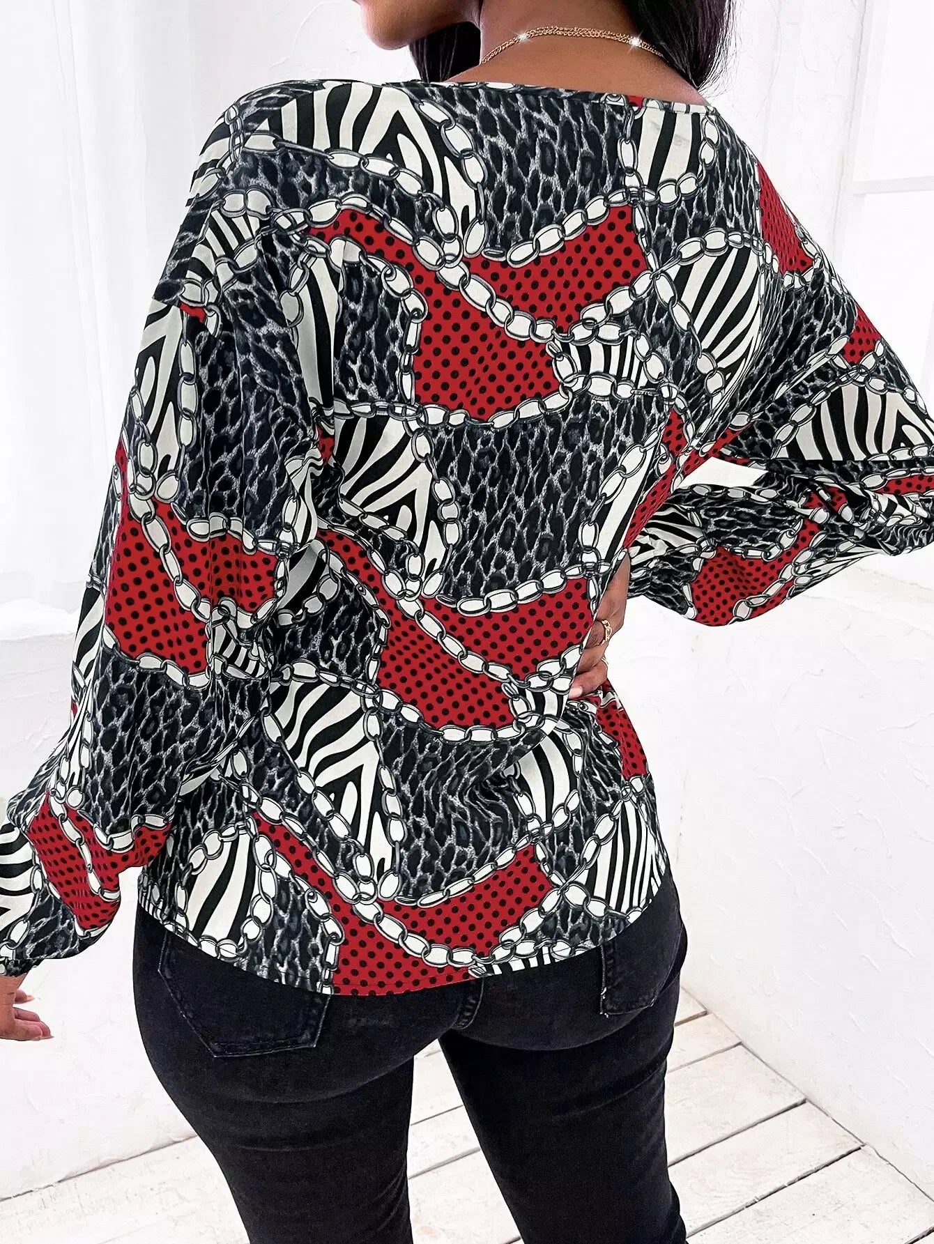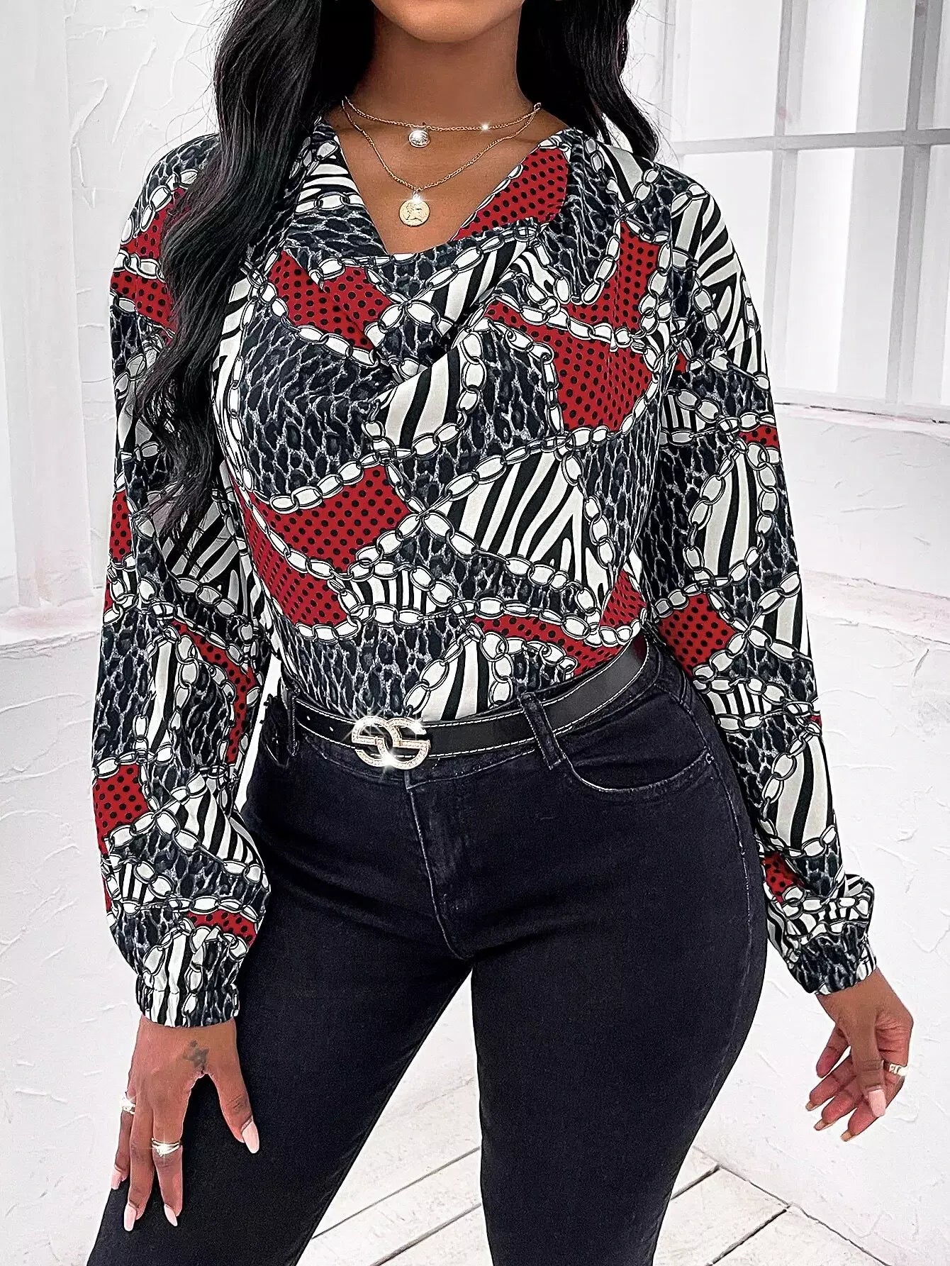بلوزة بطبعة سلسلة ونقشة منقطة
