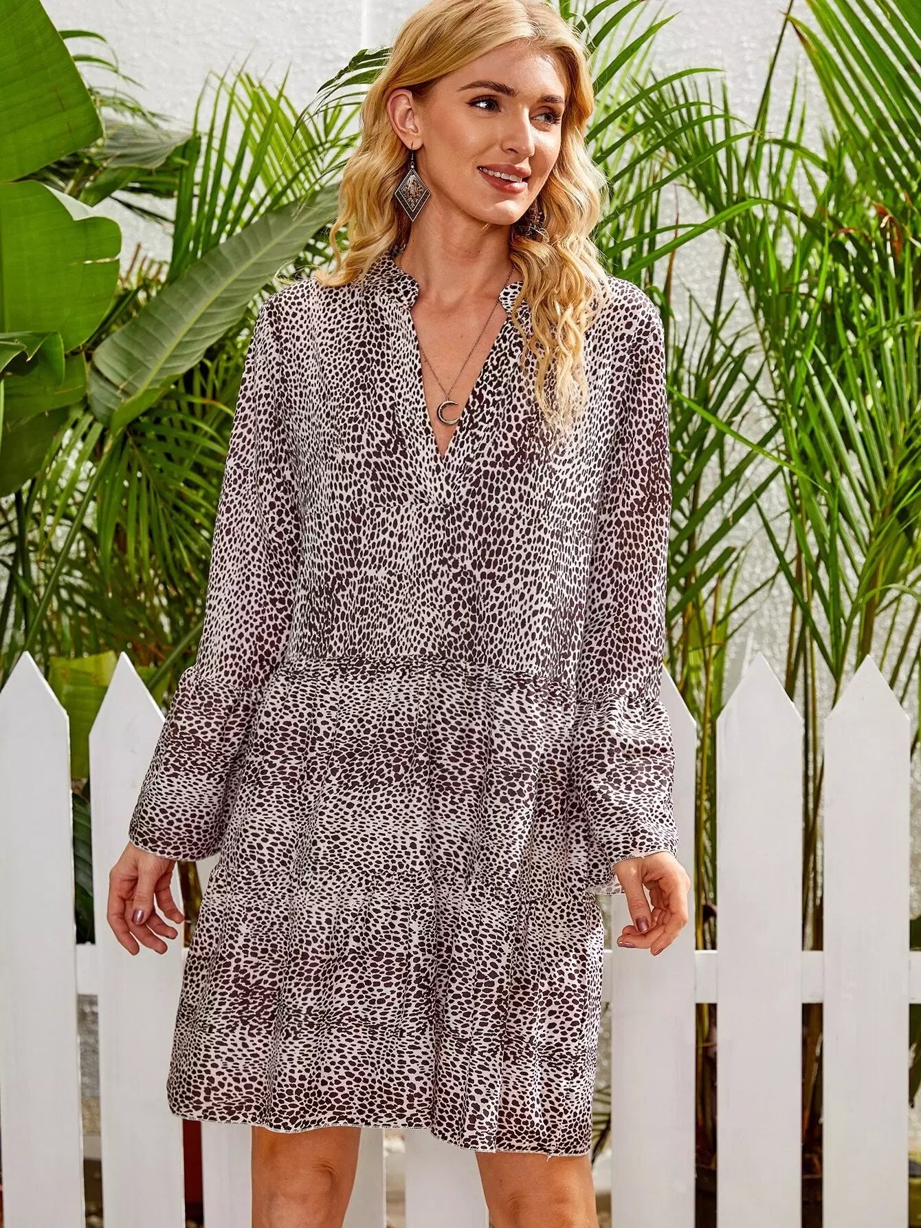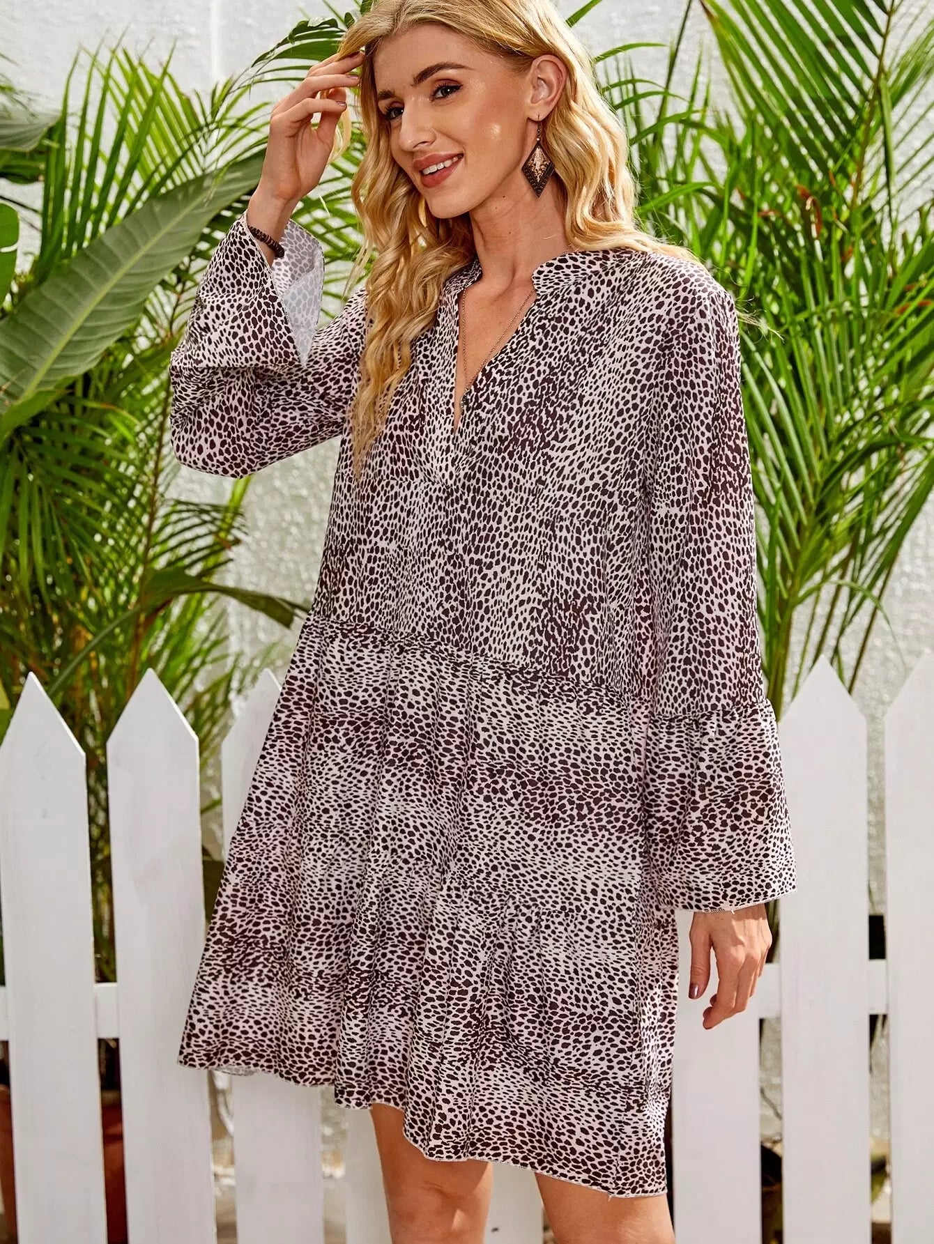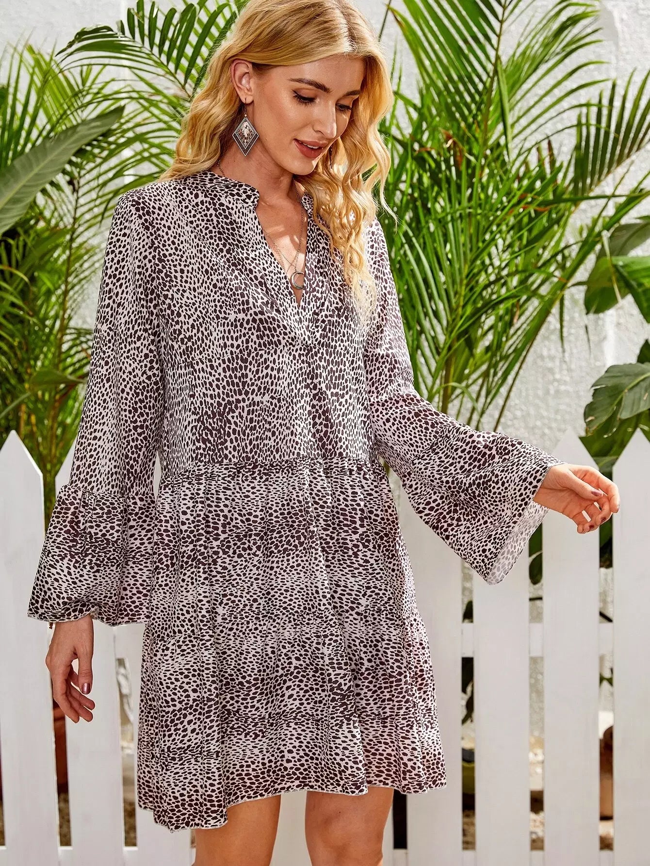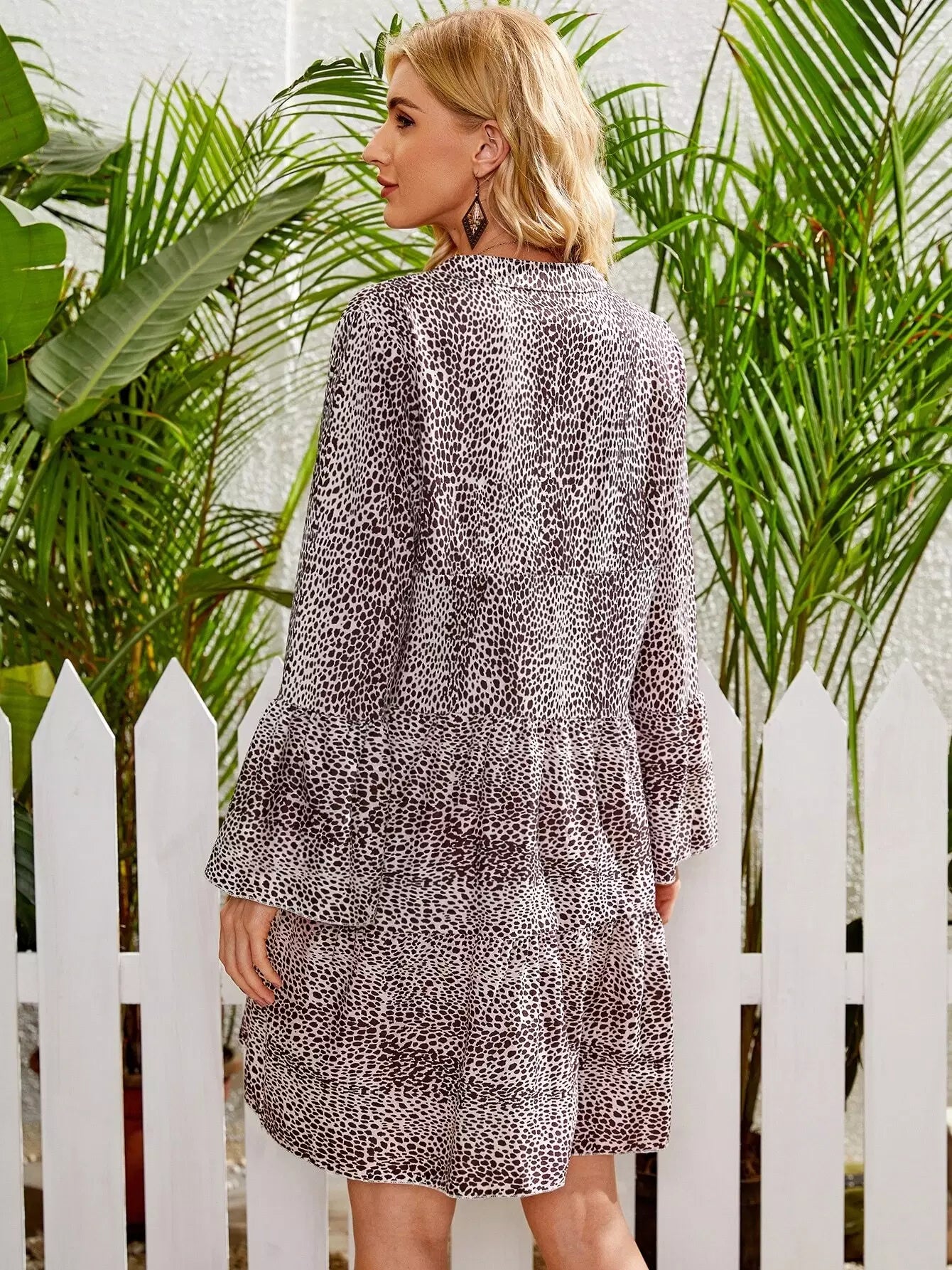 فستان بيبي دول بأكمام منفوشة وطبعة الفهد
