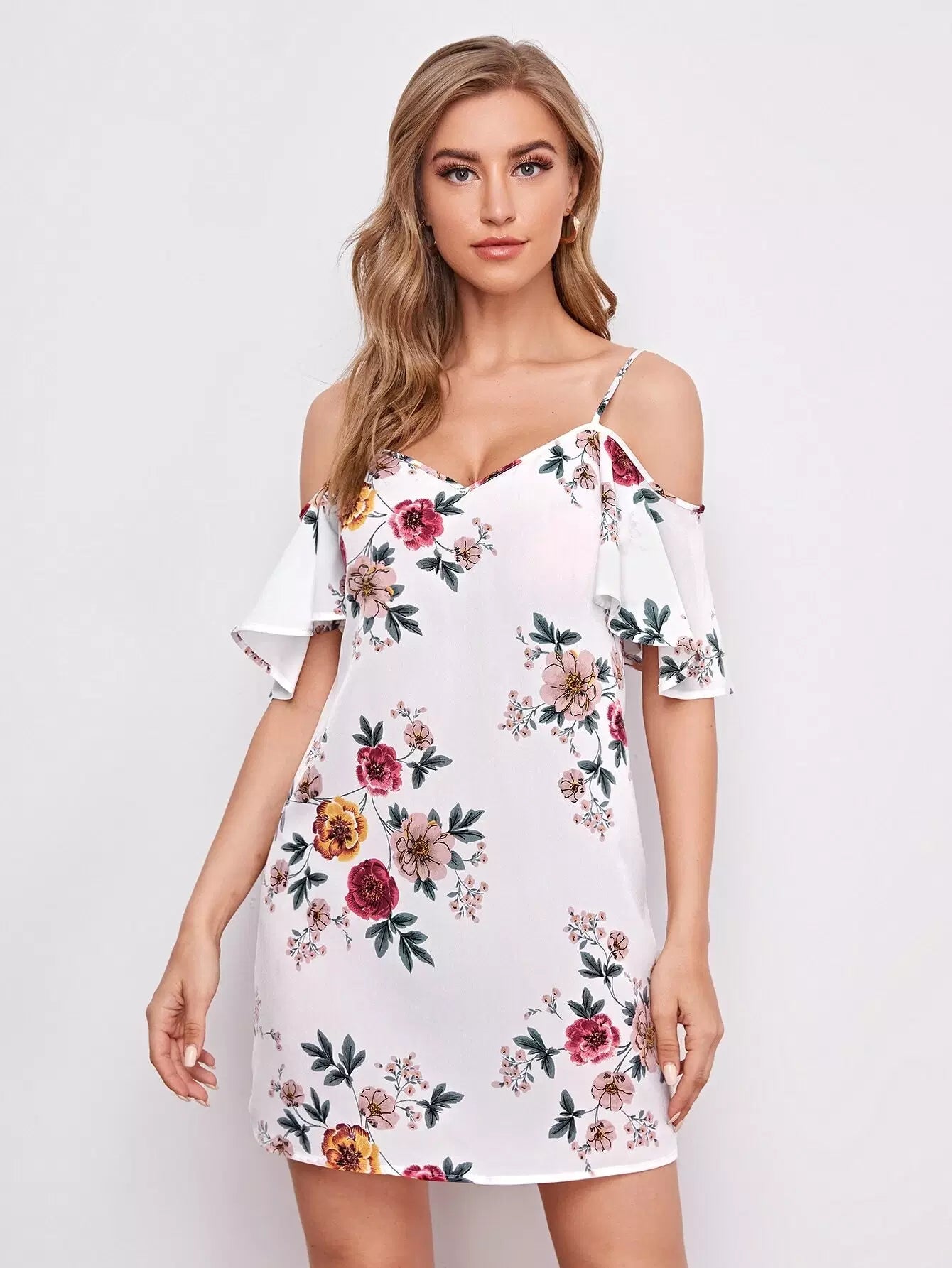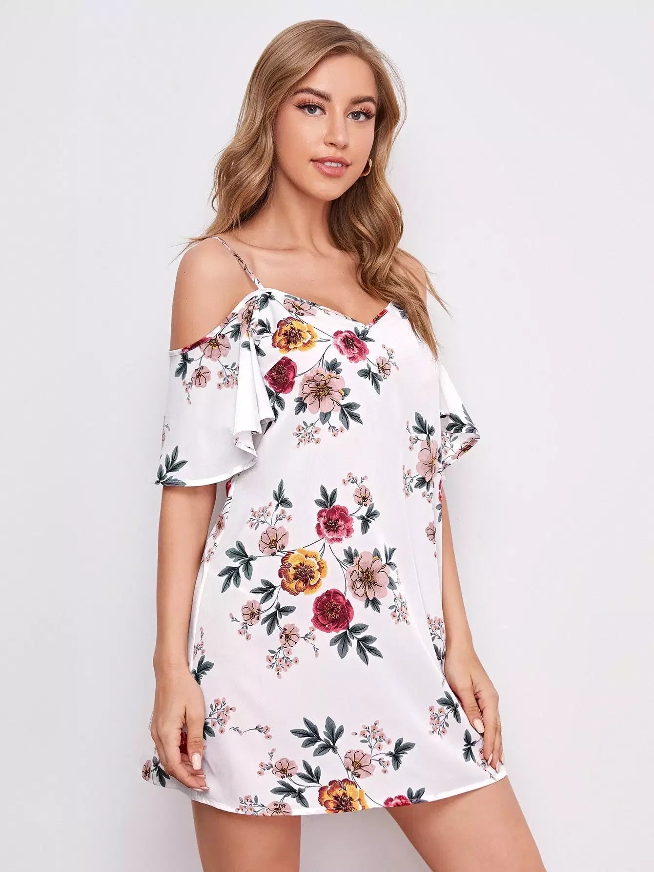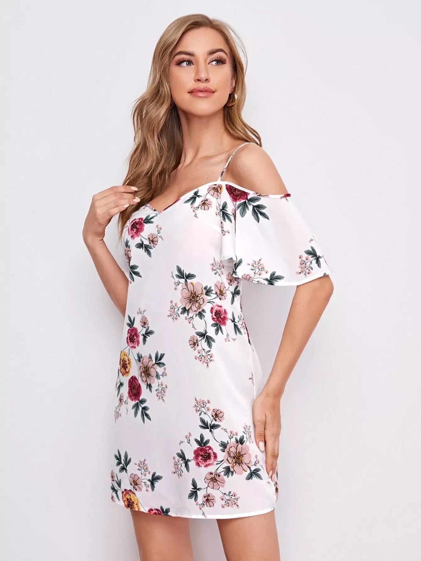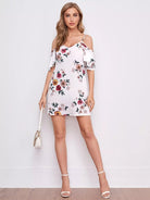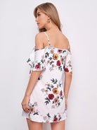 فستان بأكتاف باردة مزين بالورود