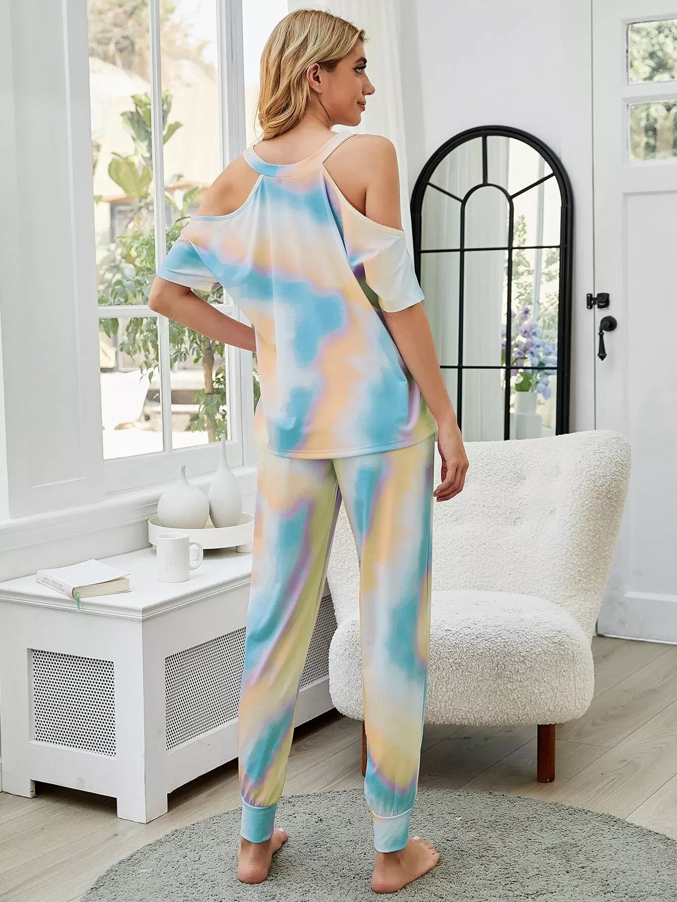 طقم تي شيرت وبنطلون رياضي مكشوف الكتفين