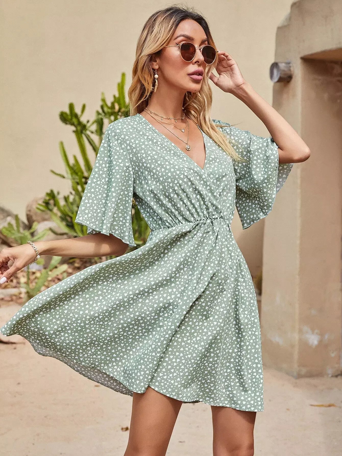 فستان بأكمام فراشة مطبوع على شكل قلب مطبوع عليه فراشة