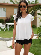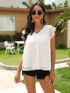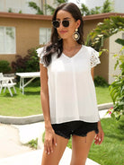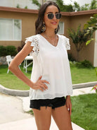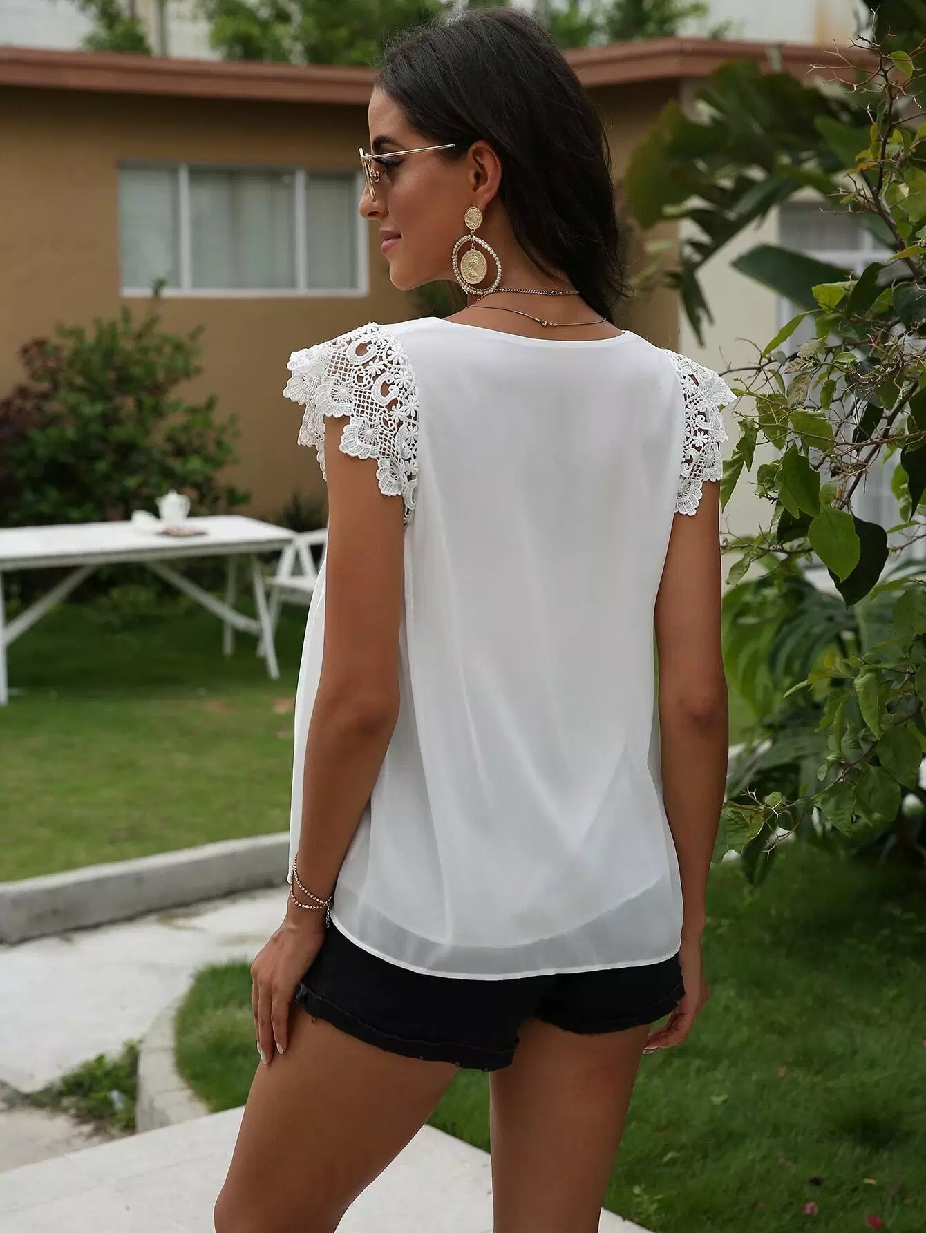 بلوزة شيفون بأكمام من الدانتيل بلون مغاير من الشيفون